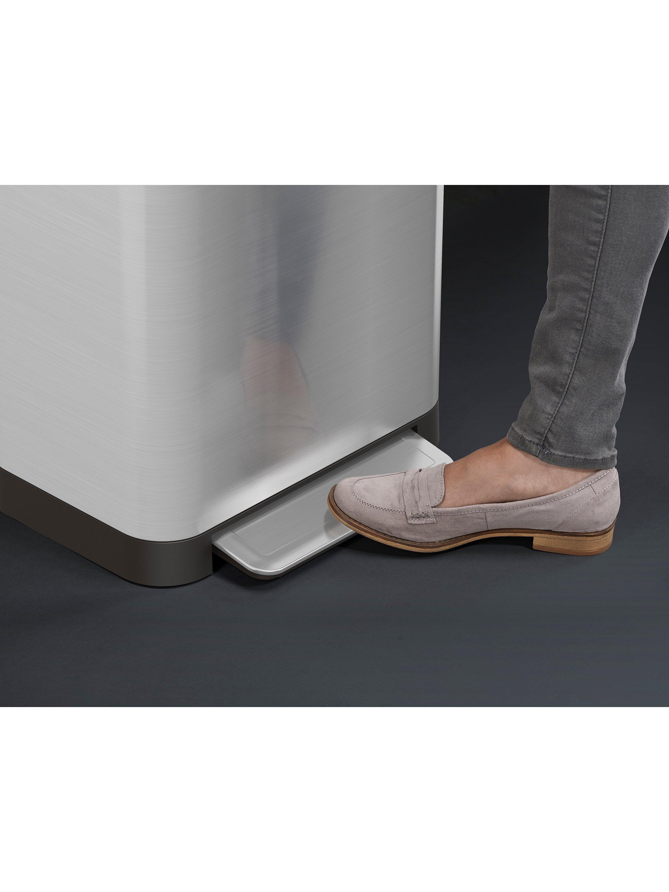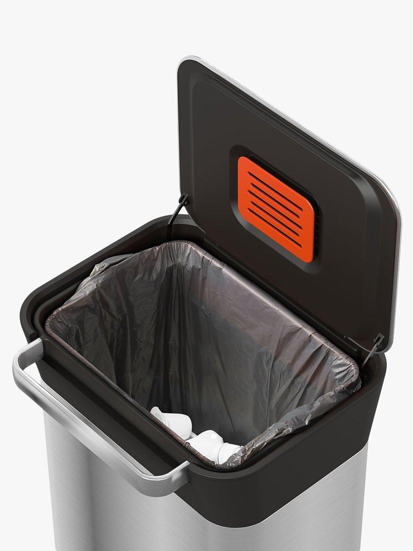 Built to last, Titan's compaction system and foot pedal have been tested over 100,000 times and are engineered to withstand repeated downward force. It's hygienic and mess-free too. The unique design ensures only the inside of the plastic liner touches the trash while compacting, leaving you with clean hands and a clean bin. It also features a replaceable odour filter for any unpleasant smells and a fingerprint-proof stainless-steel coating.