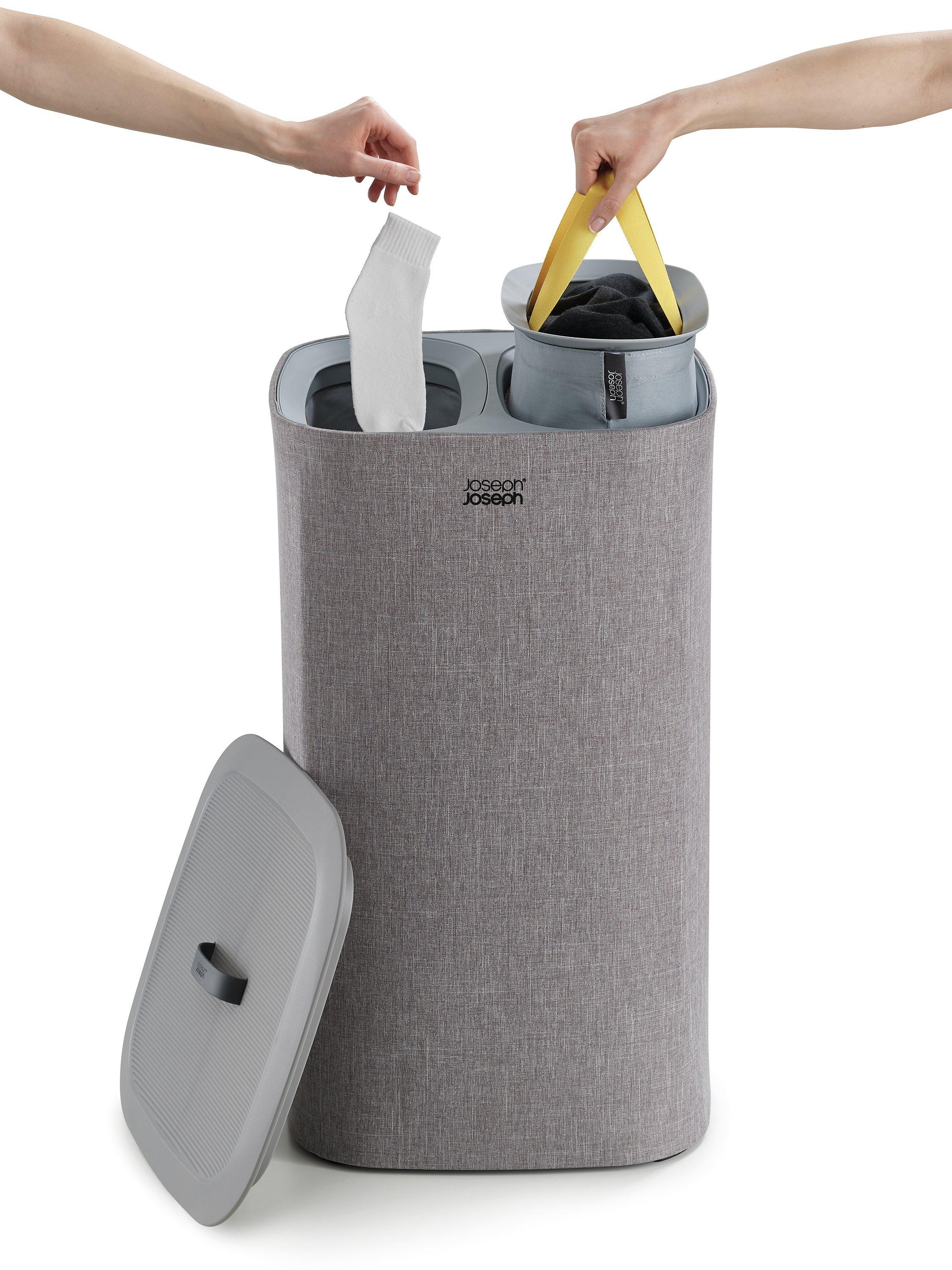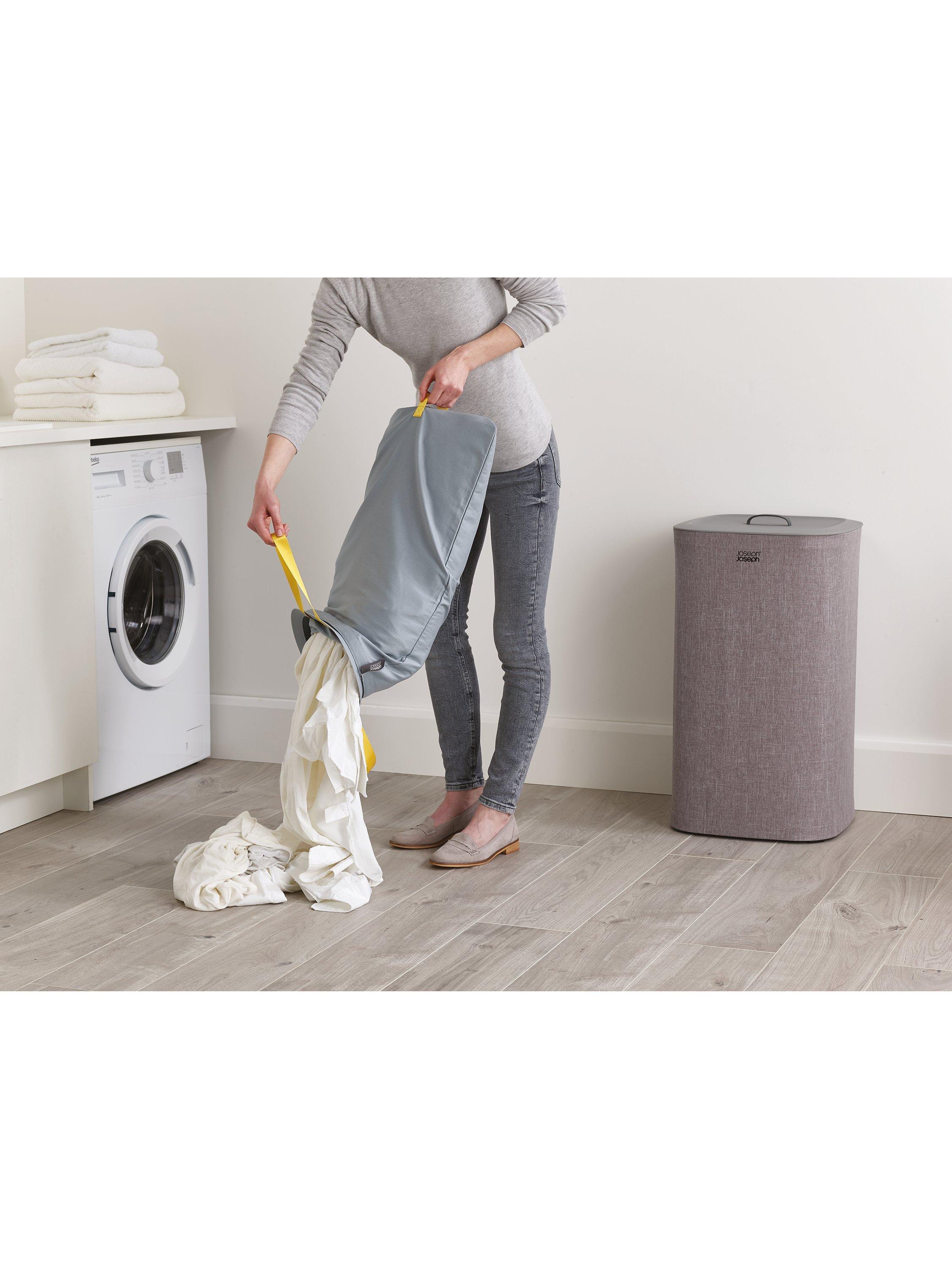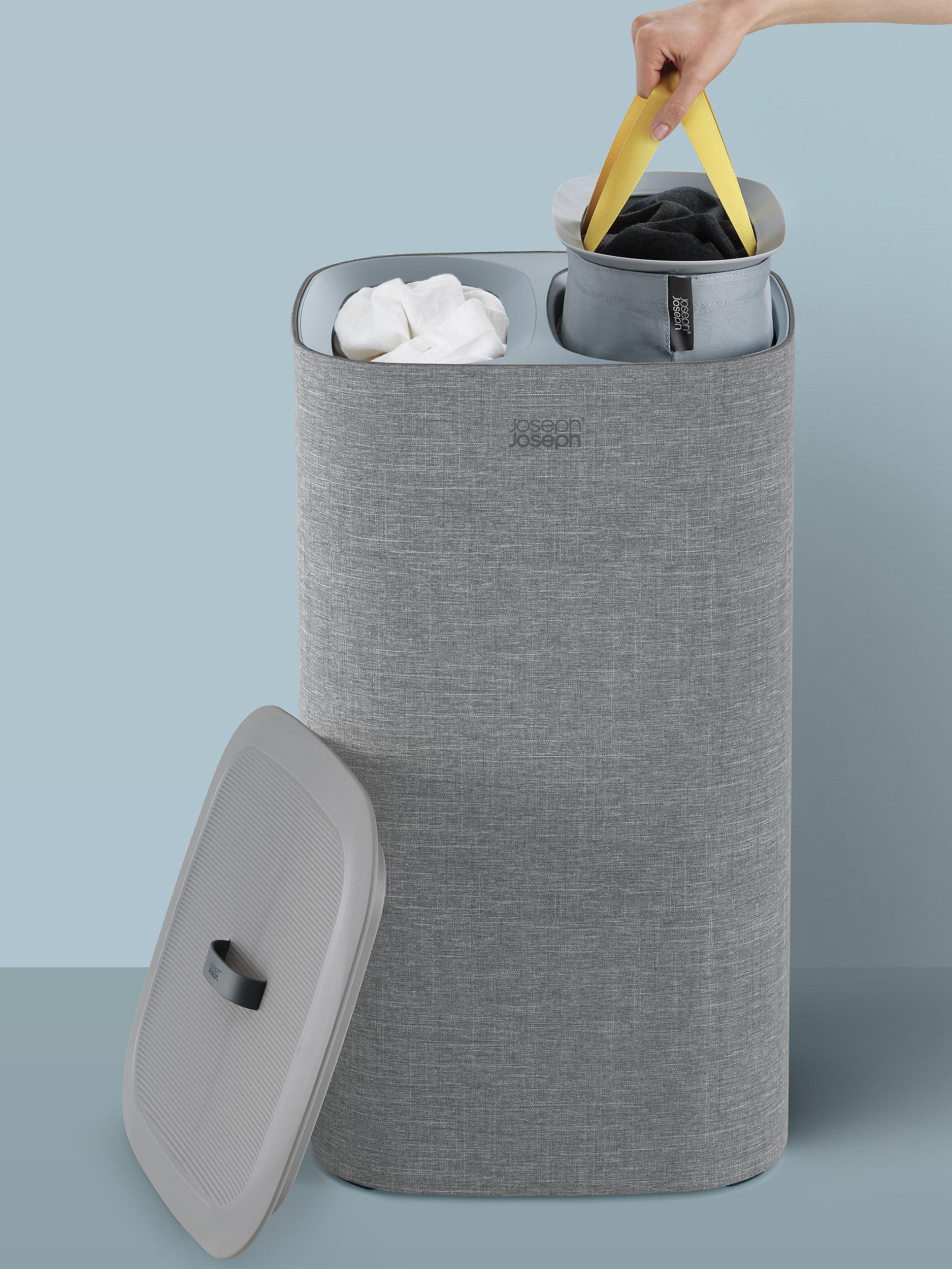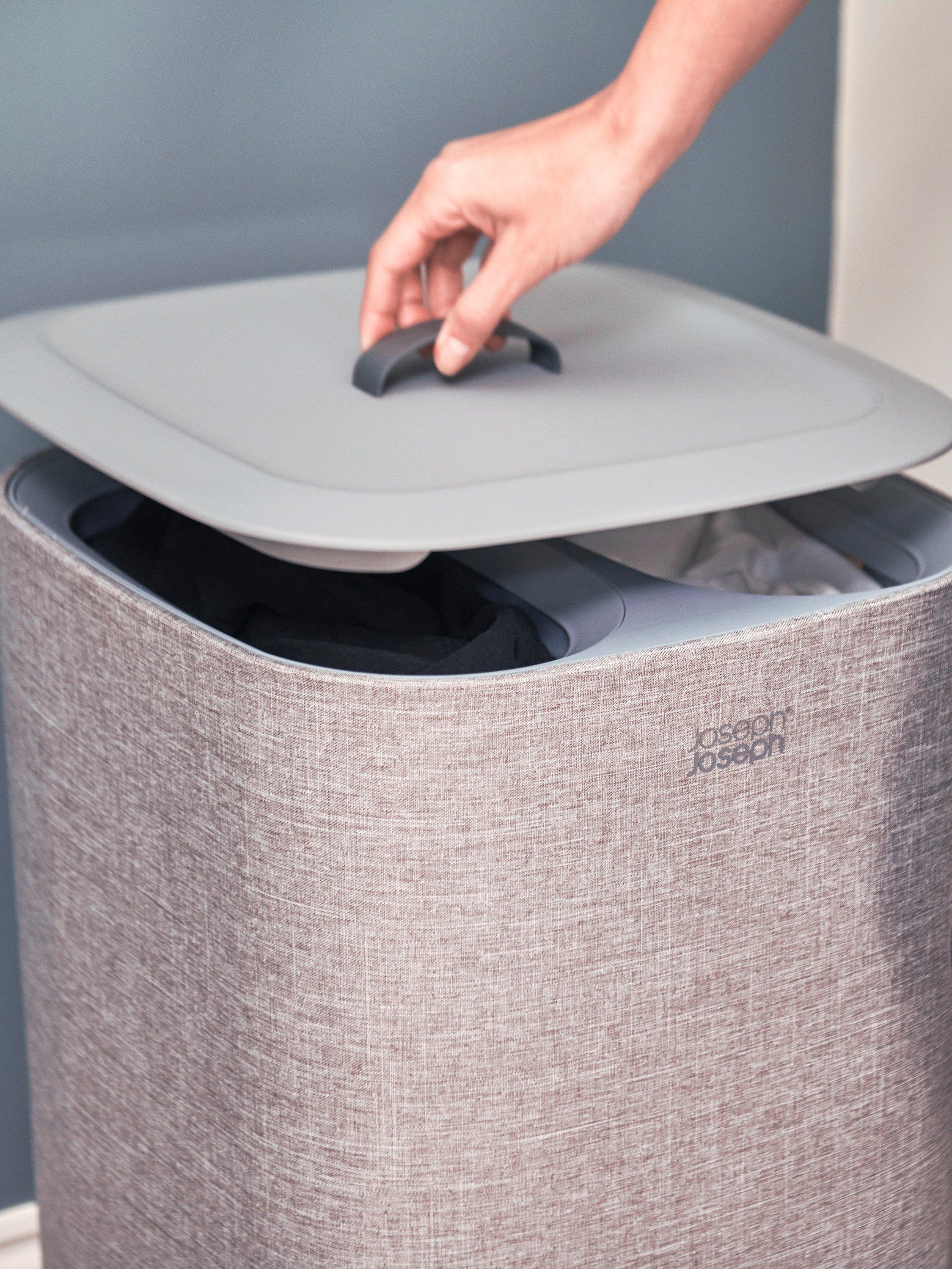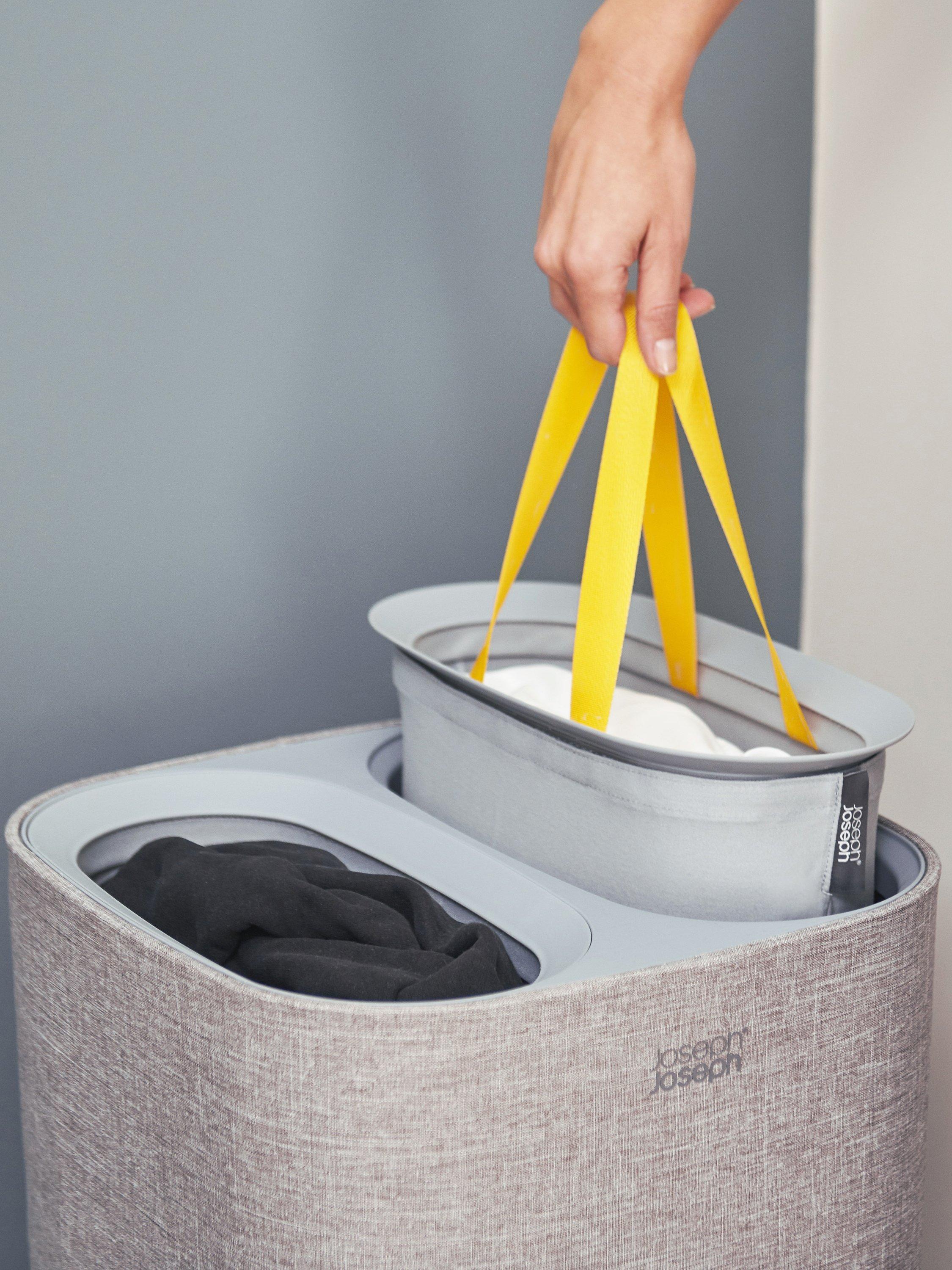 Beneath the lid, 2x 30-litre fabric tote bags allow you to separate washing into light and dark/coloured fabrics. Each bag has handles at the top, enabling you to conveniently lift and carry it straight to the machine and a helper handle on the base to make emptying easier. When replacing each bag in the basket there’s no fiddly ties or buttons to do up either as the self-locating rim ensures it drops perfectly back into place, ready for the next load.