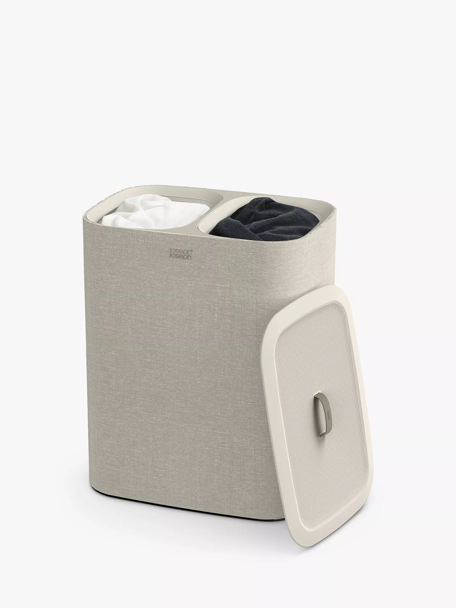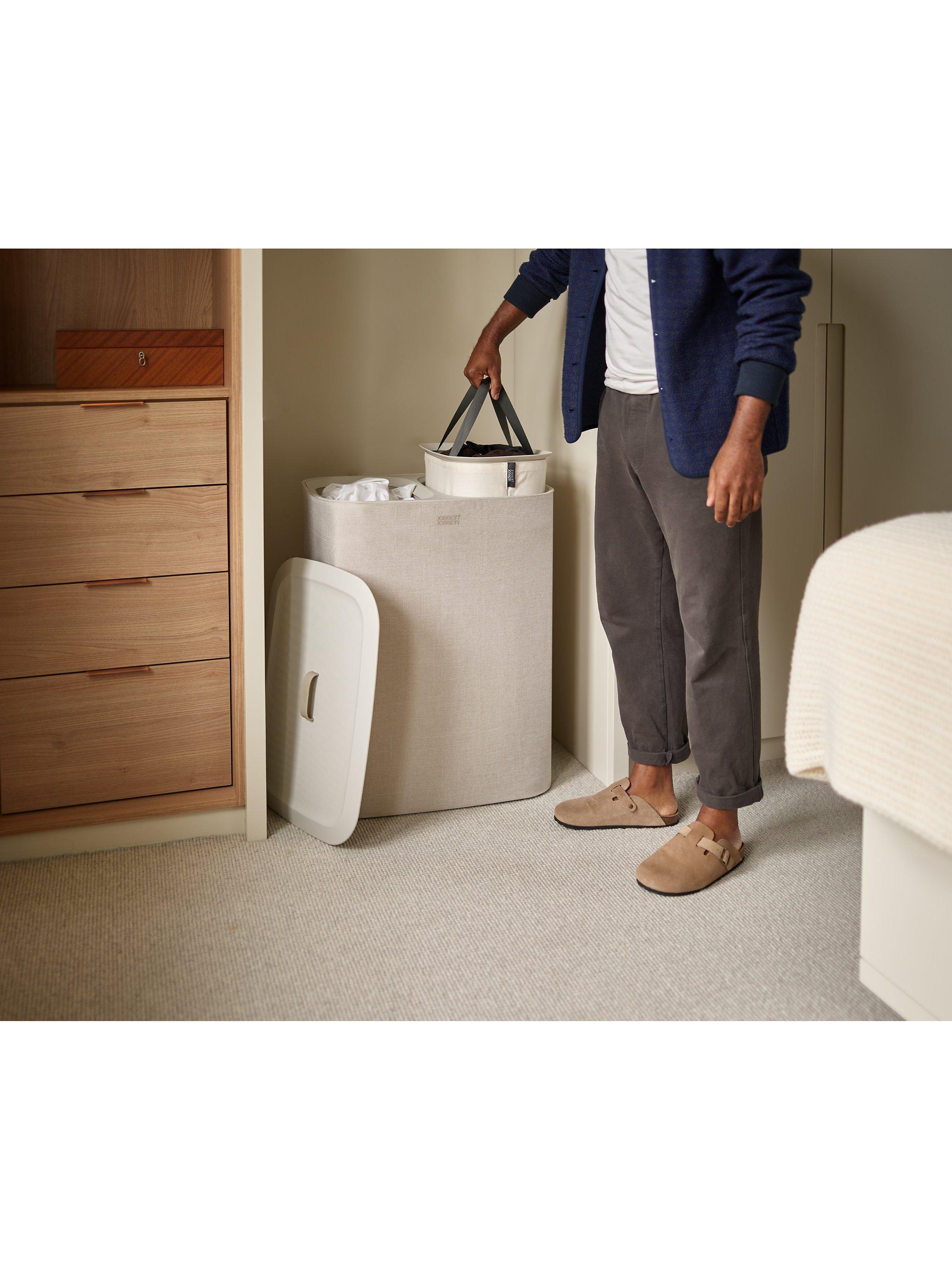 Beneath the lid, 2x 45-litre fabric tote bags allow you to separate washing into light and dark/coloured fabrics. Each bag has handles at the top, enabling you to conveniently lift and carry it straight to the machine and a helper handle on the base to make emptying easier. When replacing each bag in the basket there’s no fiddly ties or buttons to do up either as the self-locating rim ensures it drops perfectly back into place, ready for the next load.
