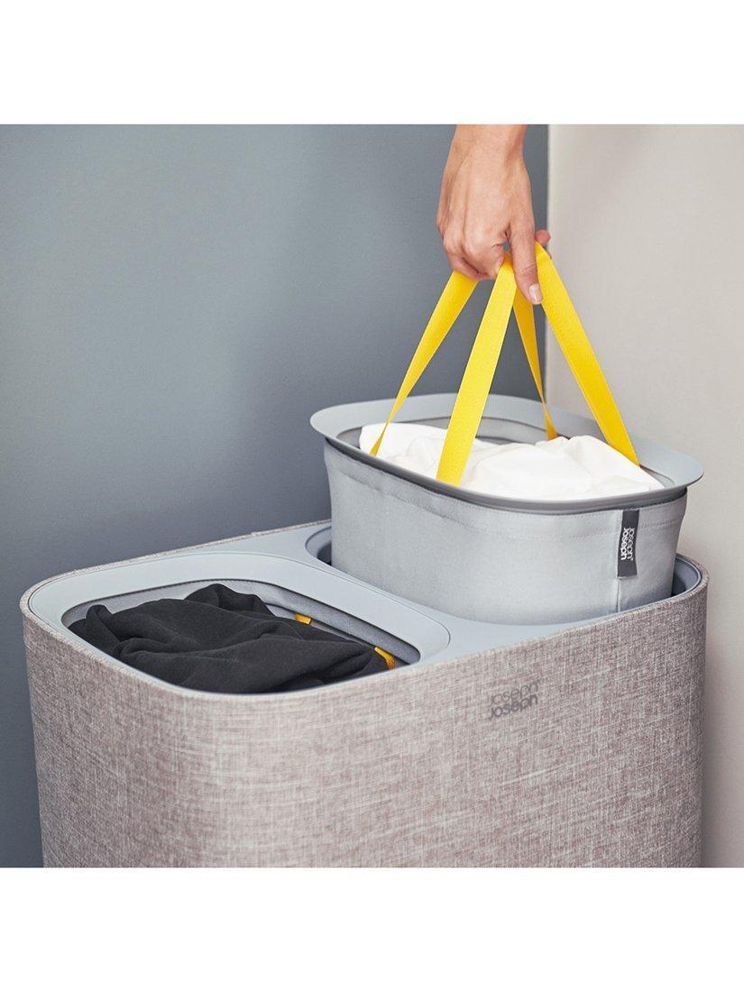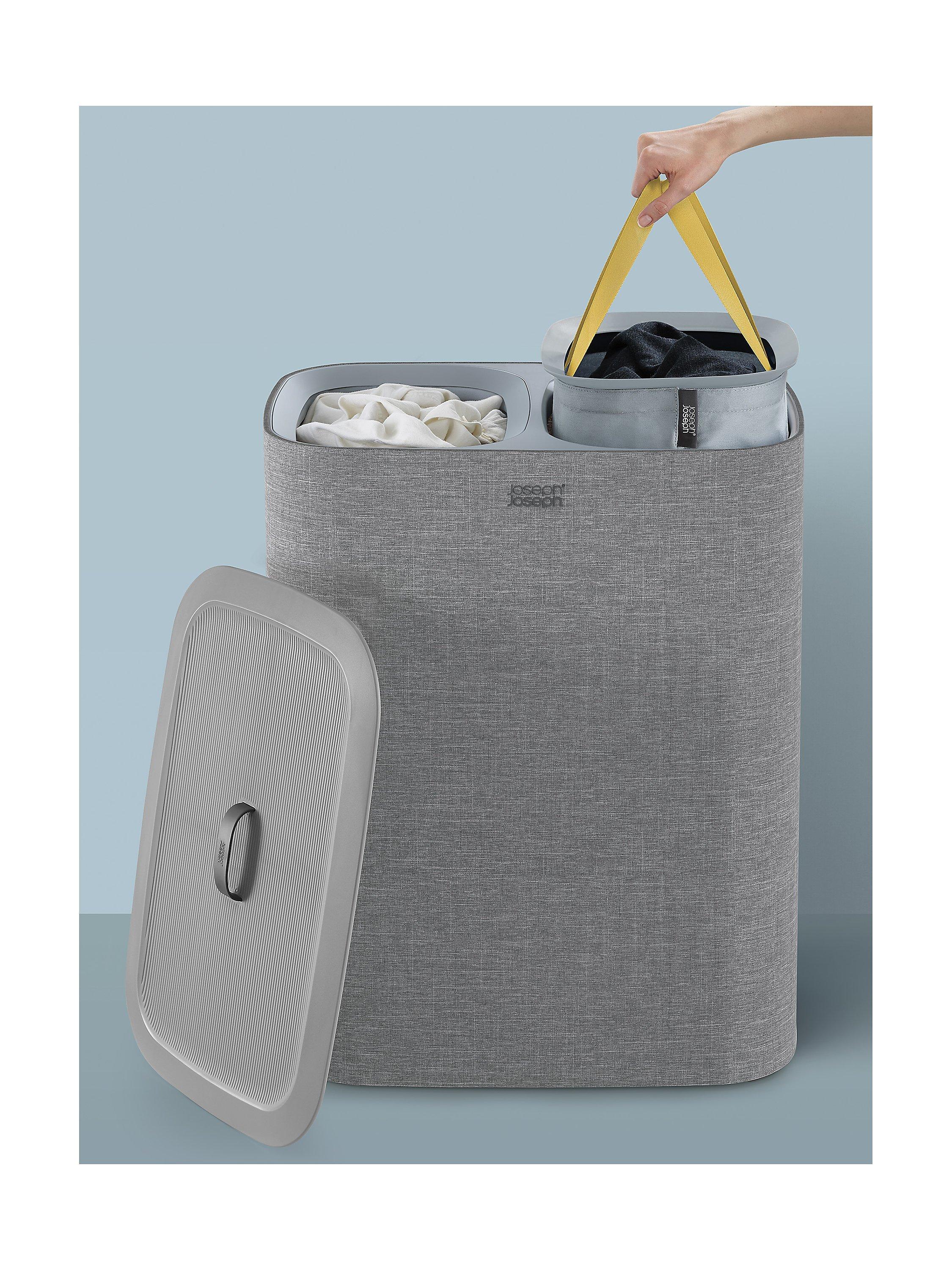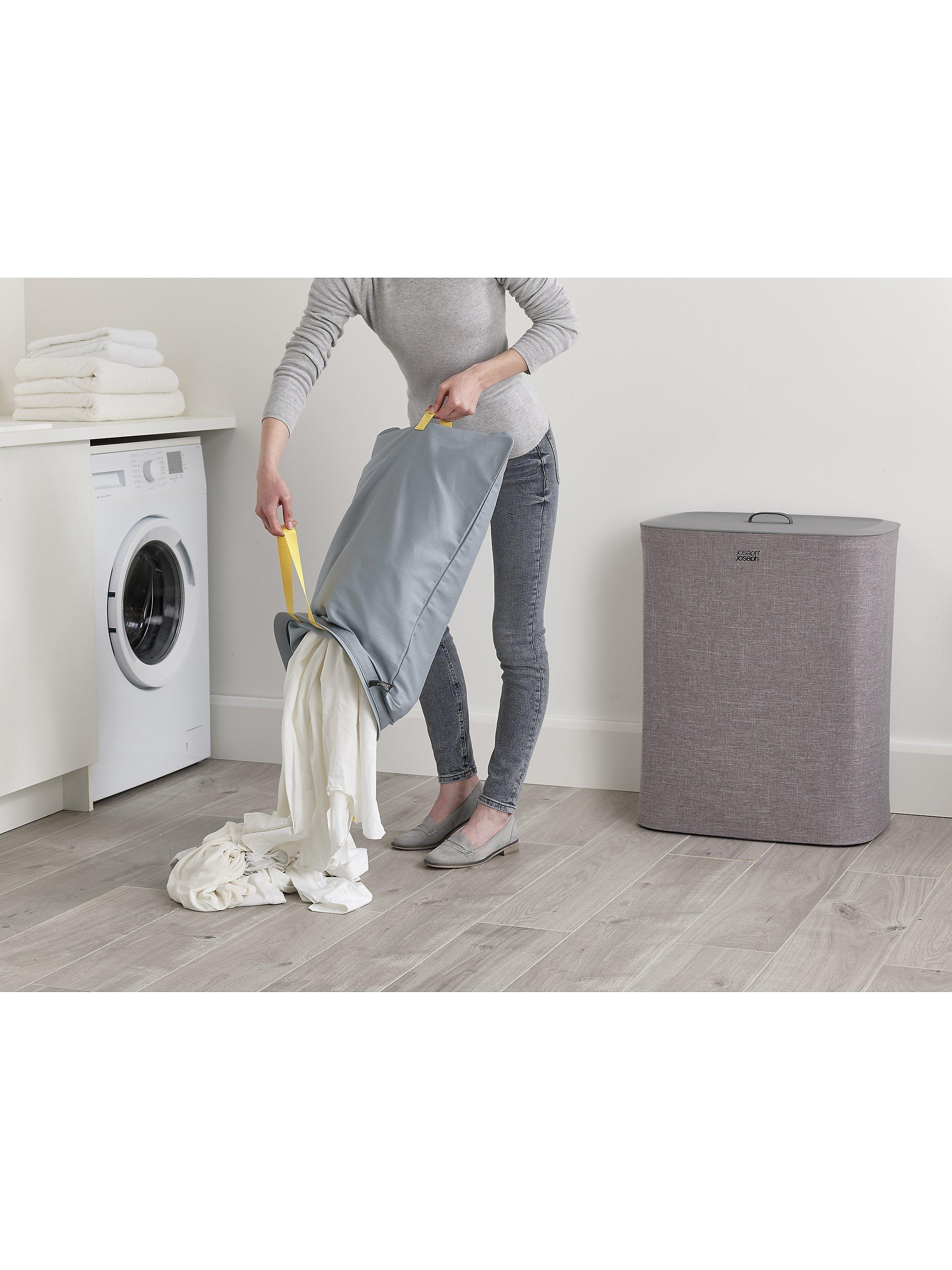 Beneath the lid, 2x 45-litre fabric tote bags allow you to separate washing into light and dark/coloured fabrics. Each bag has handles at the top, enabling you to conveniently lift and carry it straight to the machine and a helper handle on the base to make emptying easier. When replacing each bag in the basket there’s no fiddly ties or buttons to do up either as the self-locating rim ensures it drops perfectly back into place, ready for the next load.