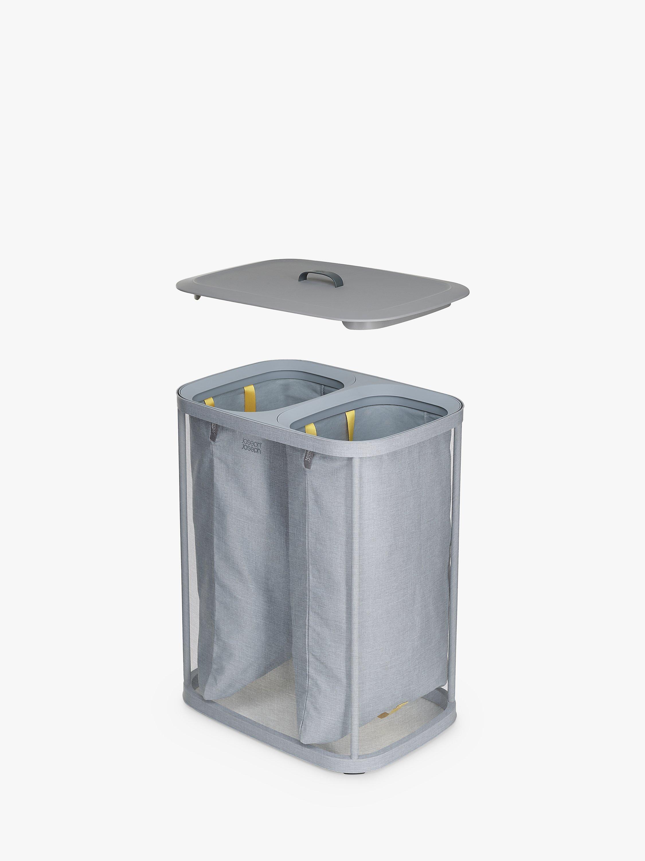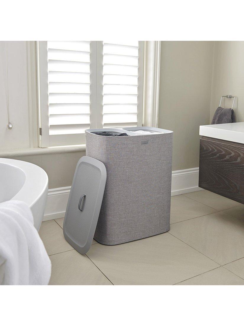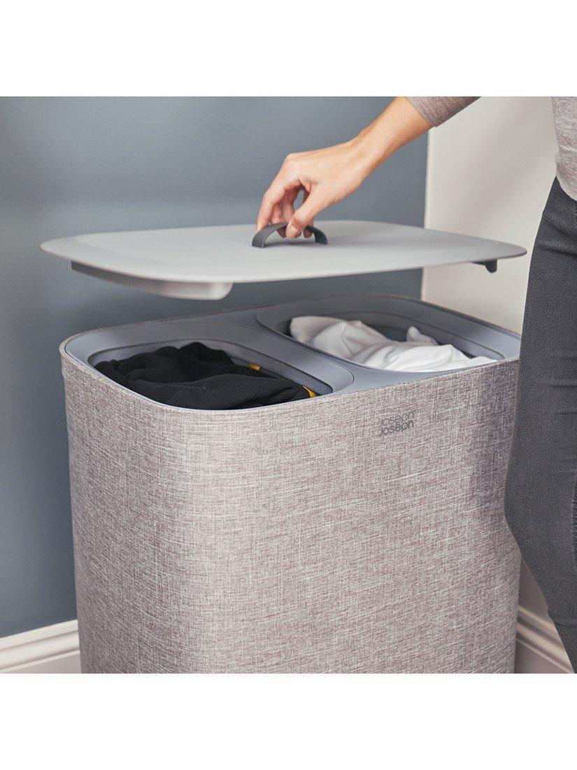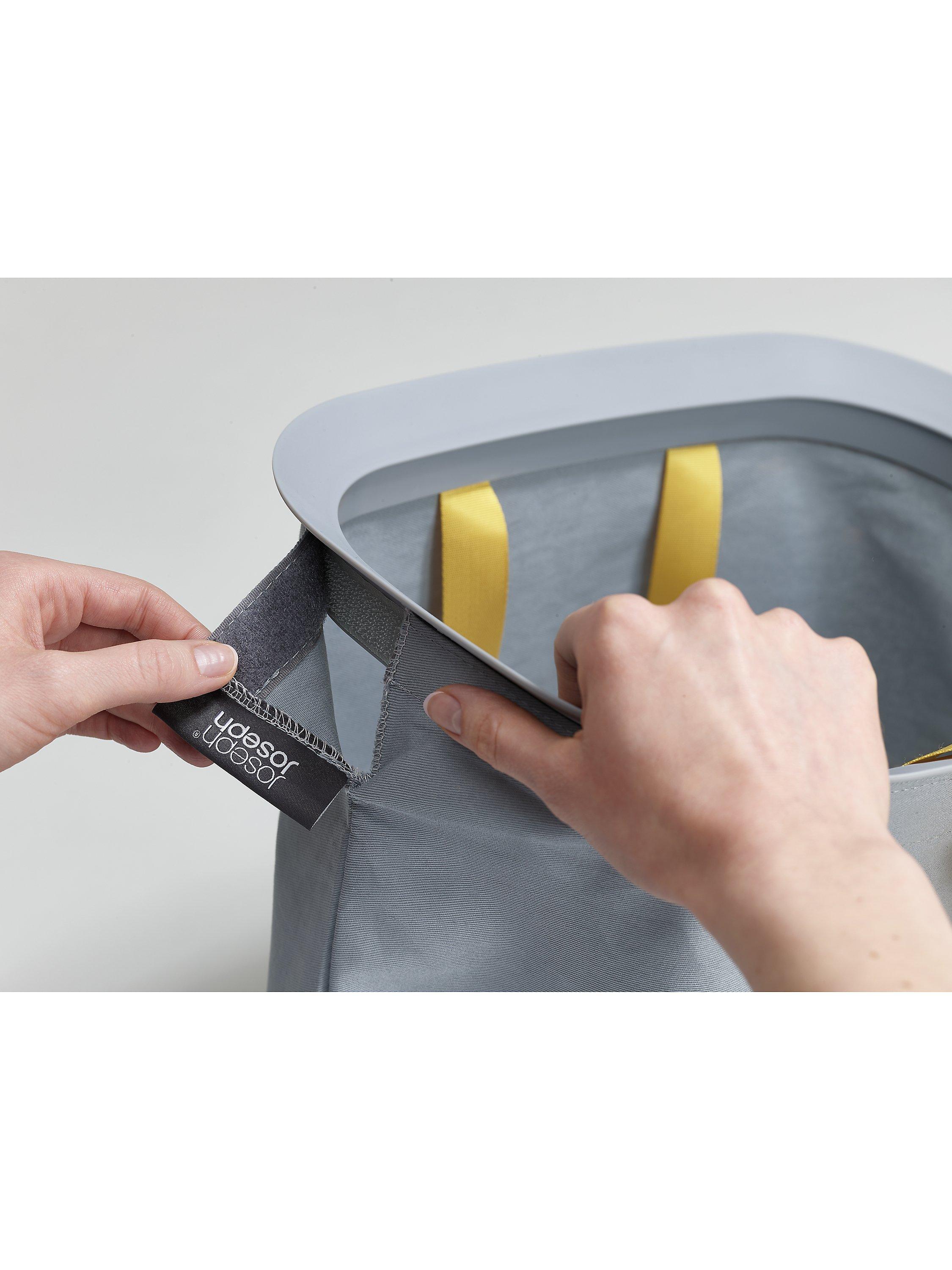 Beneath the lid, 2x 45-litre fabric tote bags allow you to separate washing into light and dark/coloured fabrics. Each bag has handles at the top, enabling you to conveniently lift and carry it straight to the machine and a helper handle on the base to make emptying easier. When replacing each bag in the basket there’s no fiddly ties or buttons to do up either as the self-locating rim ensures it drops perfectly back into place, ready for the next load.