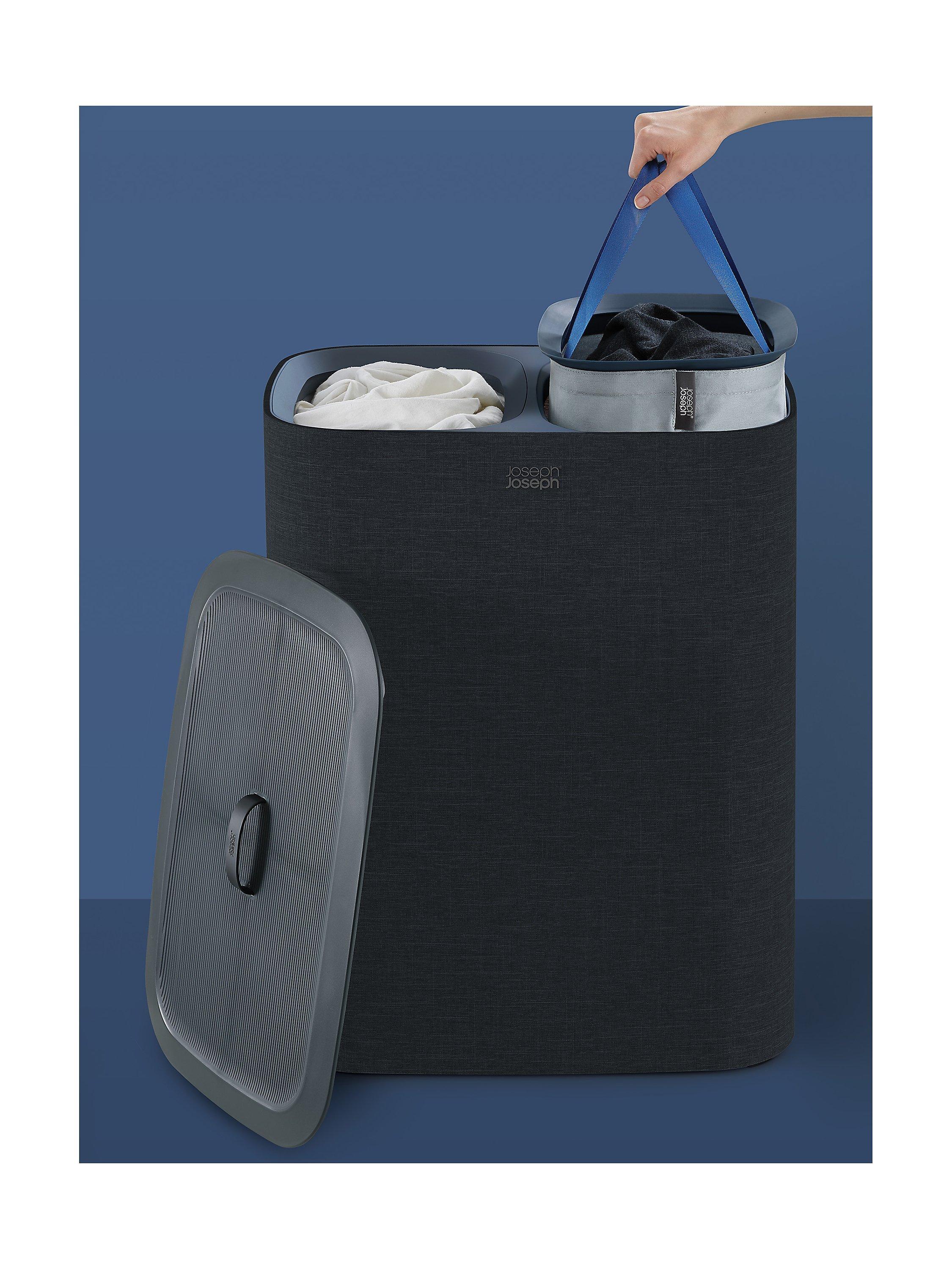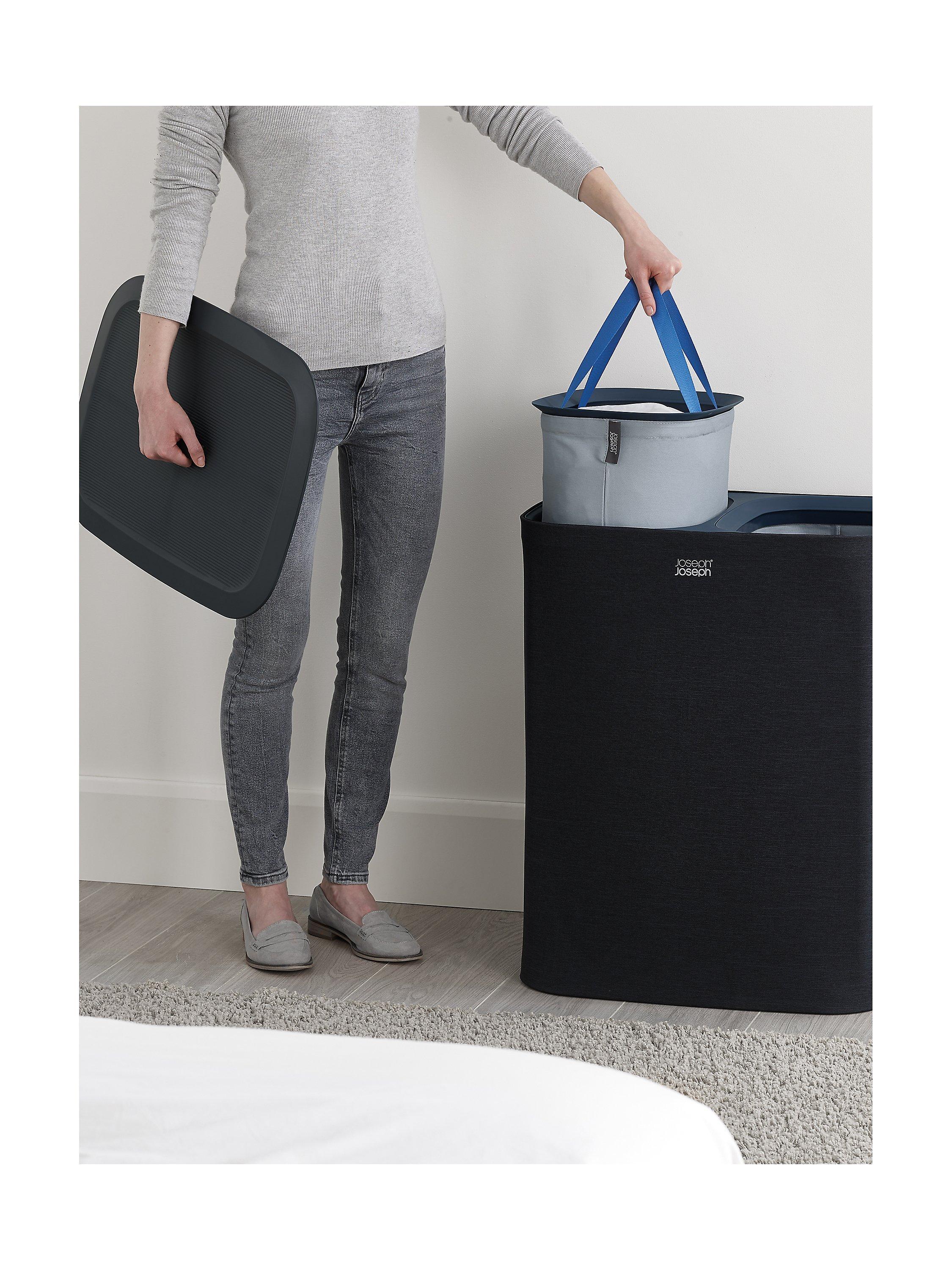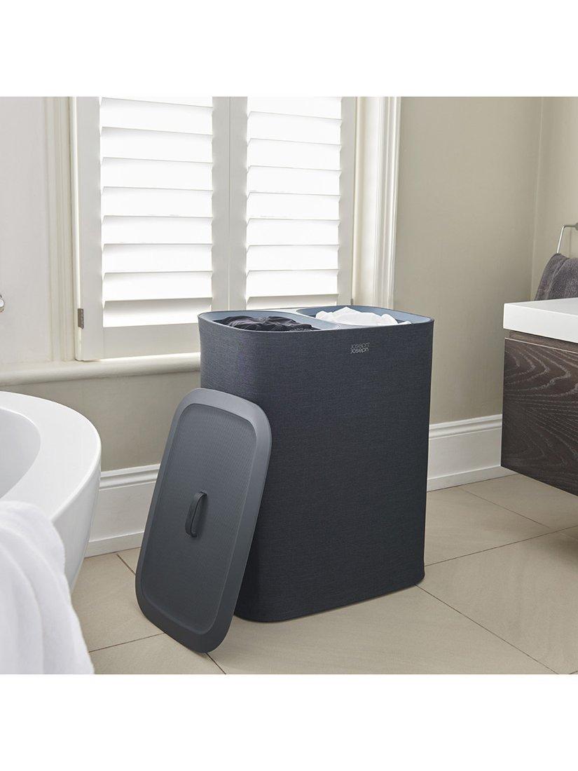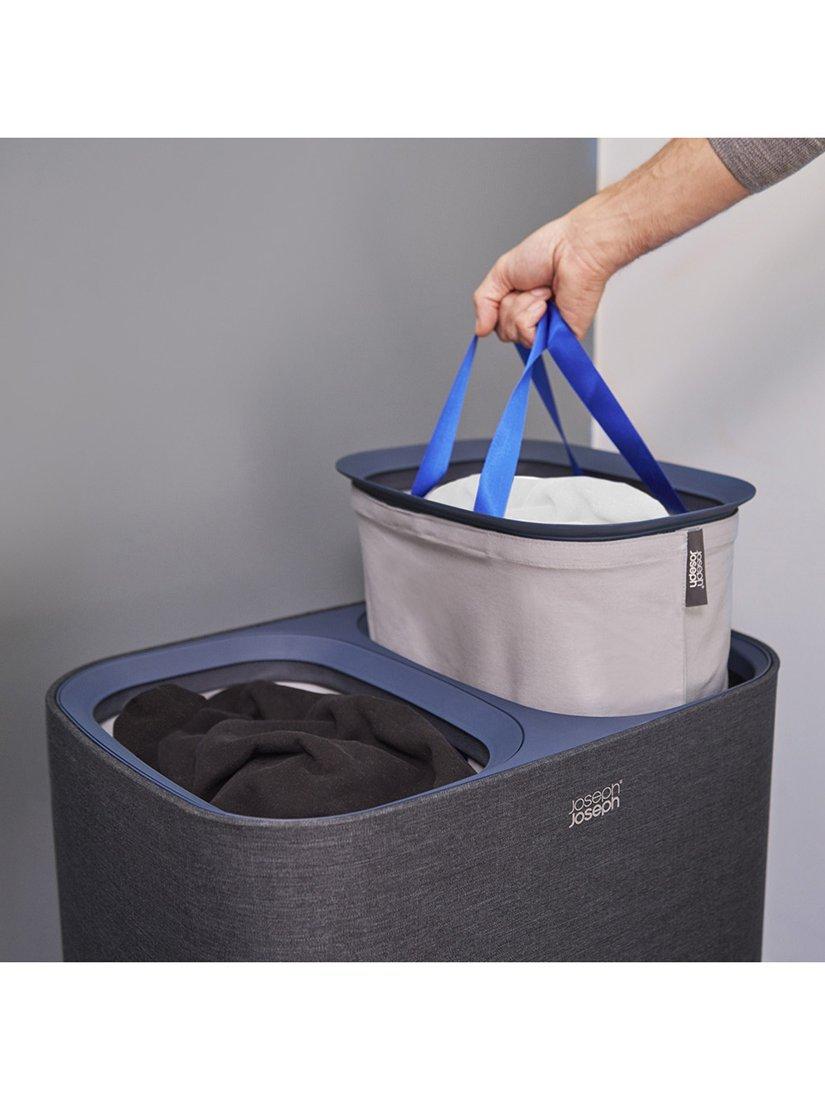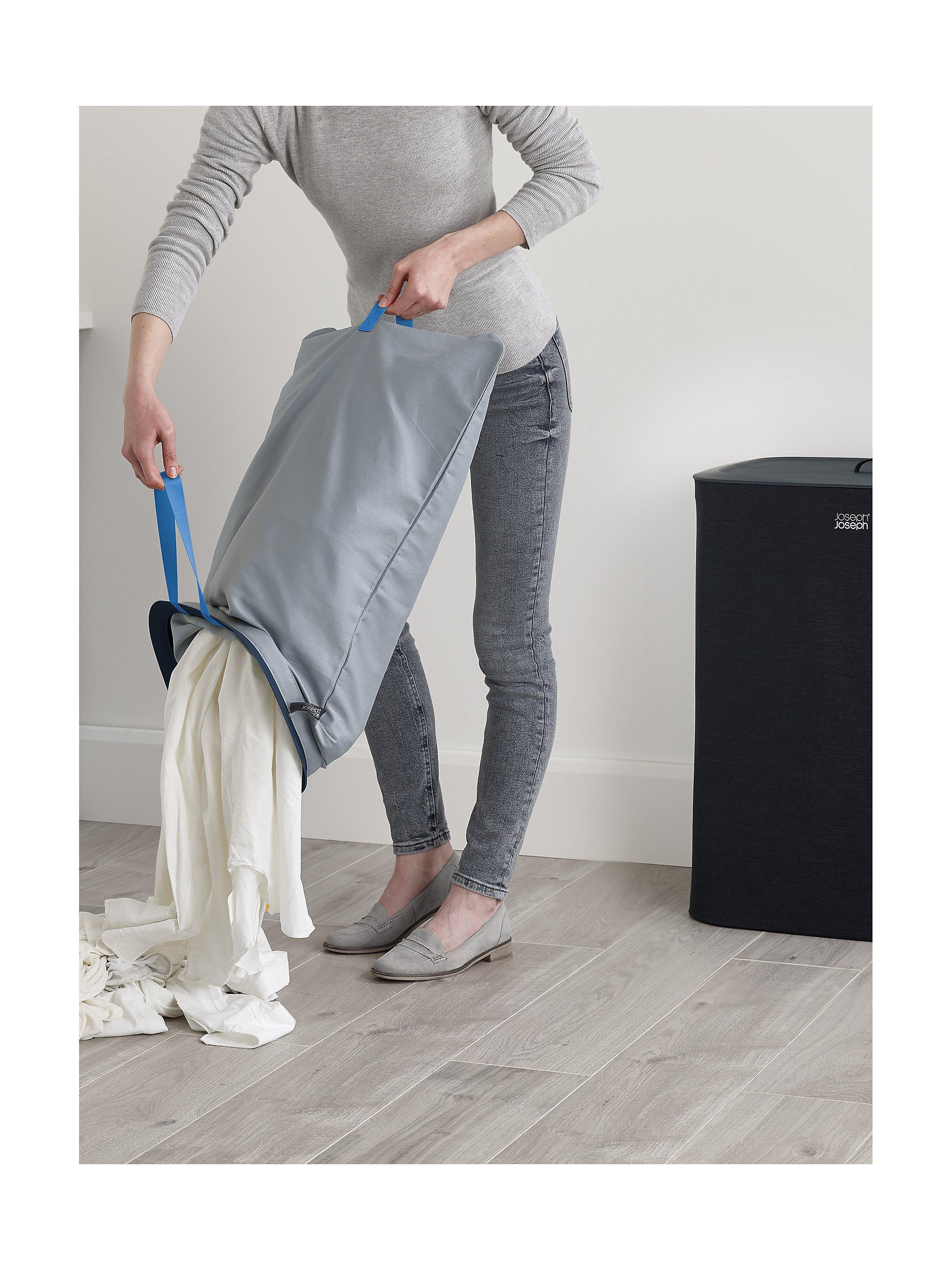 Beneath the lid, 2x 45-litre fabric tote bags allow you to separate washing into light and dark/coloured fabrics. Each bag has handles at the top, enabling you to conveniently lift and carry it straight to the machine and a helper handle on the base to make emptying easier. When replacing each bag in the basket there’s no fiddly ties or buttons to do up either as the self-locating rim ensures it drops perfectly back into place, ready for the next load.