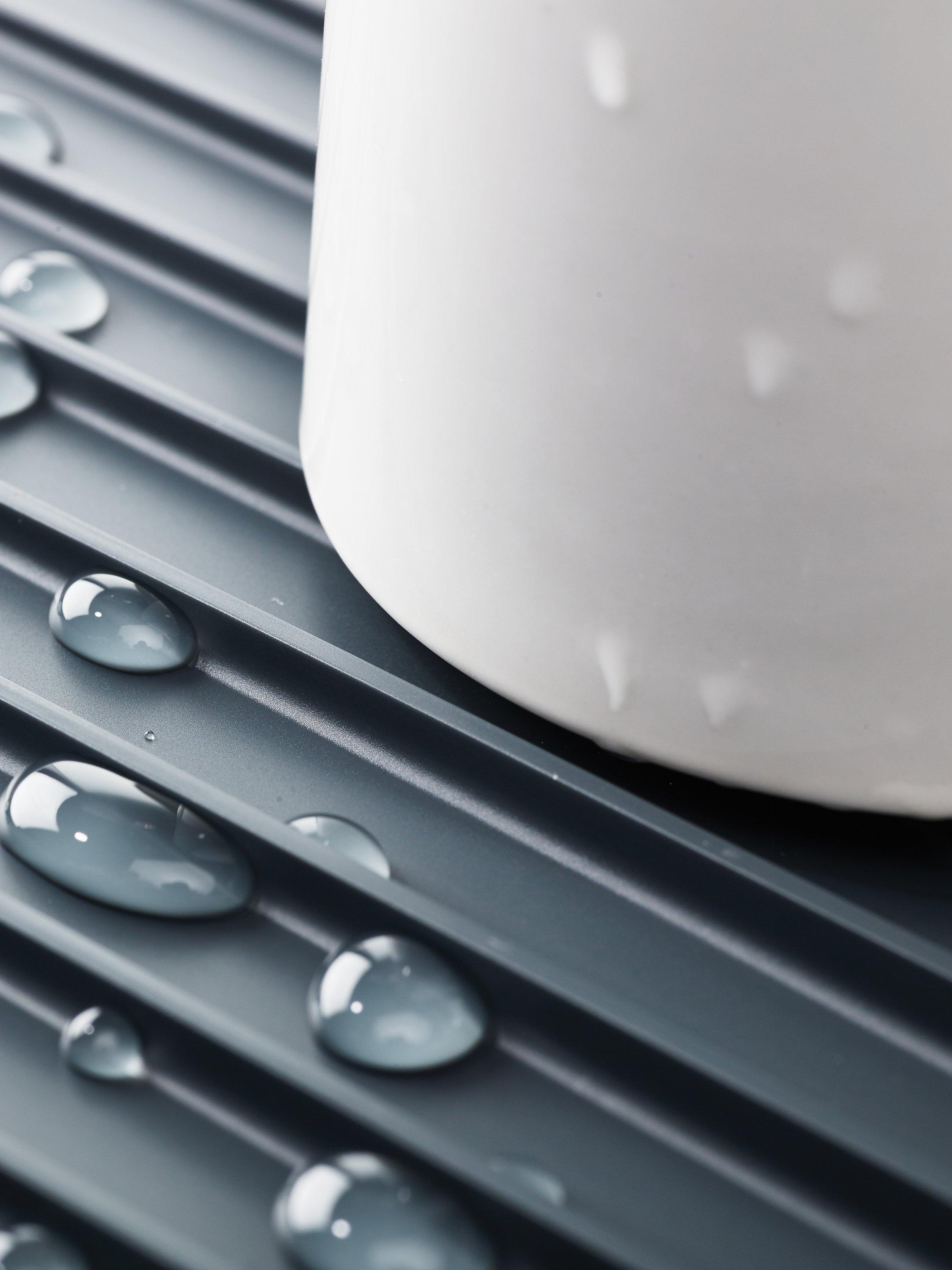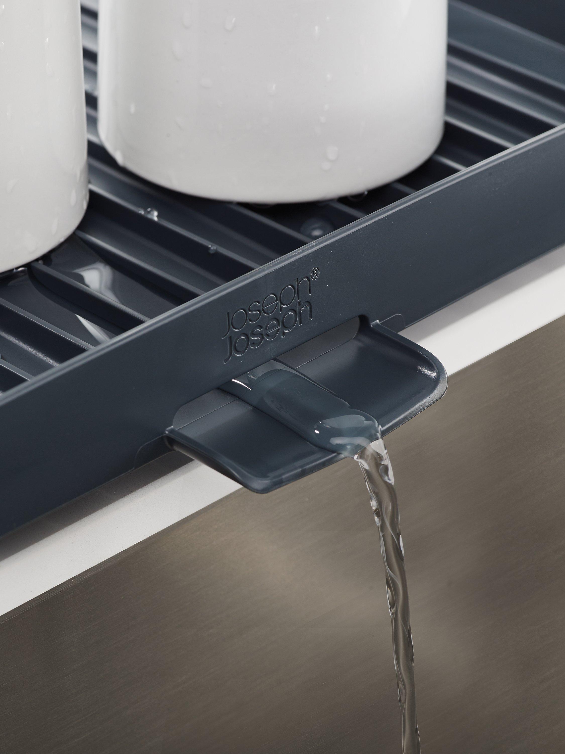 - Large capacity drainer with small footprint Drains up to 4 place settings Large self-draining utensil pot W 36.5 x D 30.4 x H 28.2 (Unfolded) W 30.4 x D 11.5 x H 31.9 (Folded) Sloping ribs allow water to drain freely and air to circulate Integrated draining sprout Dismantles for easy cleaning Handwash only