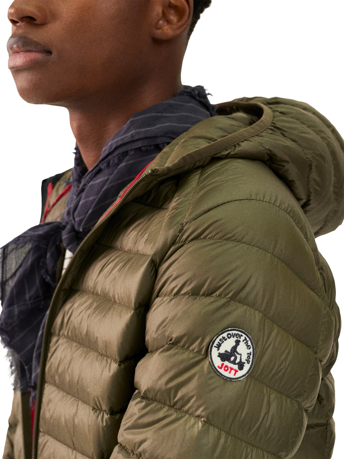 Nico is one of JOTT's best sellers. The padded hooded jacket is constructed from a water-repellent satin-quilted fabric and has an RDS-certified down and feather filling to keep you warm.