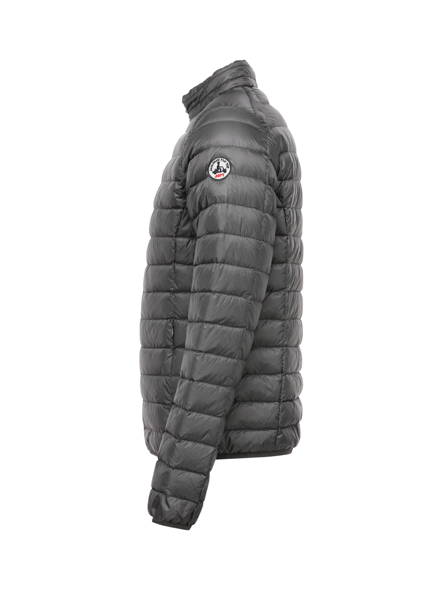 Down jacket is made from JOTT's iconic polyamide fabric. It includes two invisible zip side pockets, and contrasted colour piping inside.
