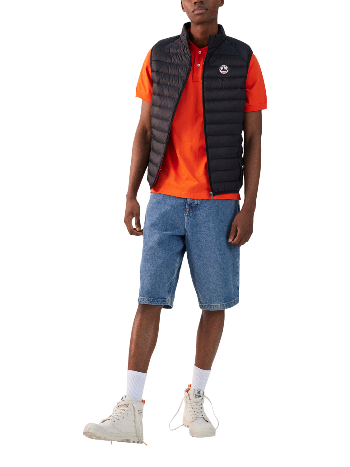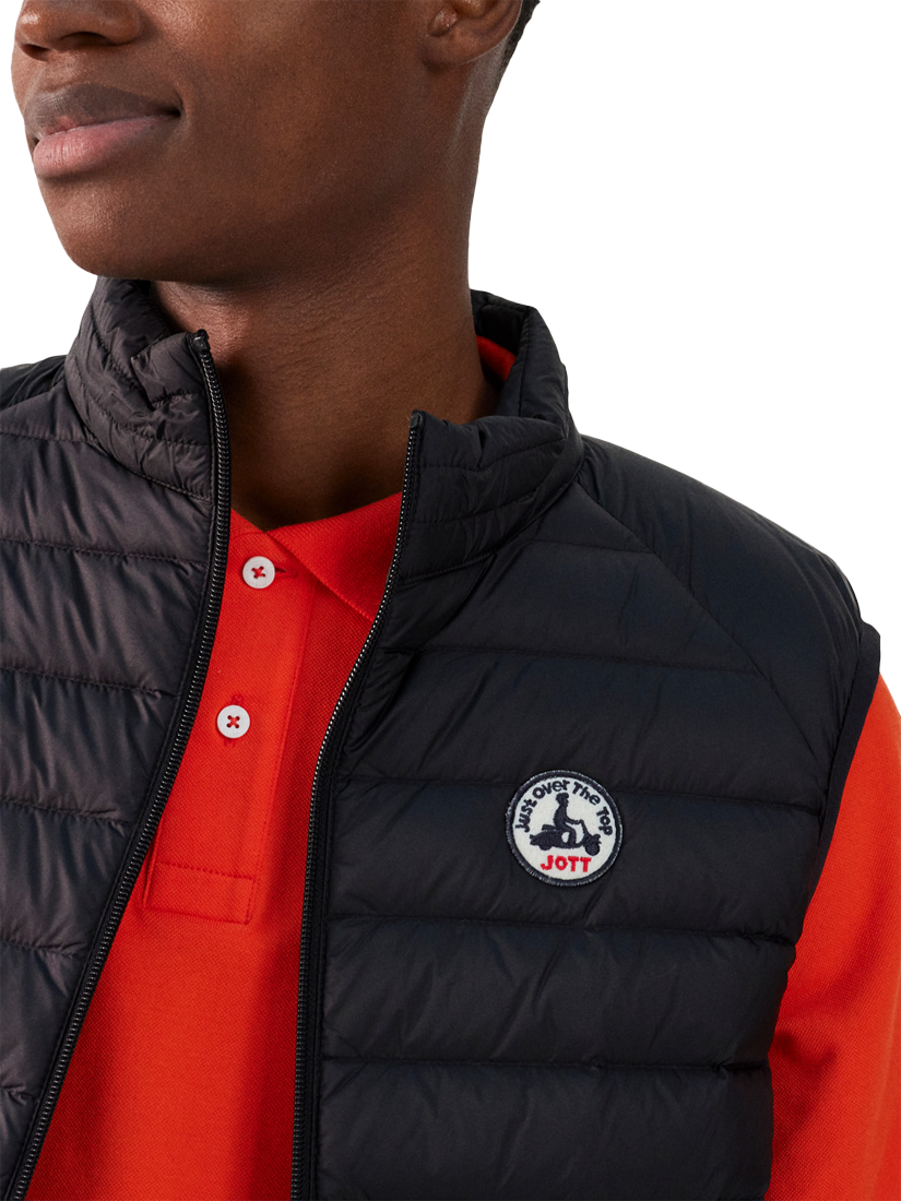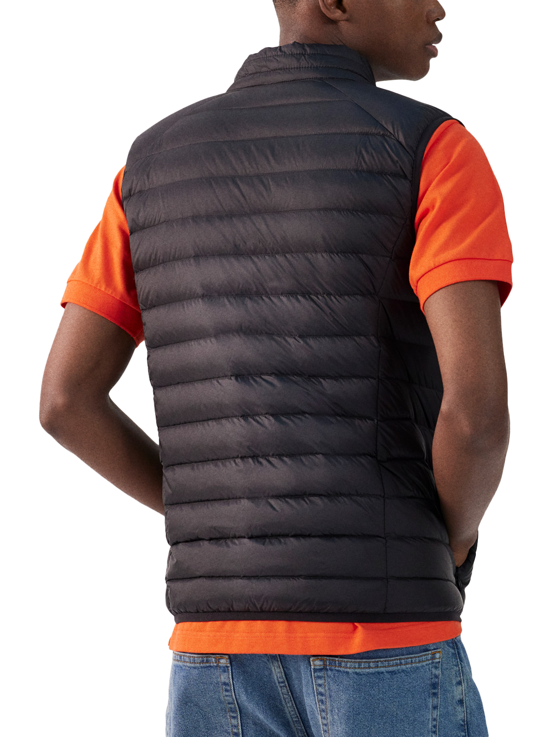 A sleeveless down jacket in an iconic polyamide fabric. It features 2 invisible zip side pockets and contrasted colour piping inside garment.