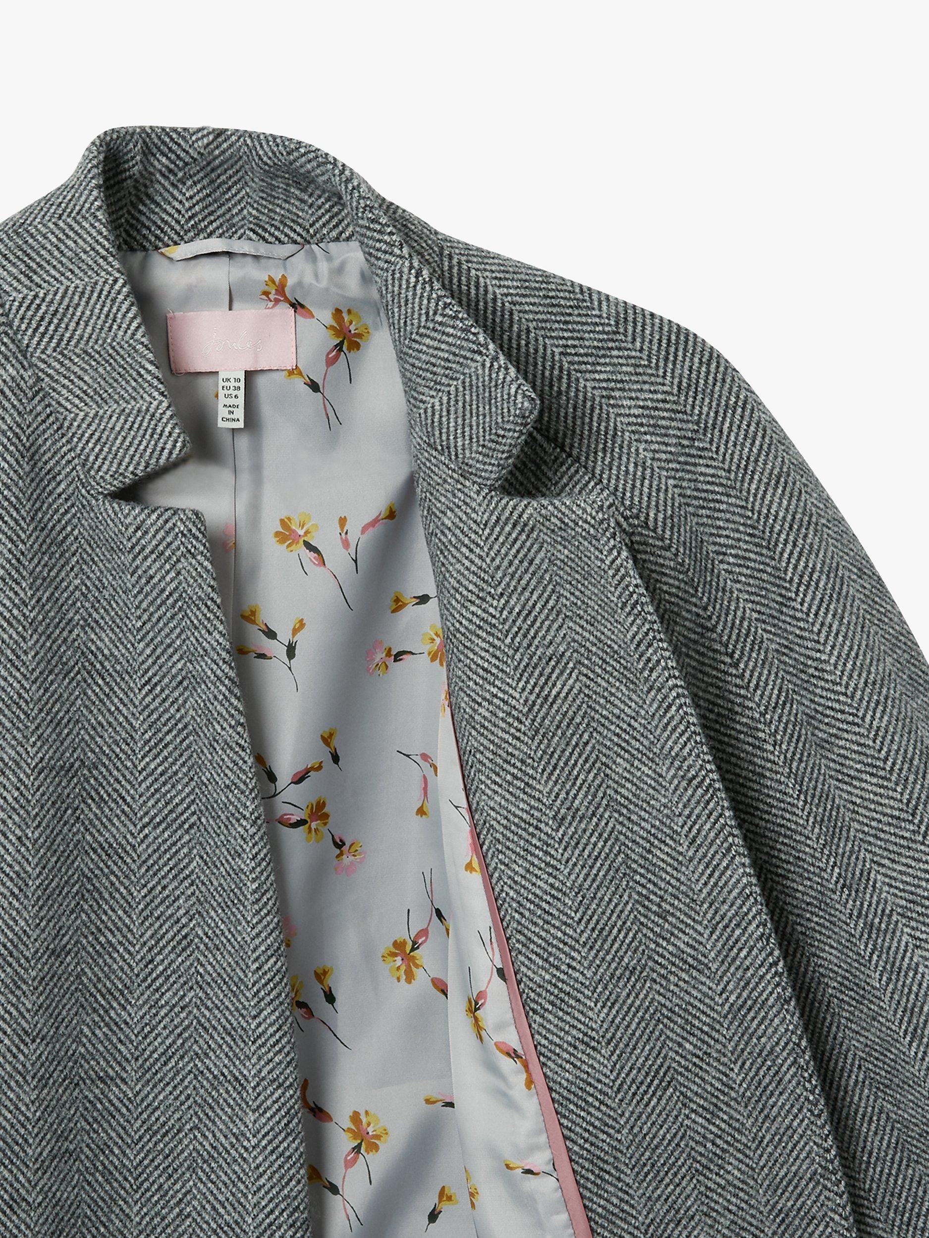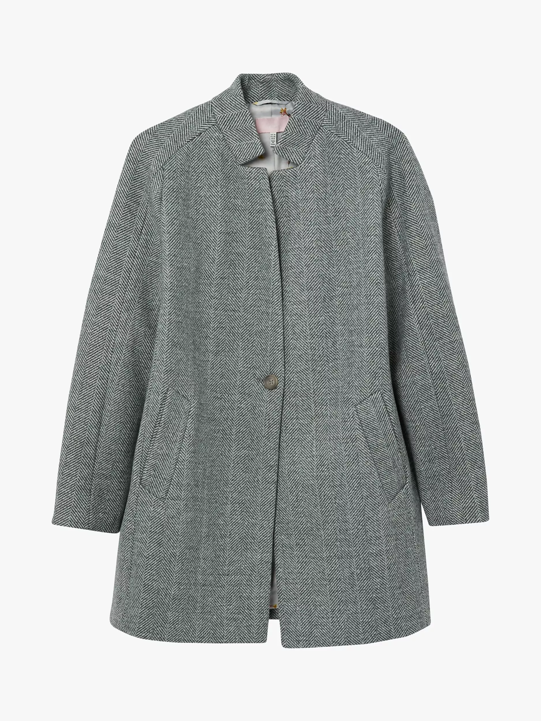 If it's time to give your outerwear a refresh and this Herringbone coat is sure to fit the bill. It has raglan sleeves, a relaxed fit and is cut to a flattering mid-thigh length. We've added a single button fastening for a simple but stylish finish and a bespoke printed lining that we think you'll love too.