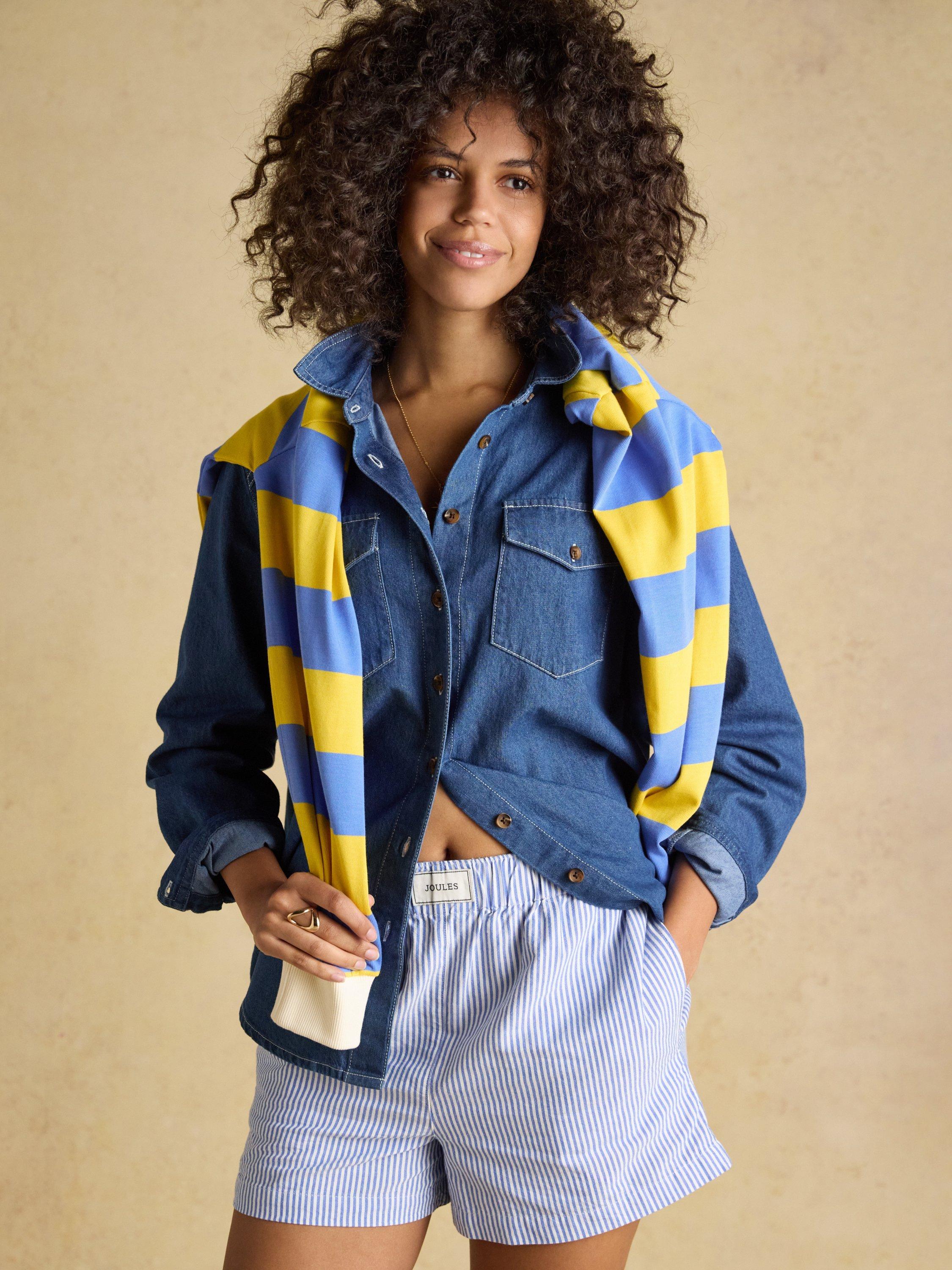 Through their fit and fabric, the Amara shorts reflect the easy and relaxed nature of the warmer season. The crisp cotton fabric gives them that lightweight feel we all crave this time of year, while the elasticated waistband, which can be turned down to reveal a contrast reverse, will add a cool, nonchalant edge to your looks. They fall from the hips in an A-line shape and feature side pockets. Both the outer waistband and internal band are finished with a Joules-branded tab in the centre, so whether you wear them turned up or down, the branded touch always adds flair.