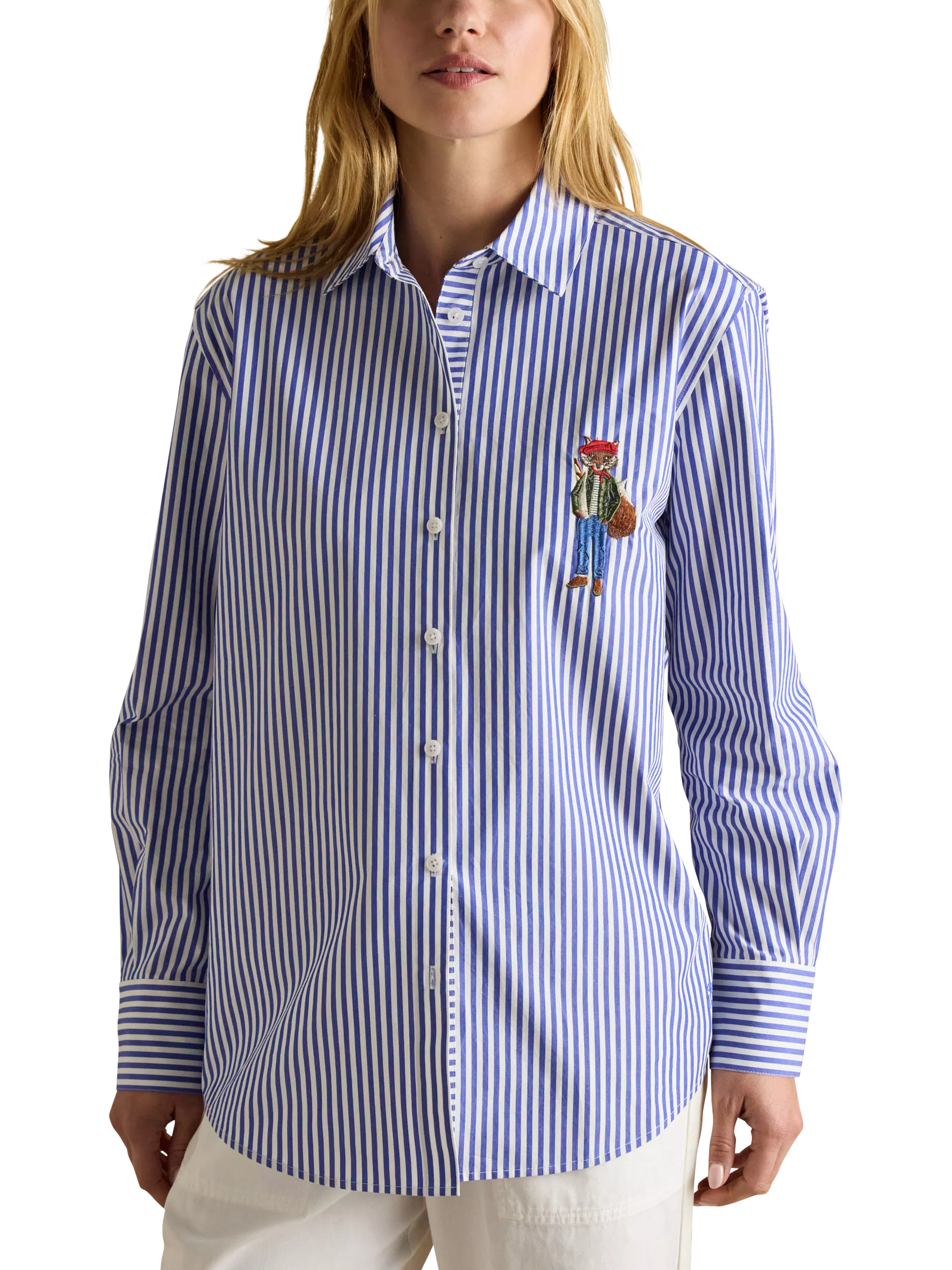 A classic stripe shirt. Its button-down fastening offers versatility when it comes to styling - button it up and tuck it into a pair of wide-leg jeans, or throw it unbuttoned over a swimsuit for an effortless beach look. Cotton poplin is characterised by its lightweight feel and smooth, soft finish, making it perfect for the warmer weather. It's finished with button cuffs, a hanging loop to the reverse and a box pleat detail at the back.