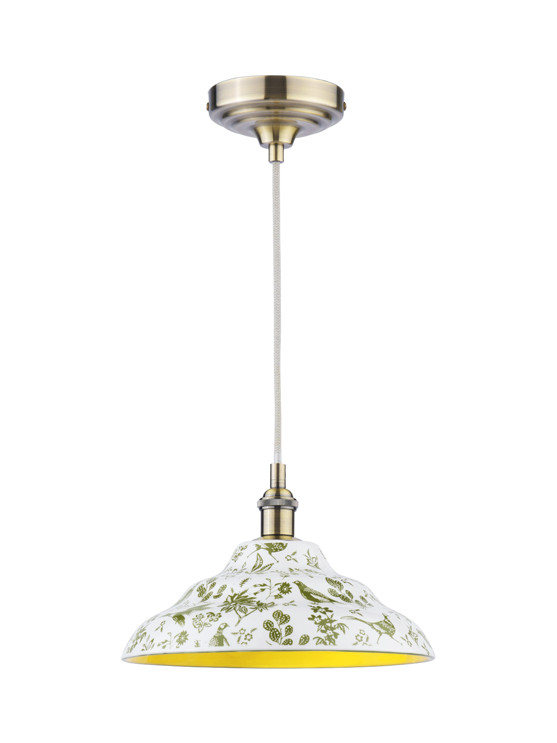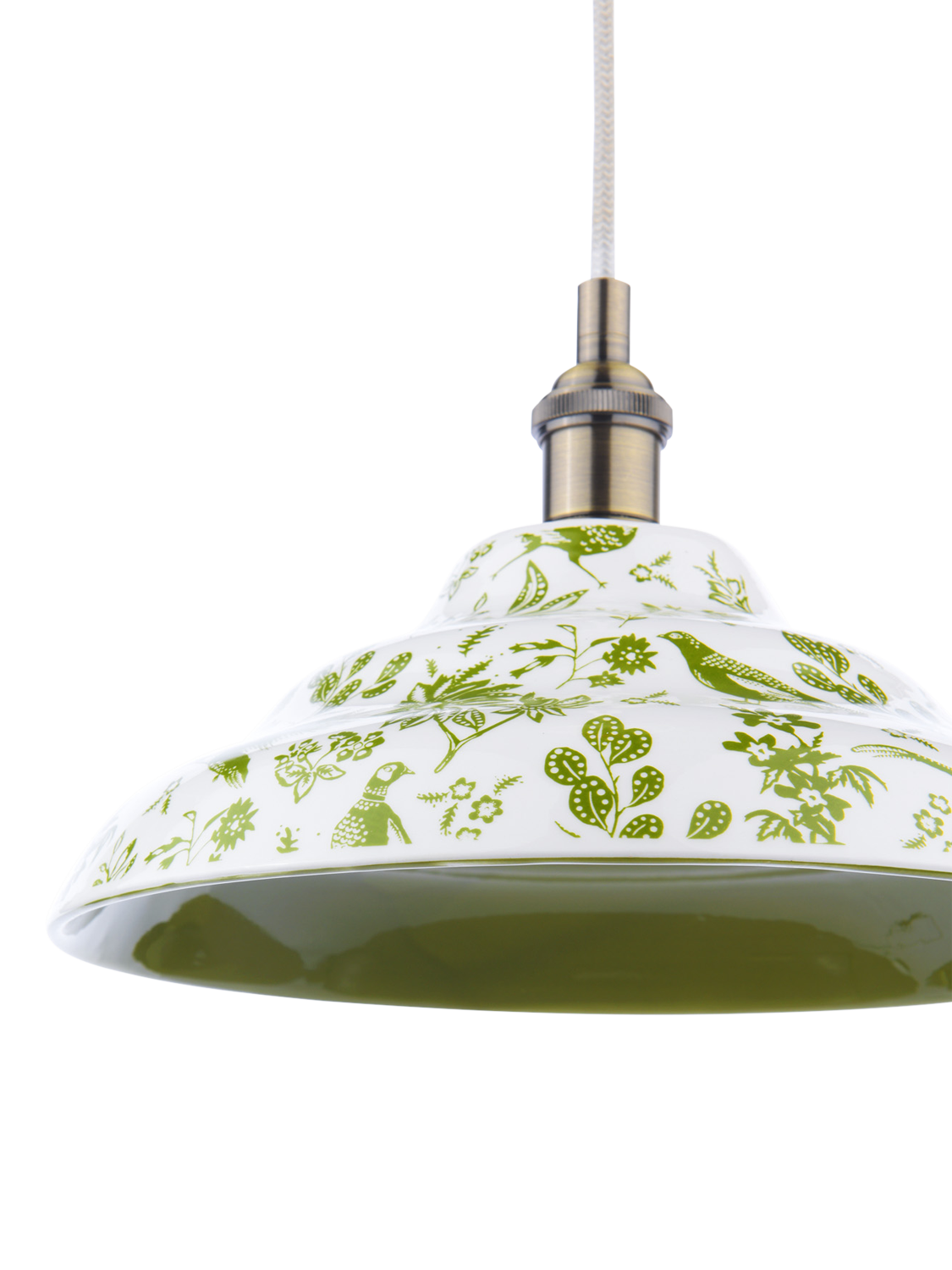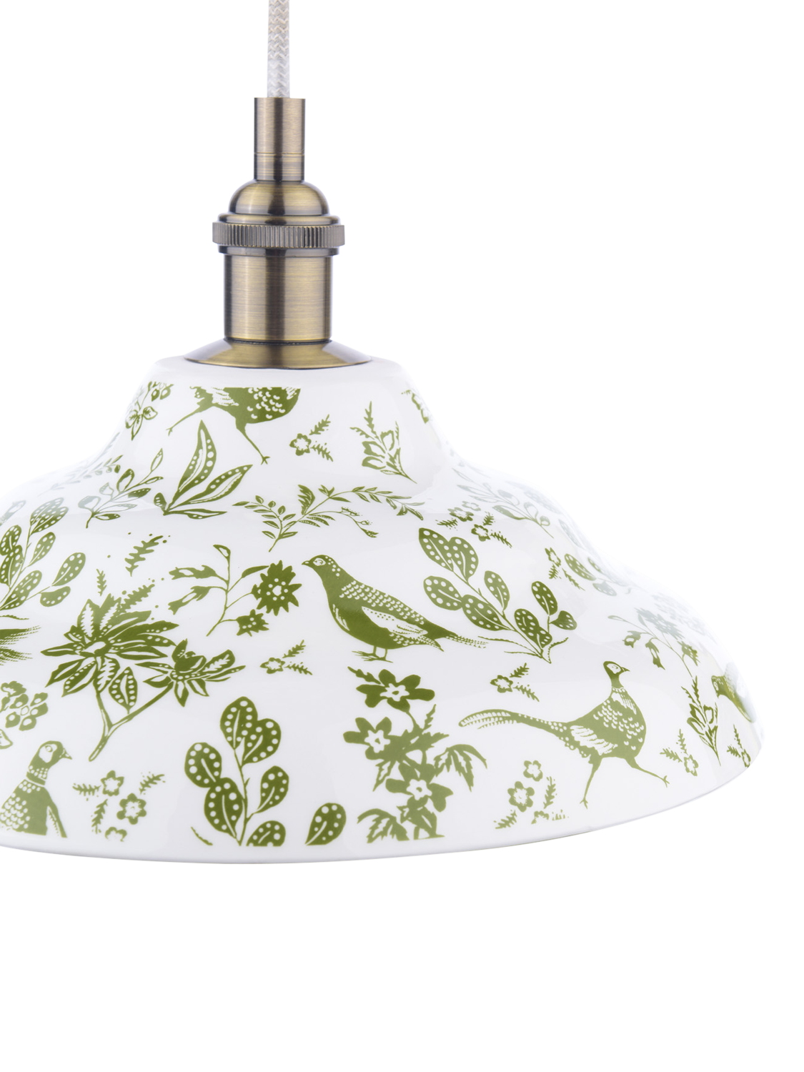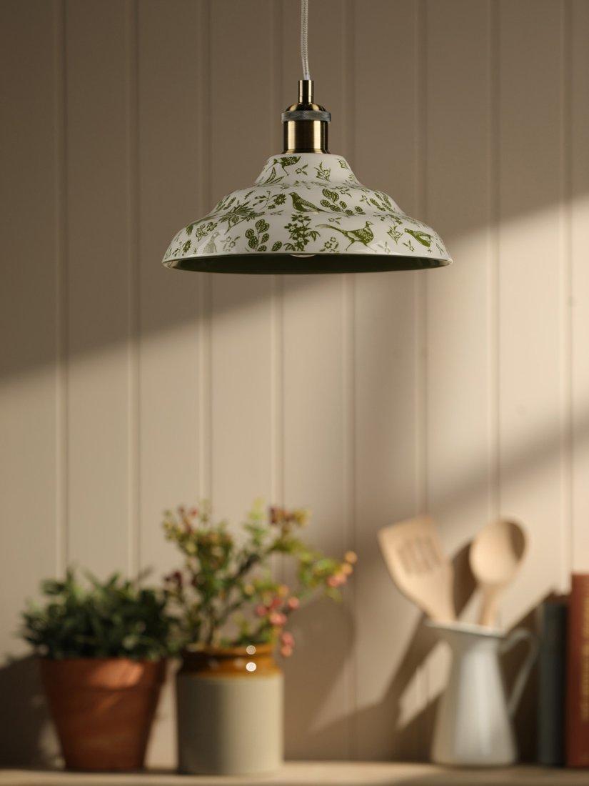 Add a touch of British eccentricity to any room with the Audley ceiling light. The shade is made from hardwearing ceramic, so it will live long as a focal point in your home. The outer features a quirky green pheasant print set against a fresh off-white background, while the inside has a complementing green gloss painted finish.