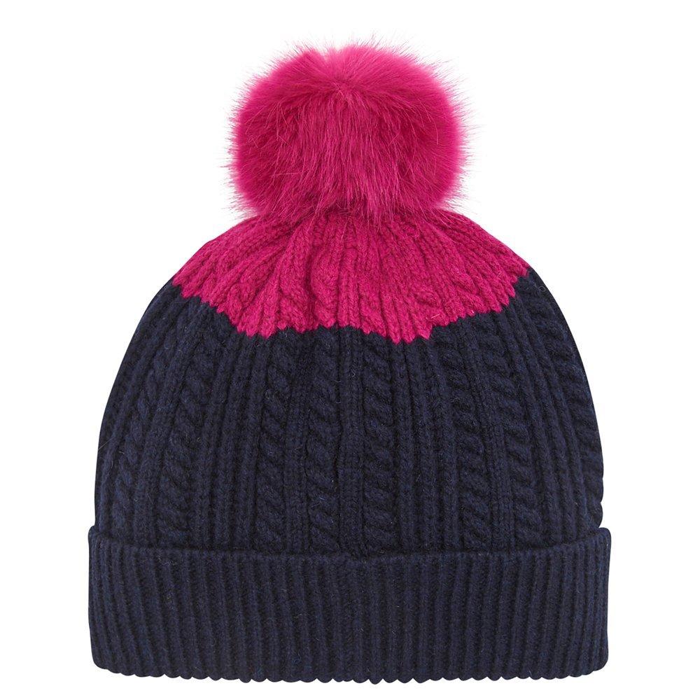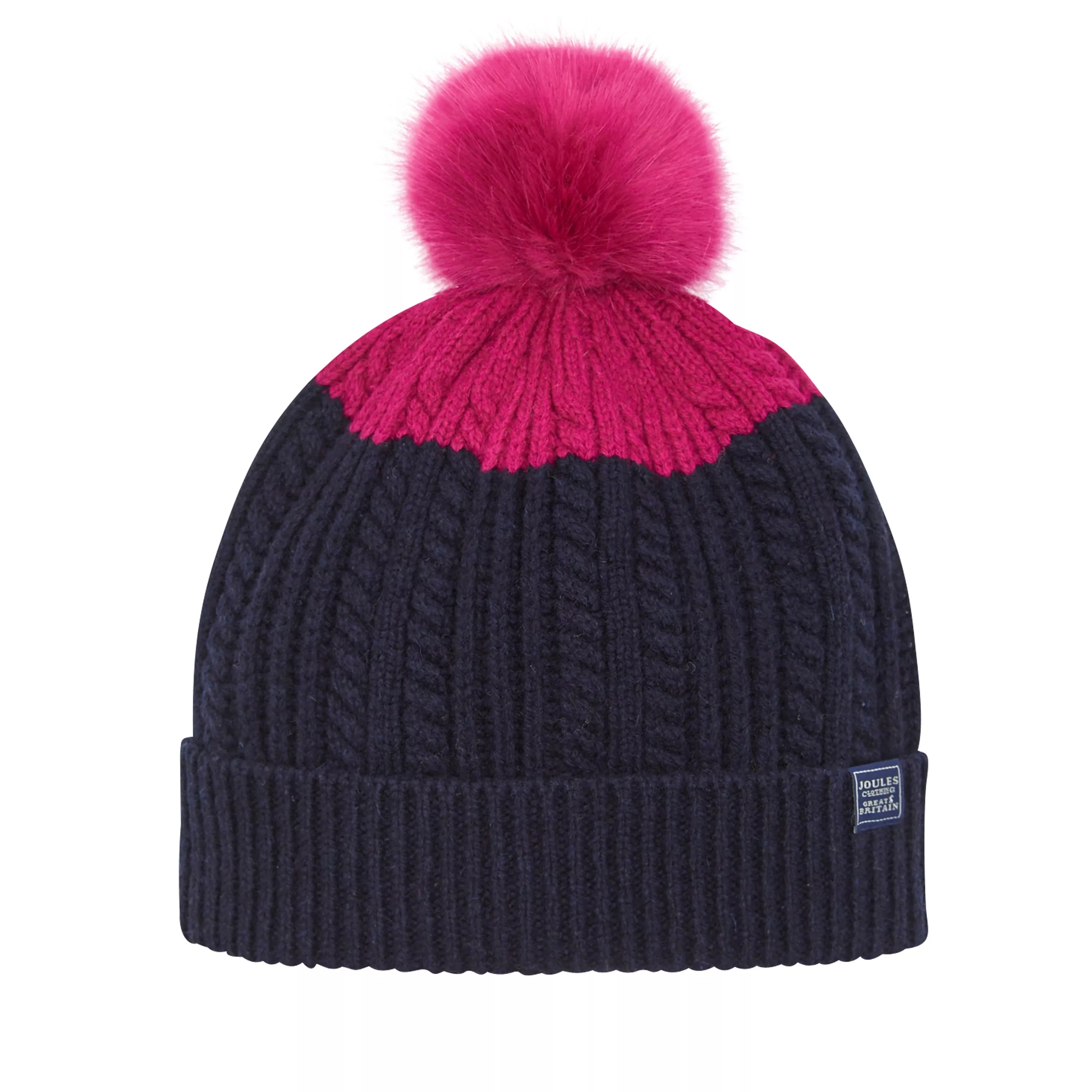 Channel chic cold weather accessories with this cable knit pom pom beanie hat by Joules.