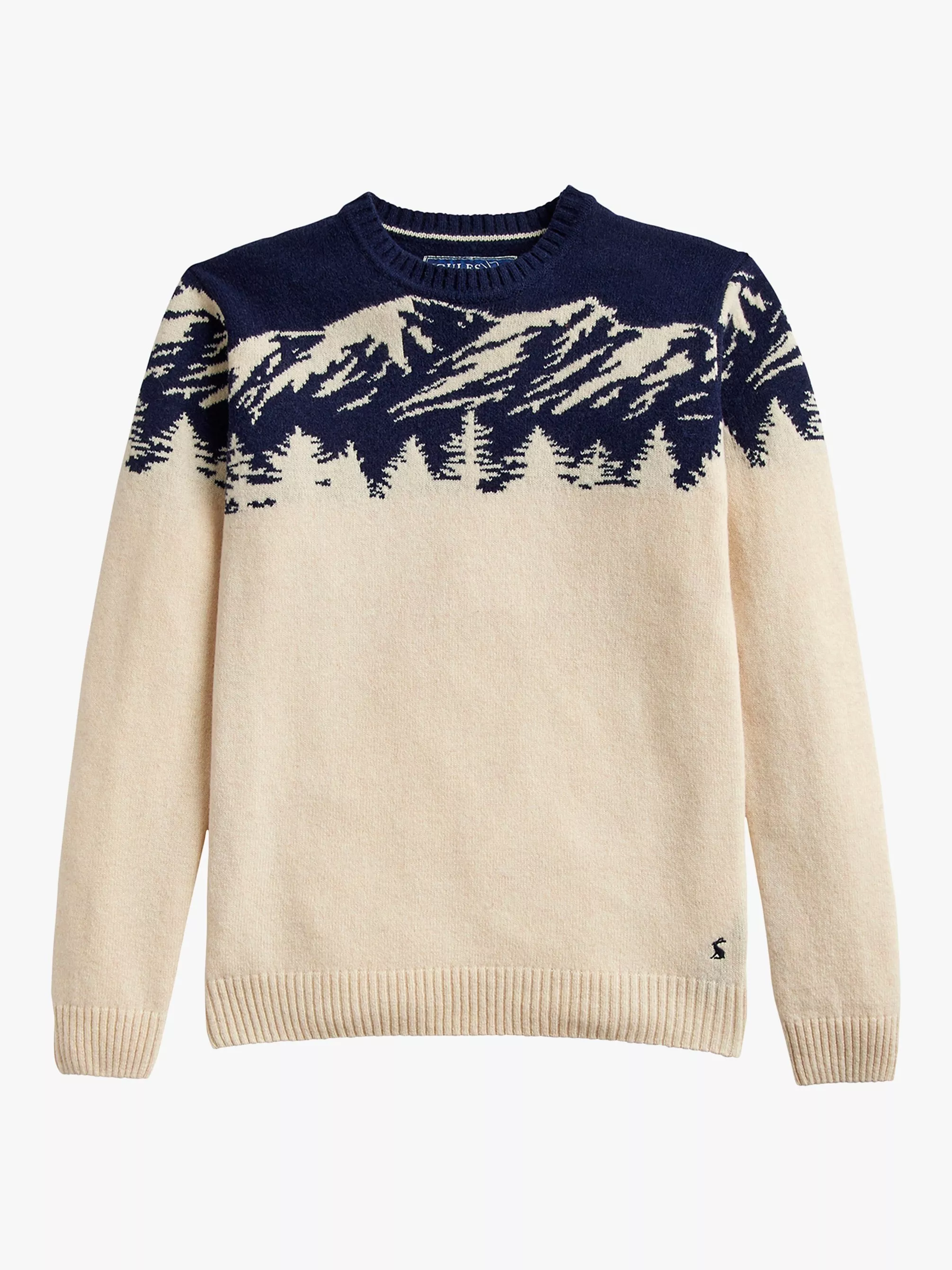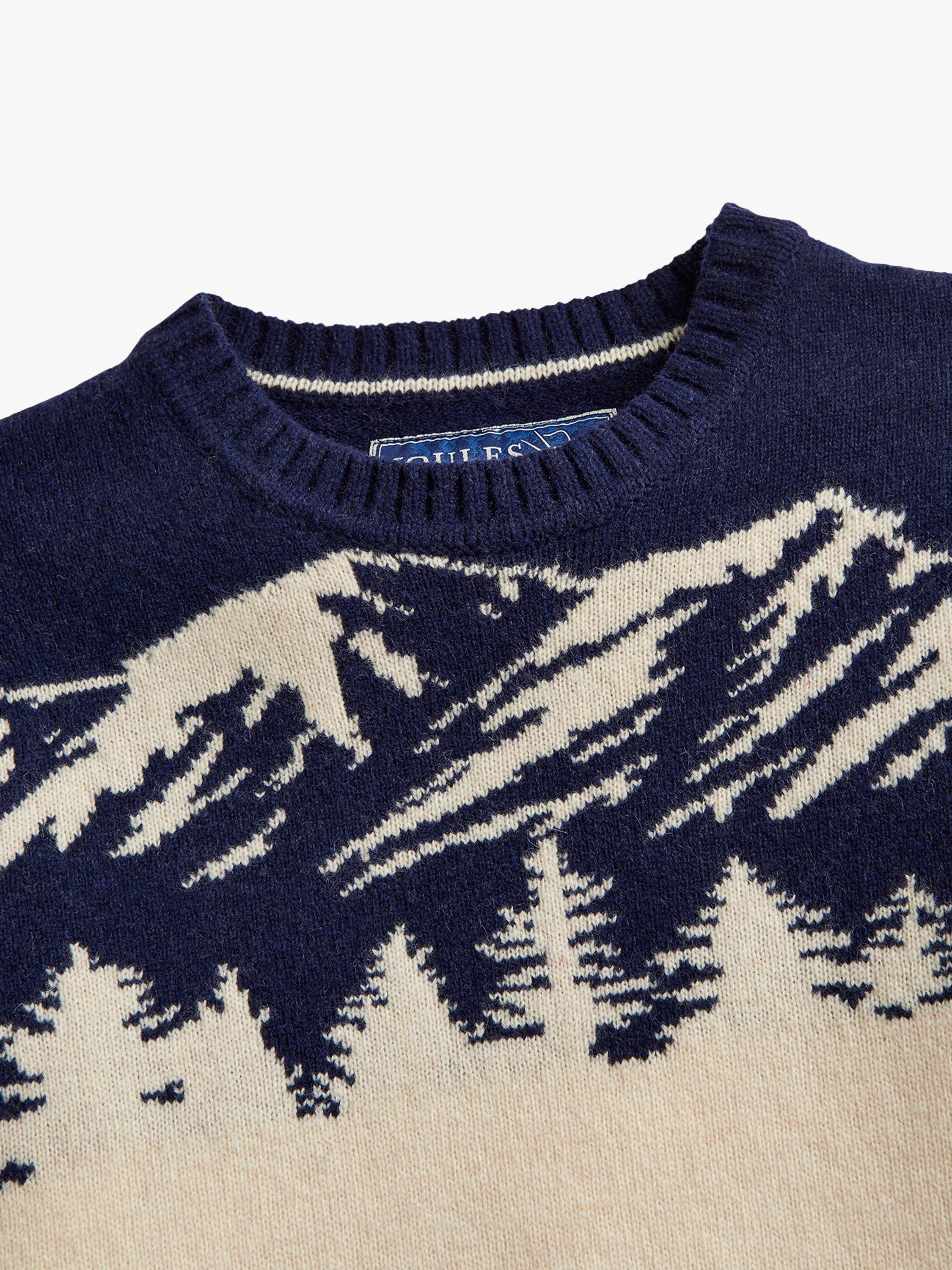 Crafted from a sumptuous wool-blend for optimum comfort and warmth, it features a snowy mountain scene and is complete with ribbed trims for a cosy fit.
