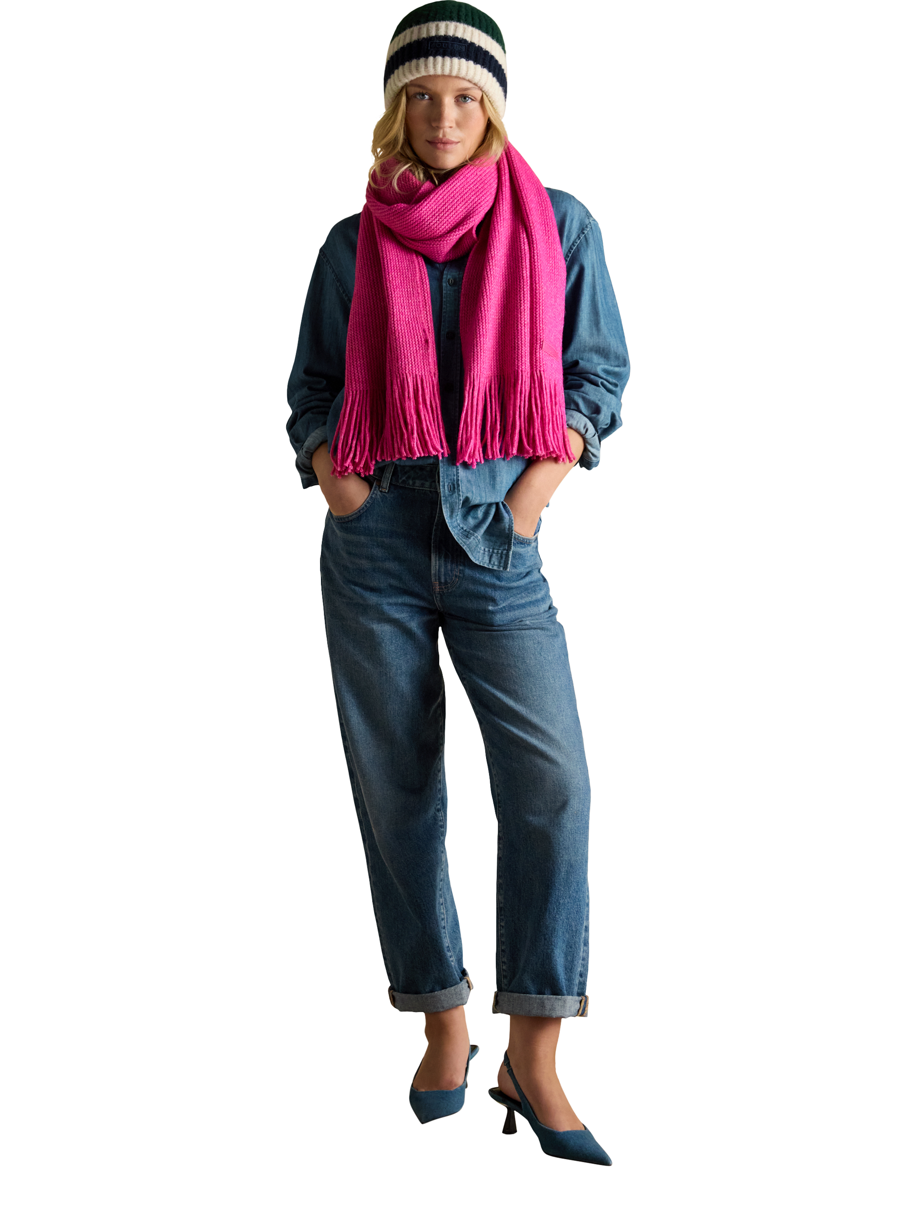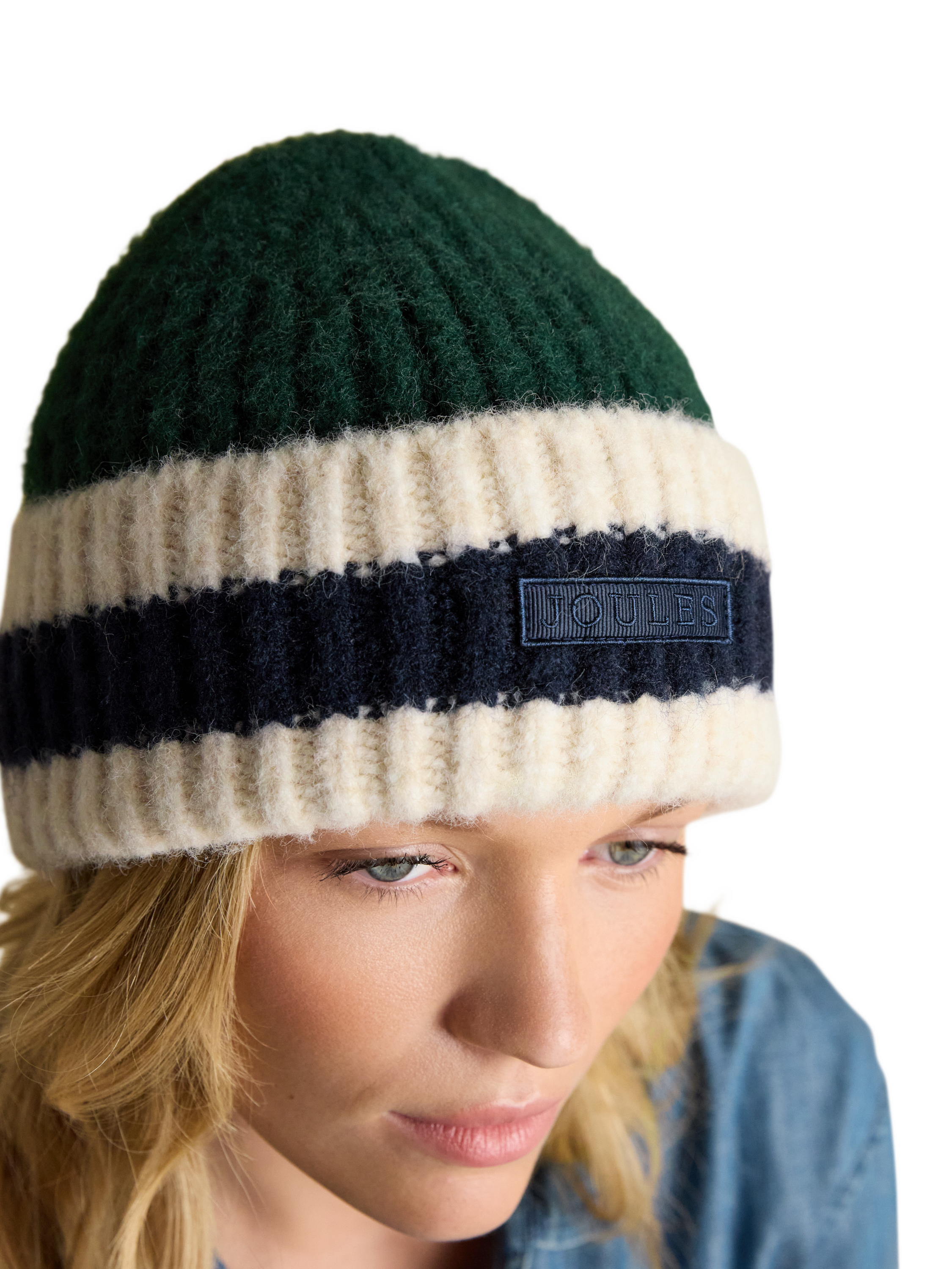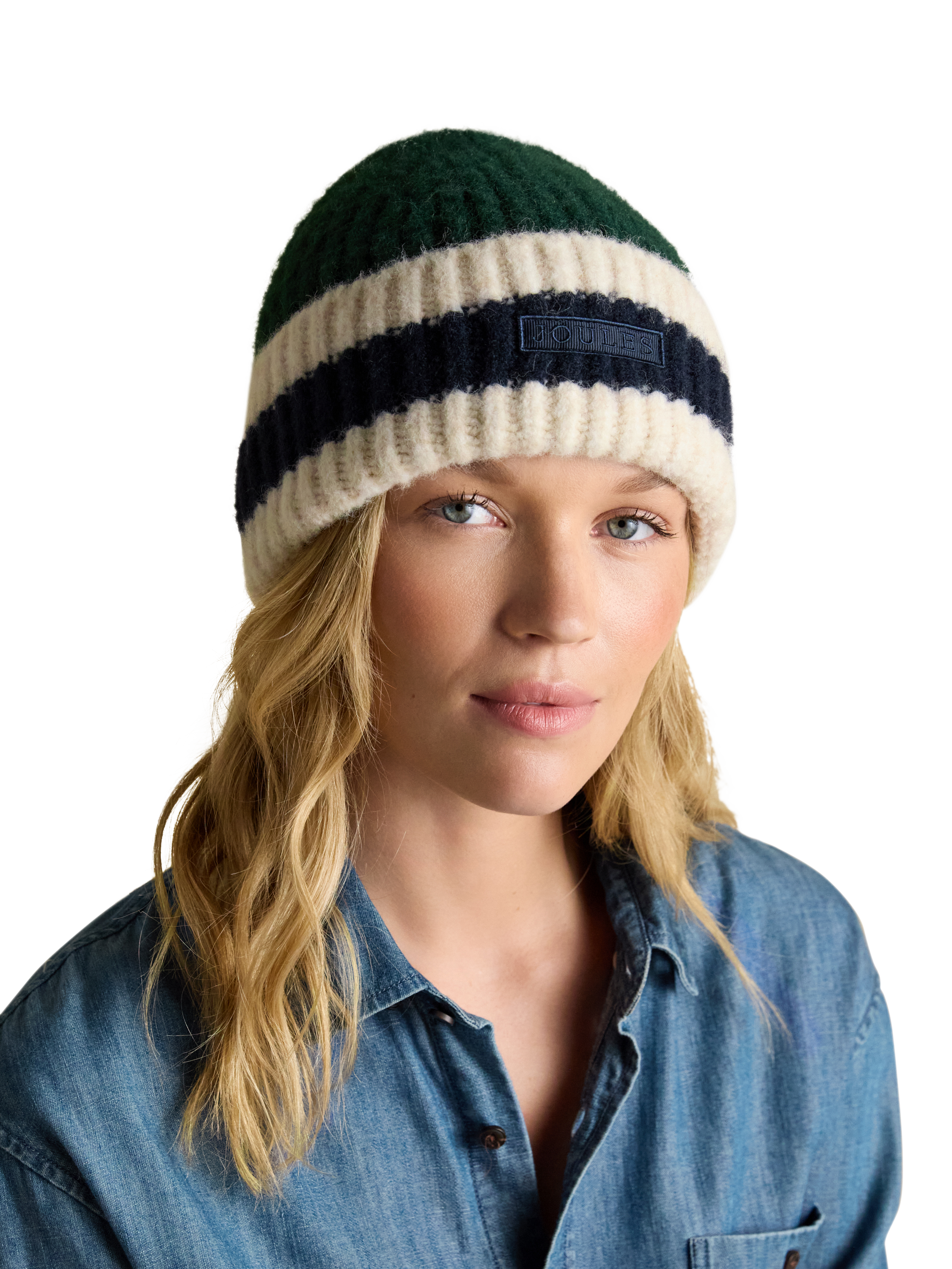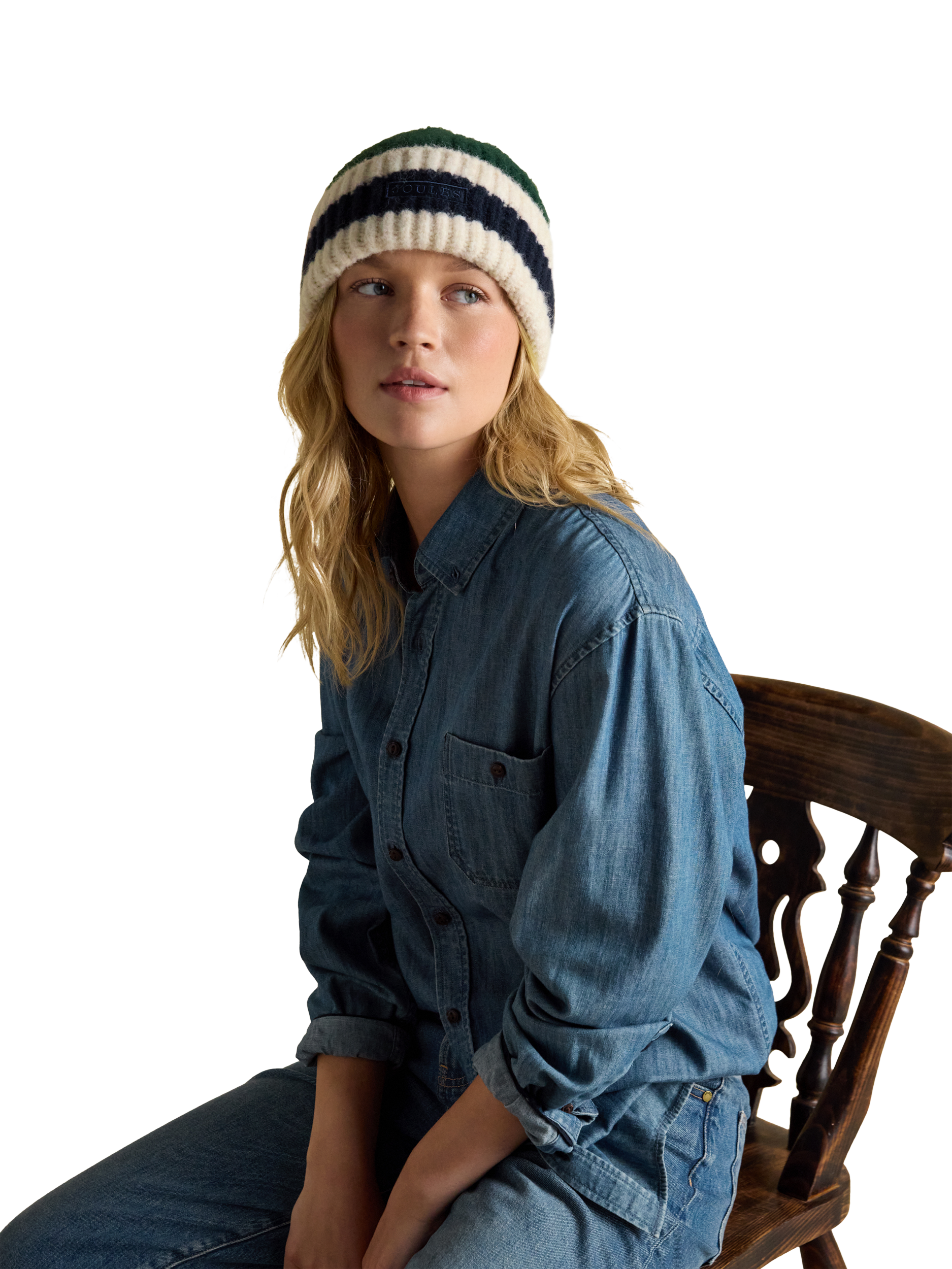 This striped beanie brings warmth and comfort with a lively twist, fitting snugly to keep you cosy when the weather turns.