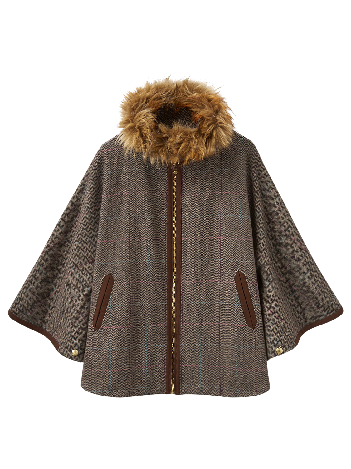 The considered choice for any discerning dresser, this Contessa tweed cape from Joules exudes plenty of style and practicality.
