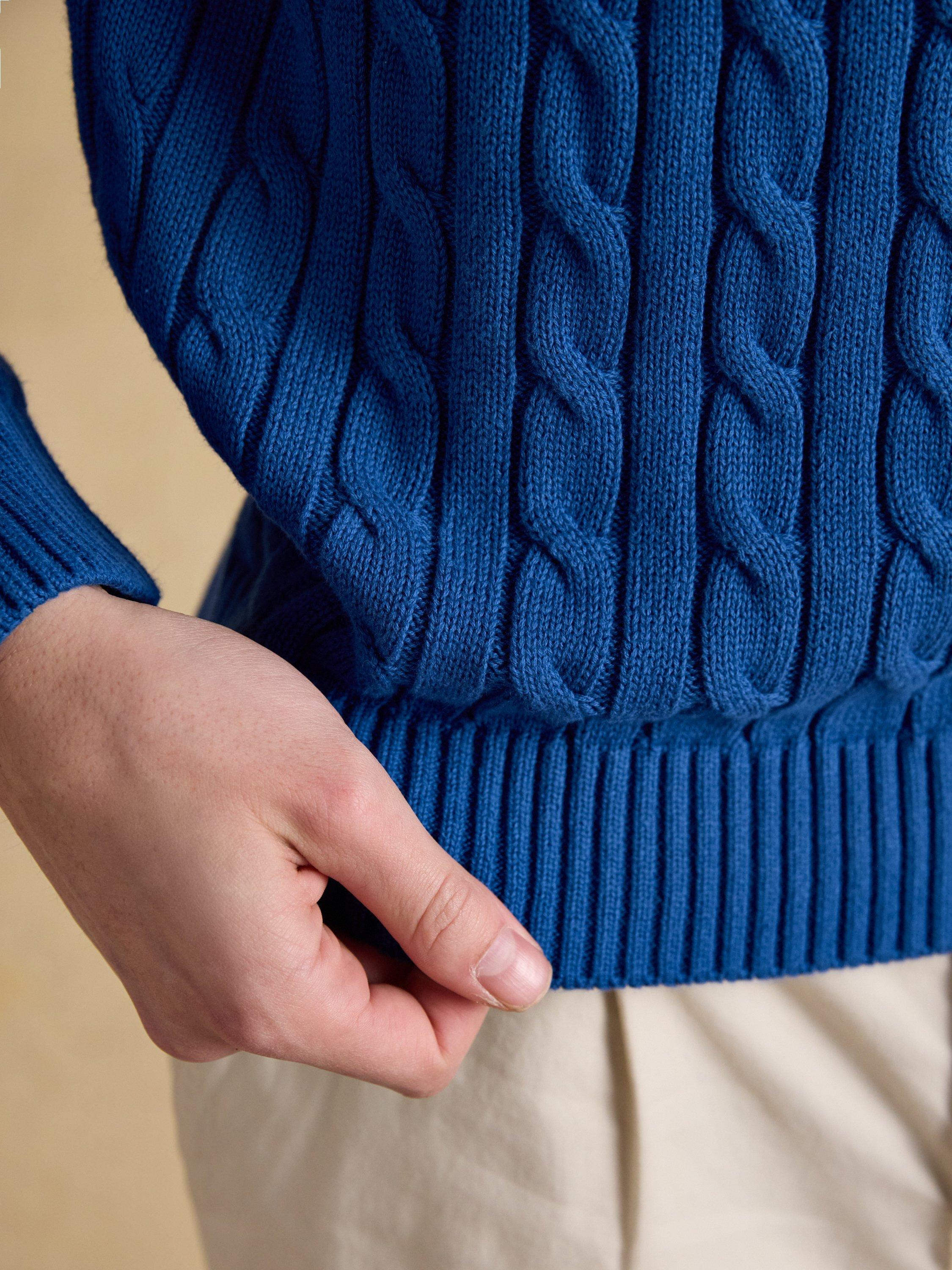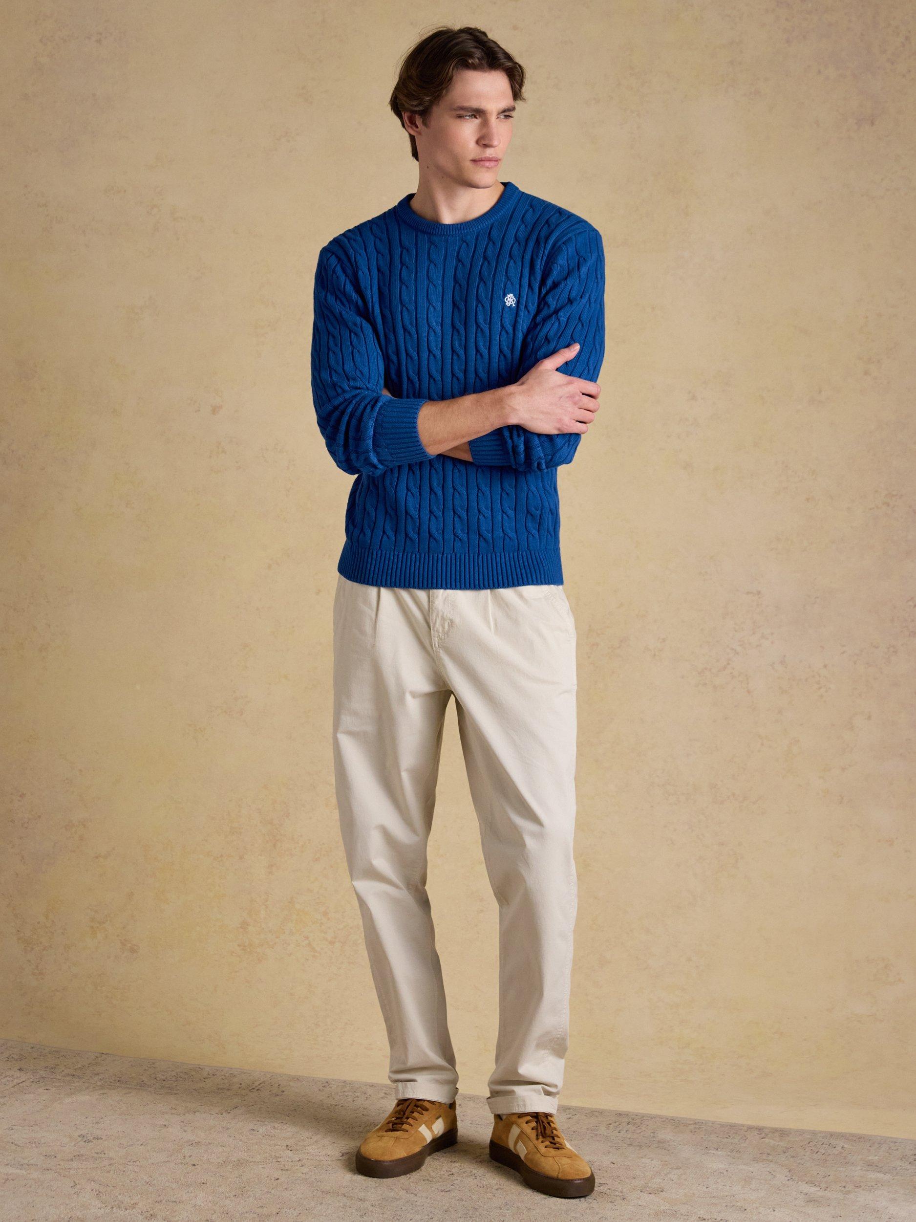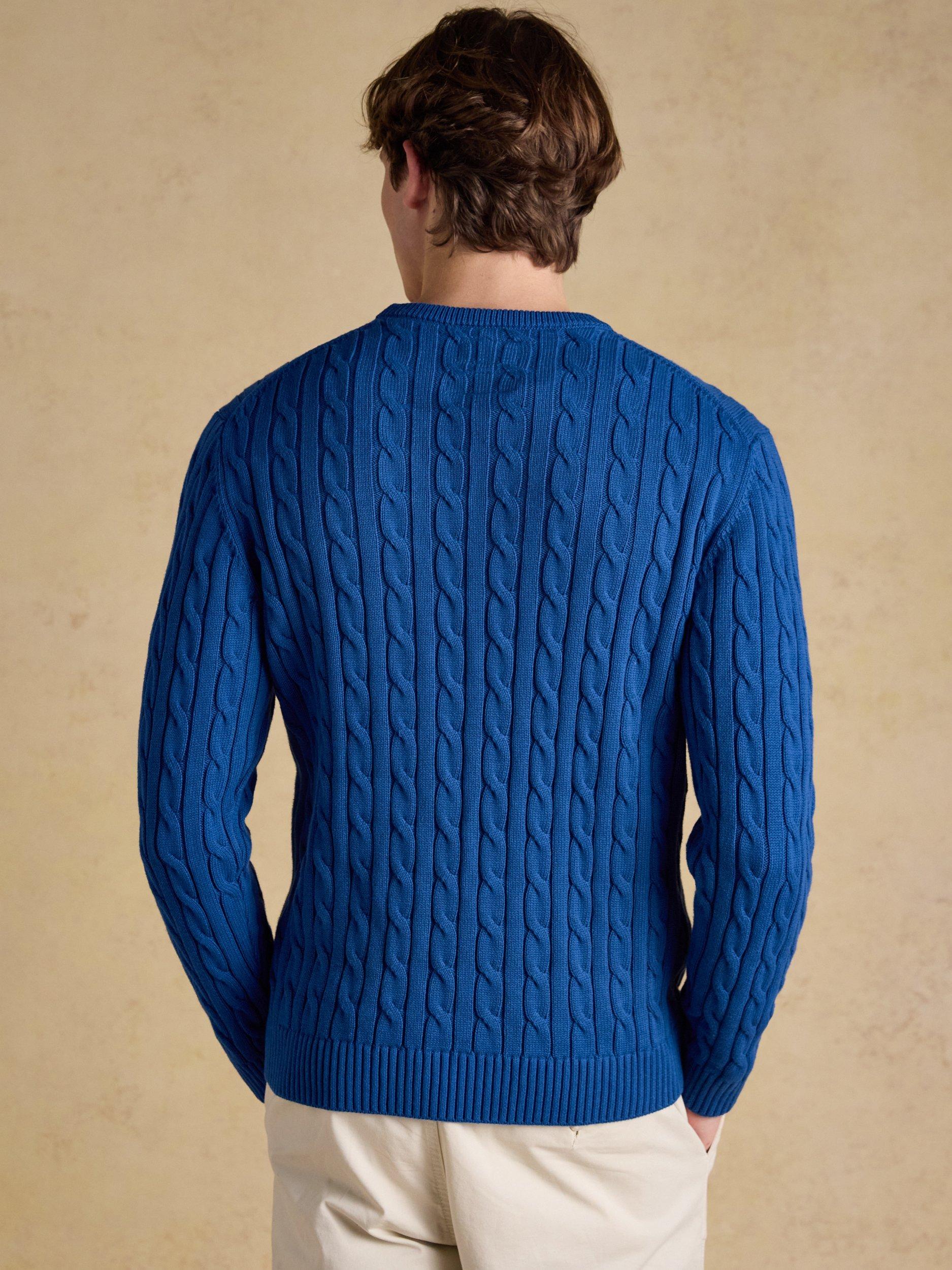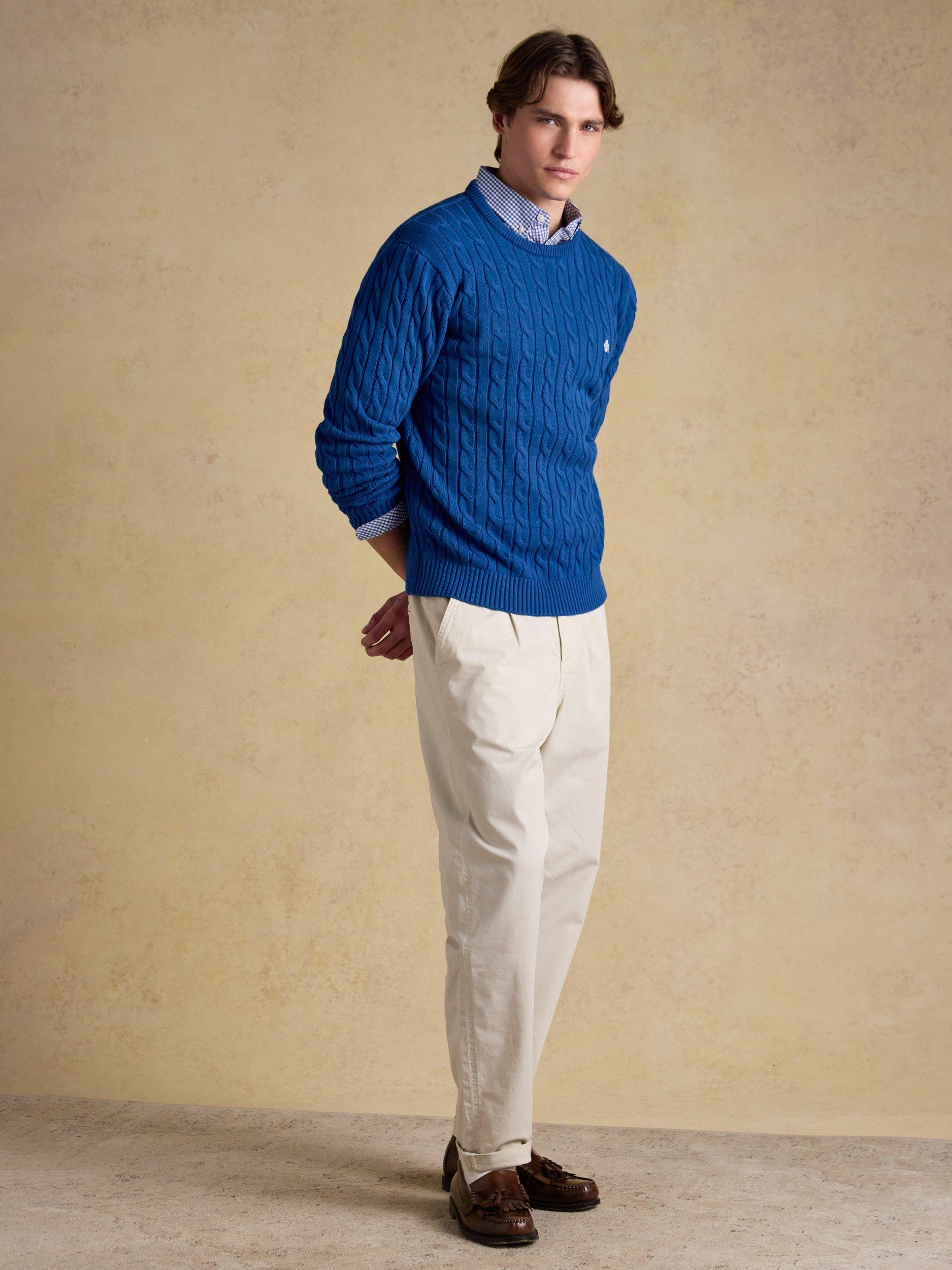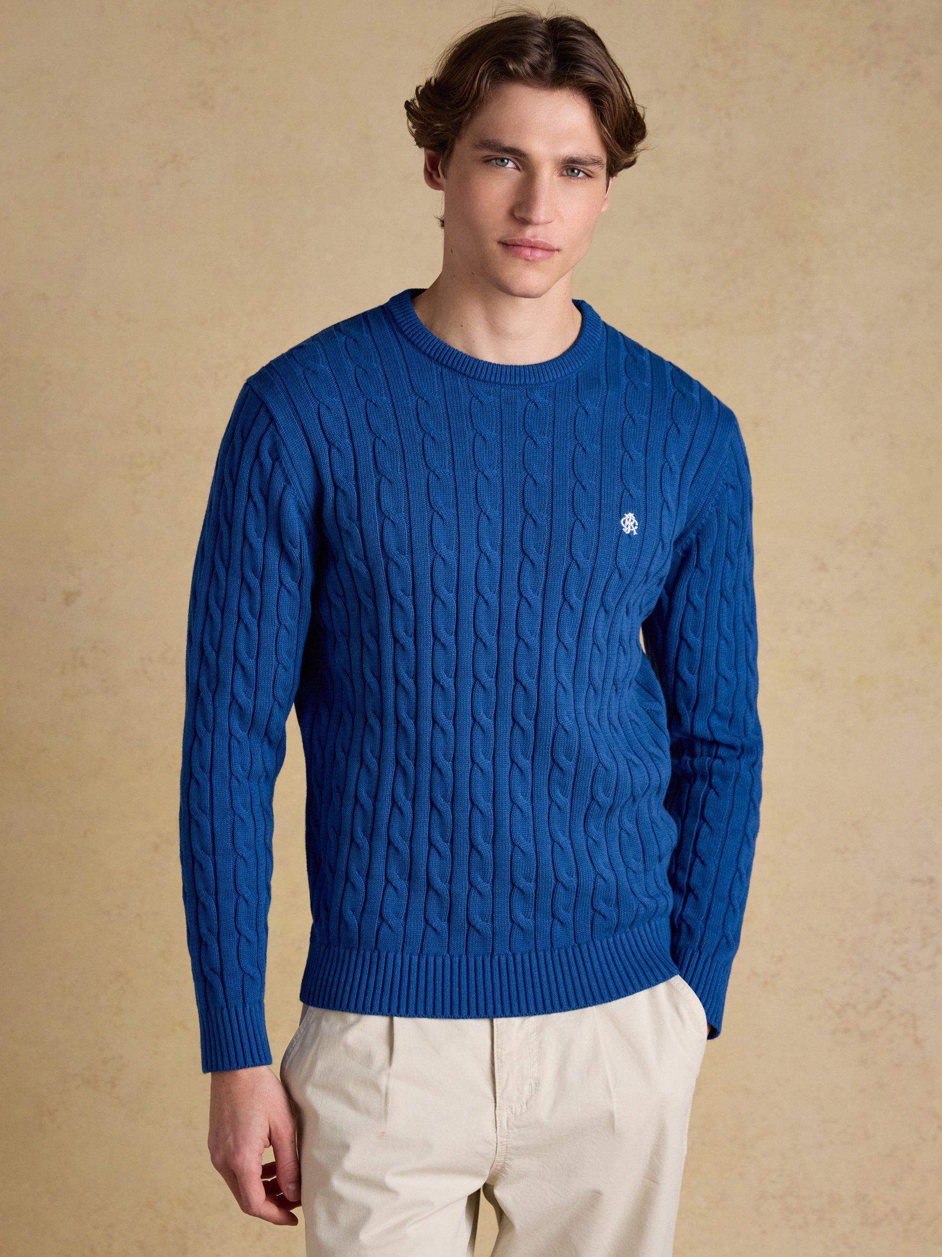 Every man needs a stash of reliable, top-quality jumpers that they can keep in the wardrobe all year round and turn to when the weather dips a little. This is exactly that and is also a great choice for any man looking for a touch of style. It's crafted from a soft 100% cotton cable knit, has a crew neck (making it great for layering over shirts) and is finished with a ribbed hem, neck and cuffs.