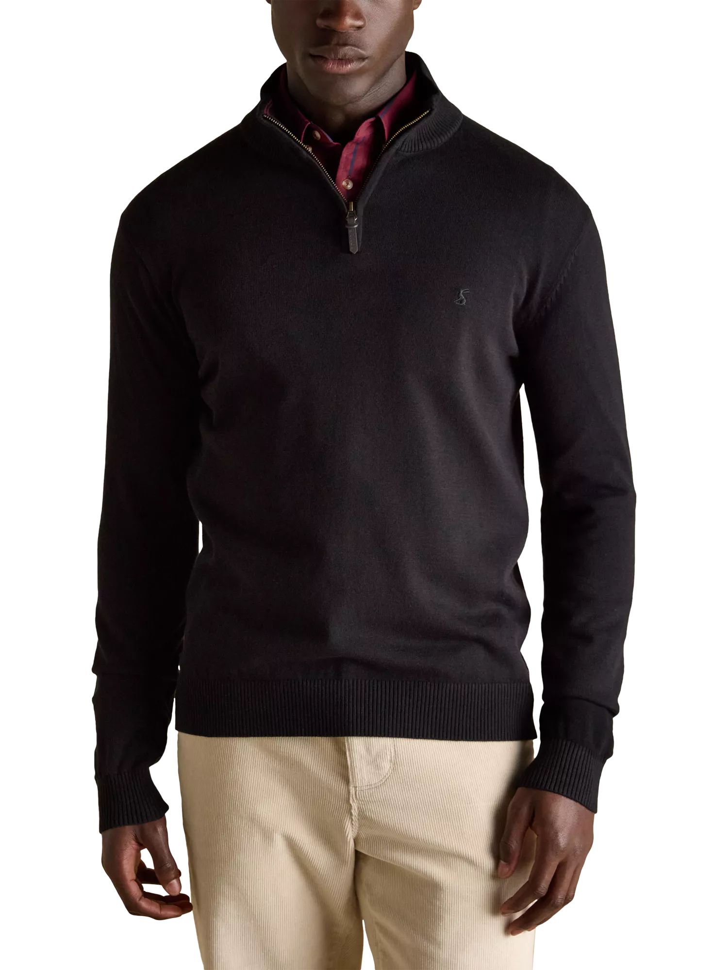 This quarter zip jumper is crafted from soft yet substantial cotton and is comfy enough for layering and yet dapper enough to wear on its own. The contrast back-neck is ribbed, as are the hem and the cuffs. Pull it on over a shirt for ultimate style, warmth and comfort. Perfect for those smart-casual occasions that can be tricky to dress for. Machine washable.