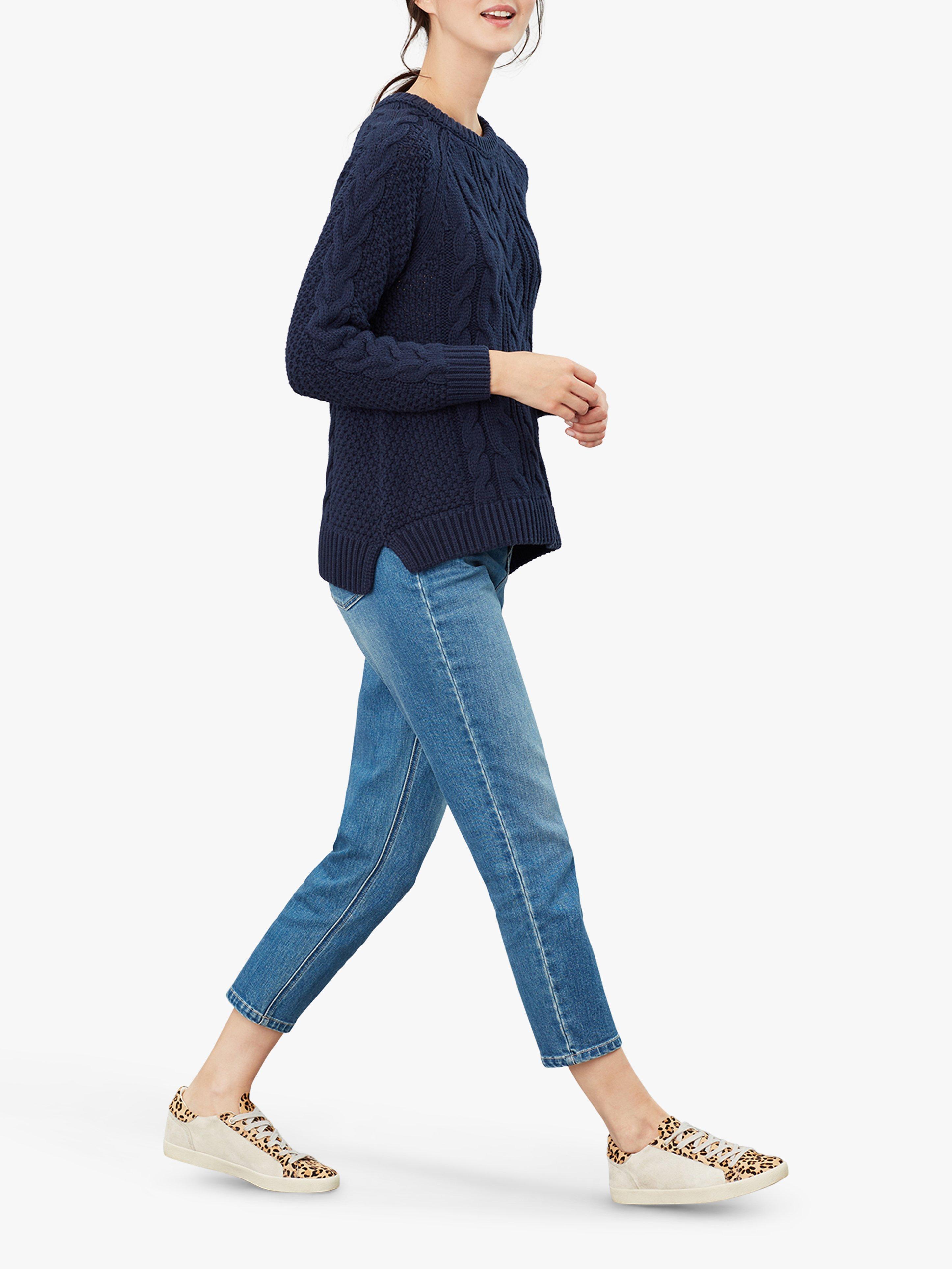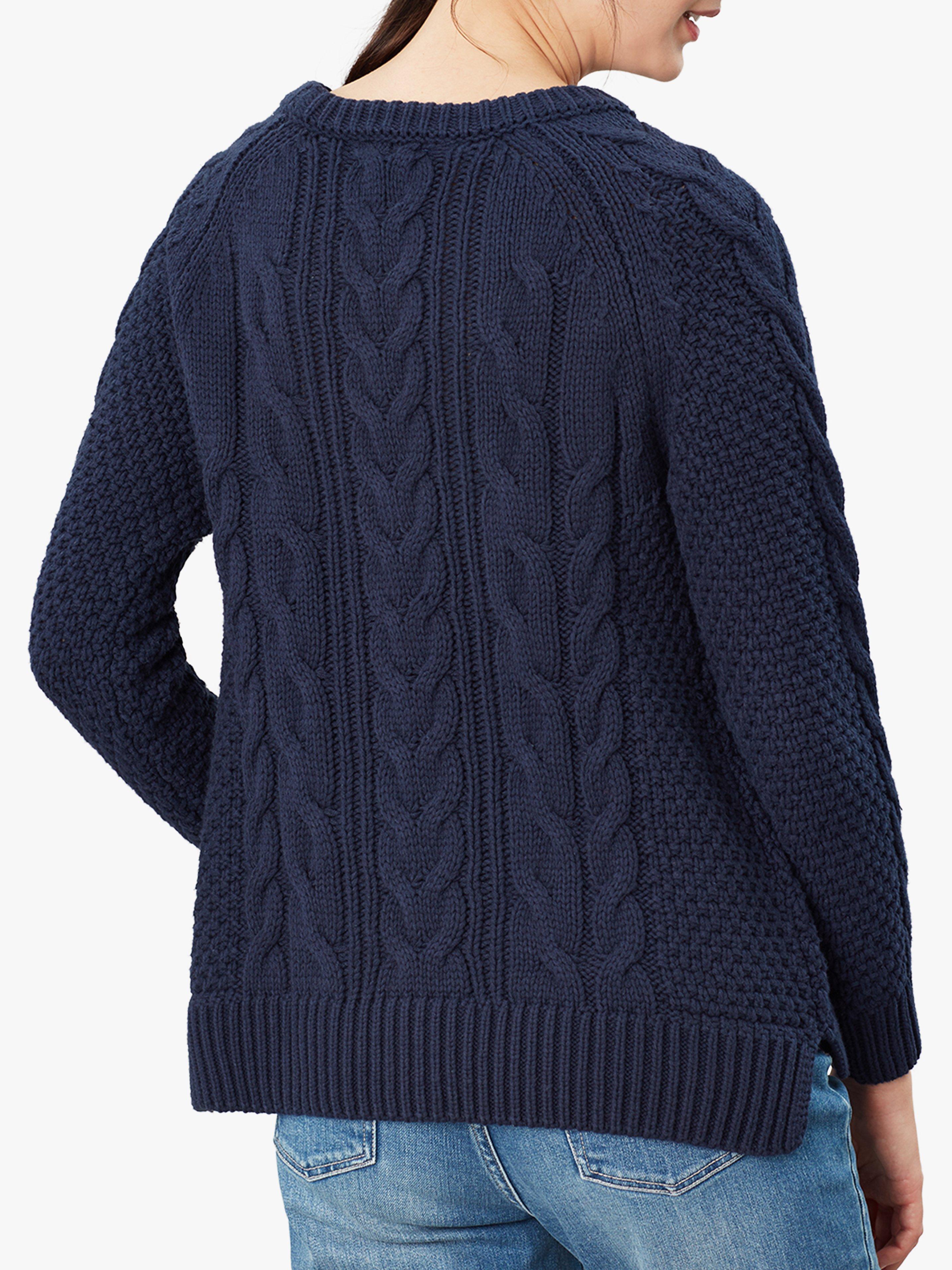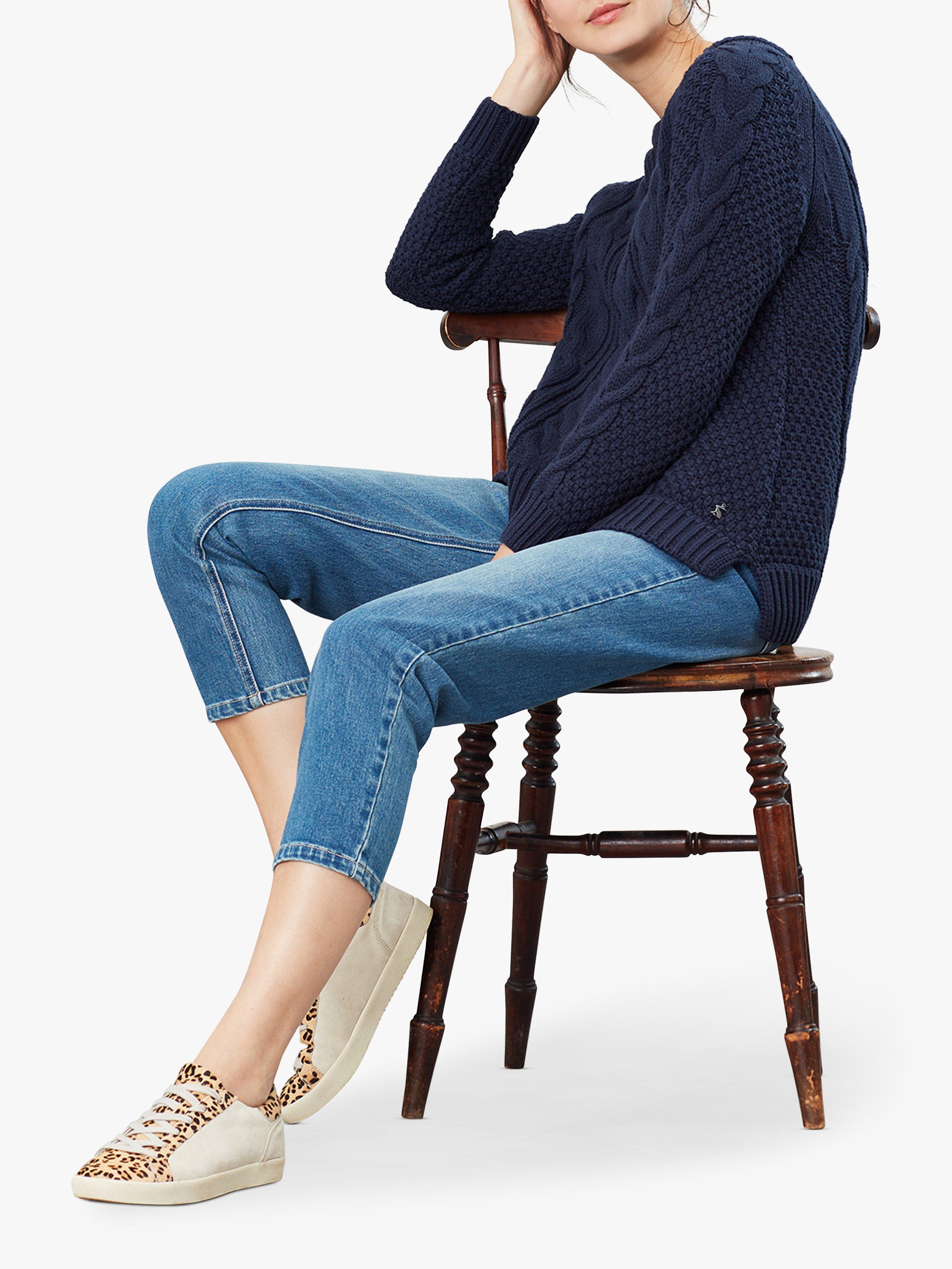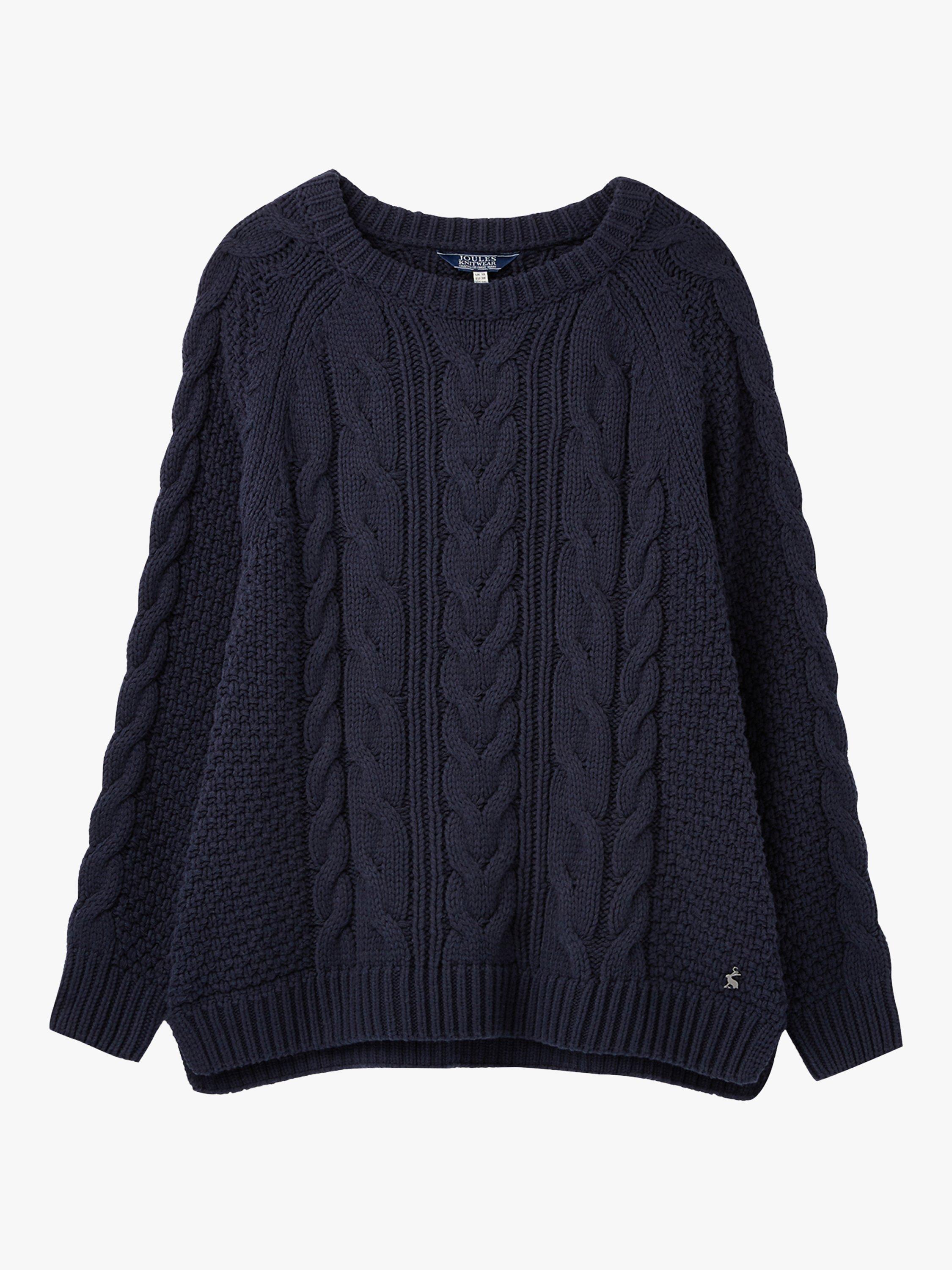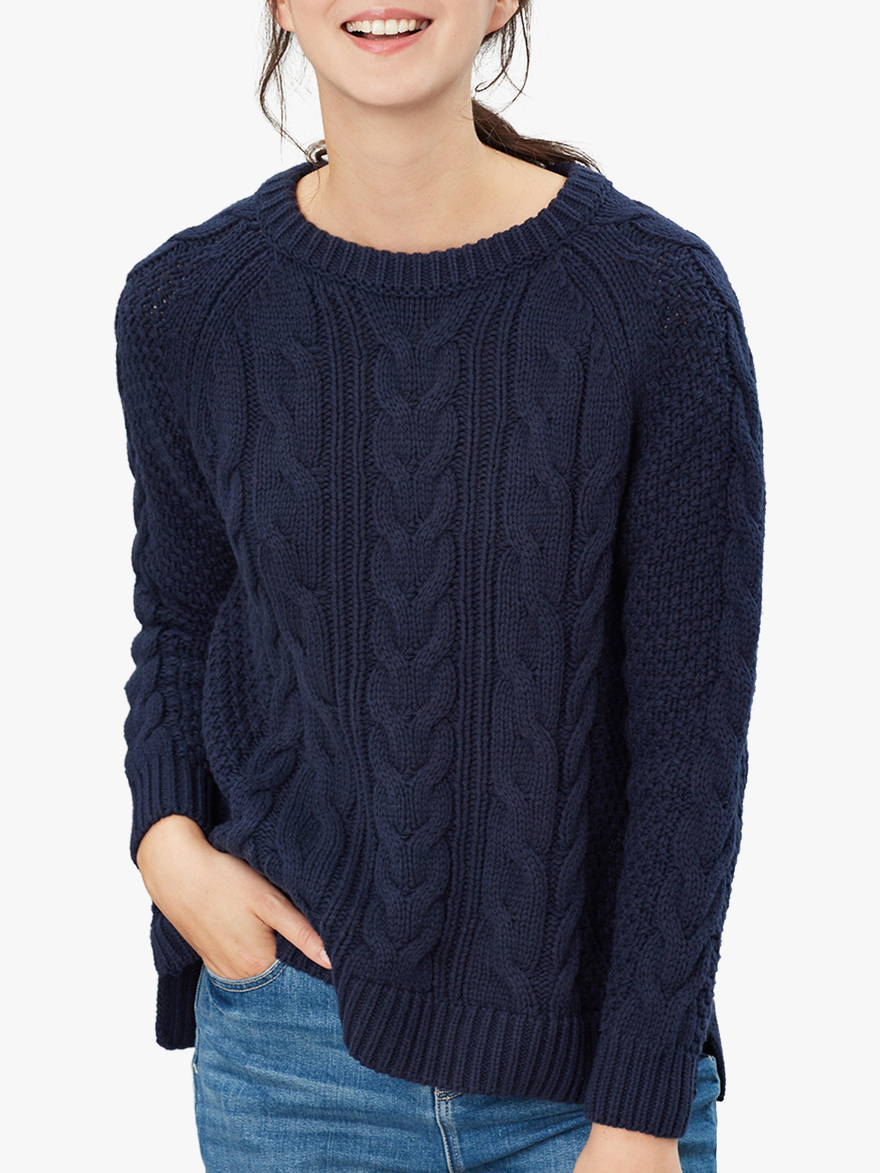 This Joules Dawson jumper makes cosy dressing effortless during the cooler weather. The relaxed a-line shape is accompanied by raglan sleeves and a classic cable-knit pattern, accented by moss stitching at the side seams and ribbing at the hem. Try wearing this with a pleated midi skirt, tights and ankle boots for an on-trend look this season.