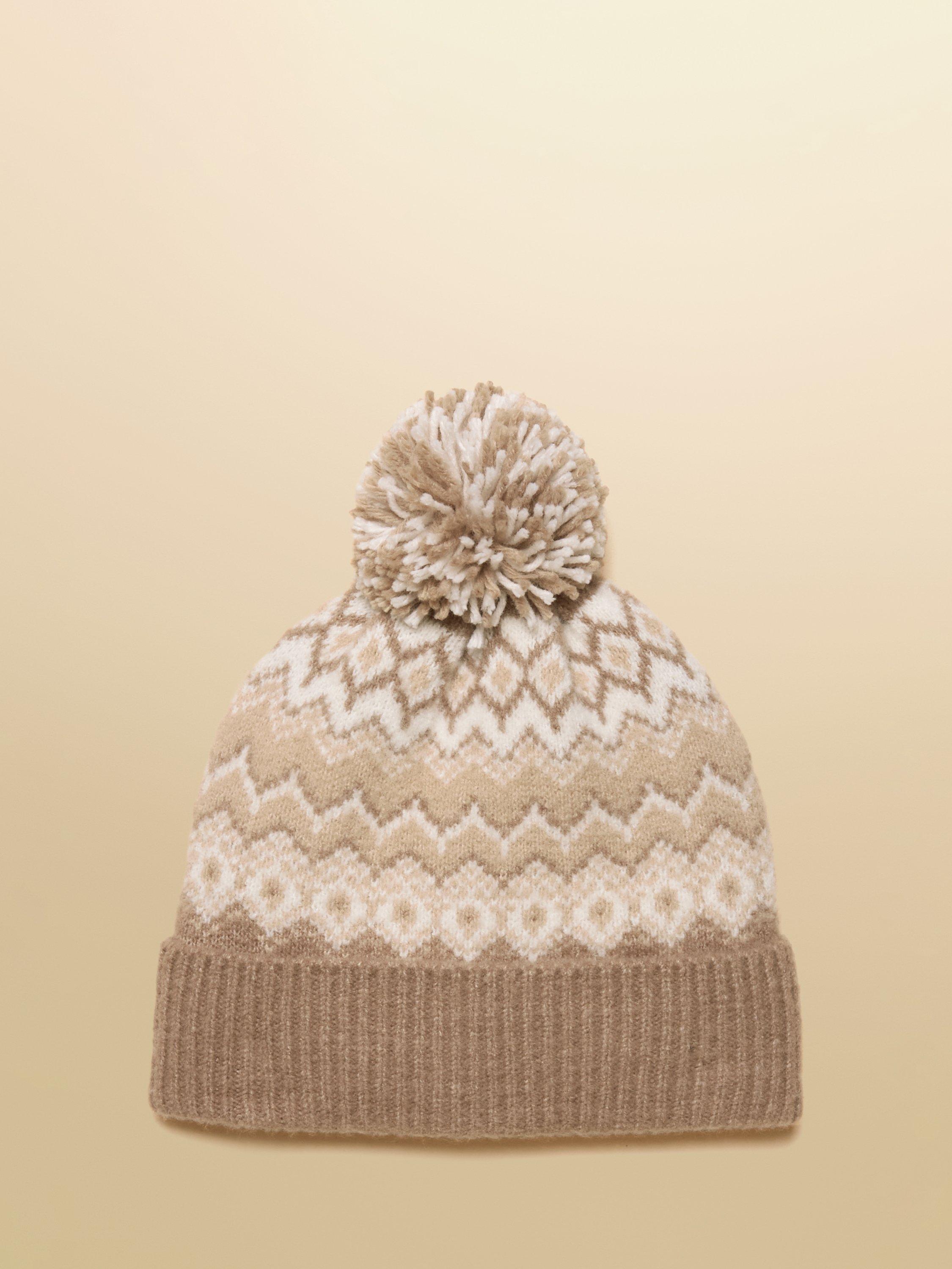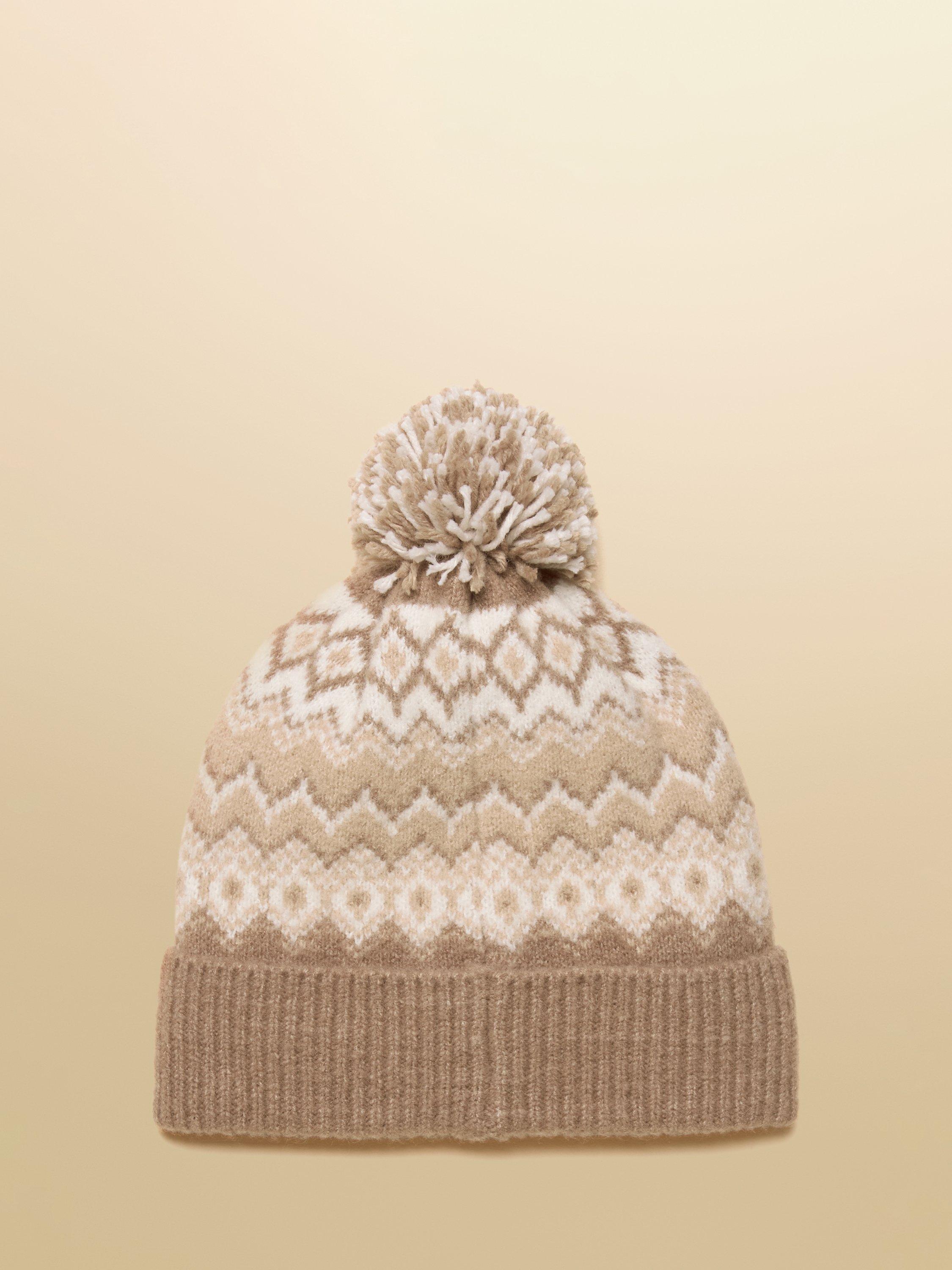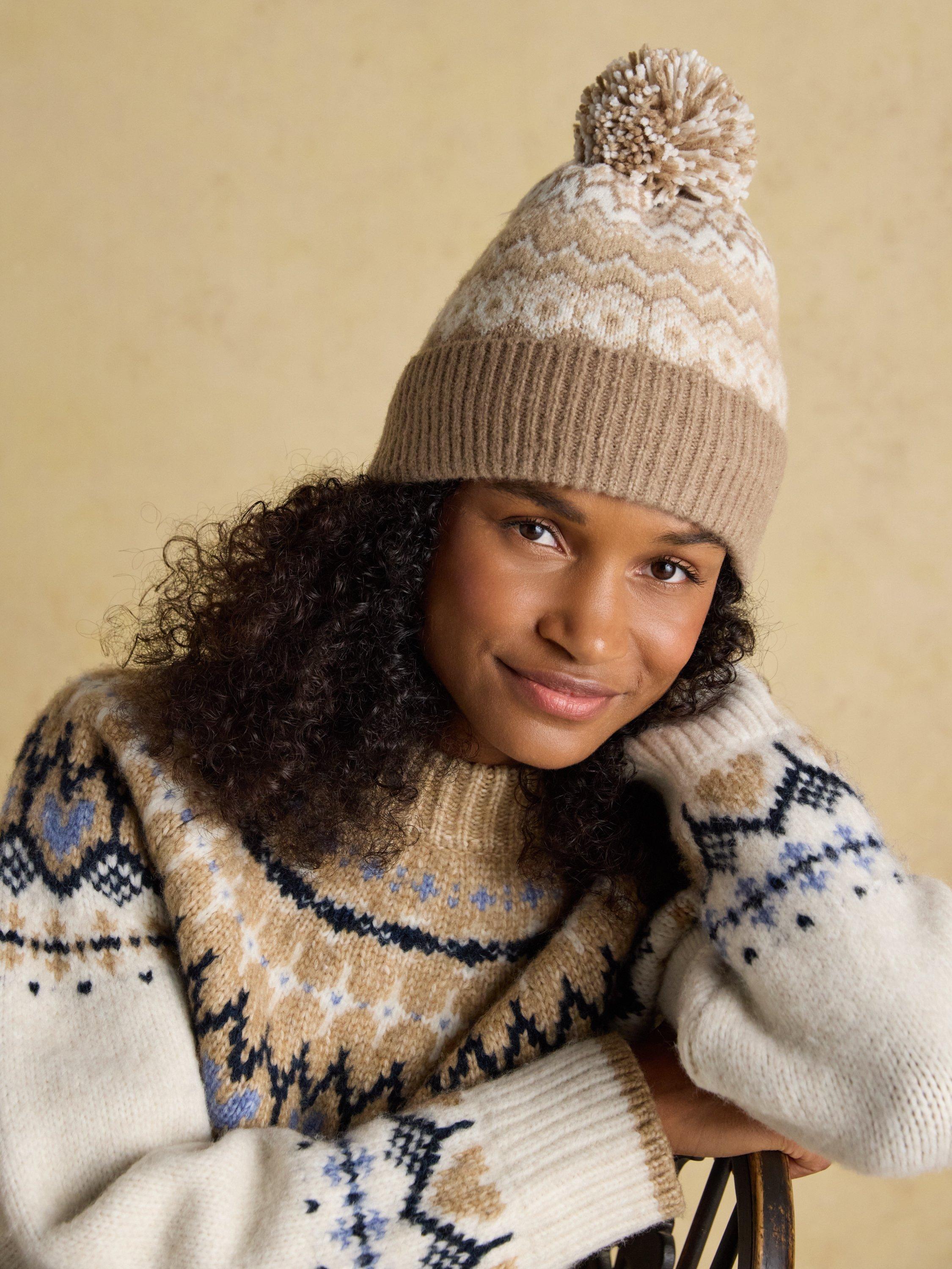 Introduce warmth into your wardrobe with the Kara bobble hat. A practical accessory that will look good too, it's the ultimate cold-weather style. It features a FairIsle pattern, a ribbed turnback cuff, a super soft lining, and is finished with a pom pom detail to the top.
