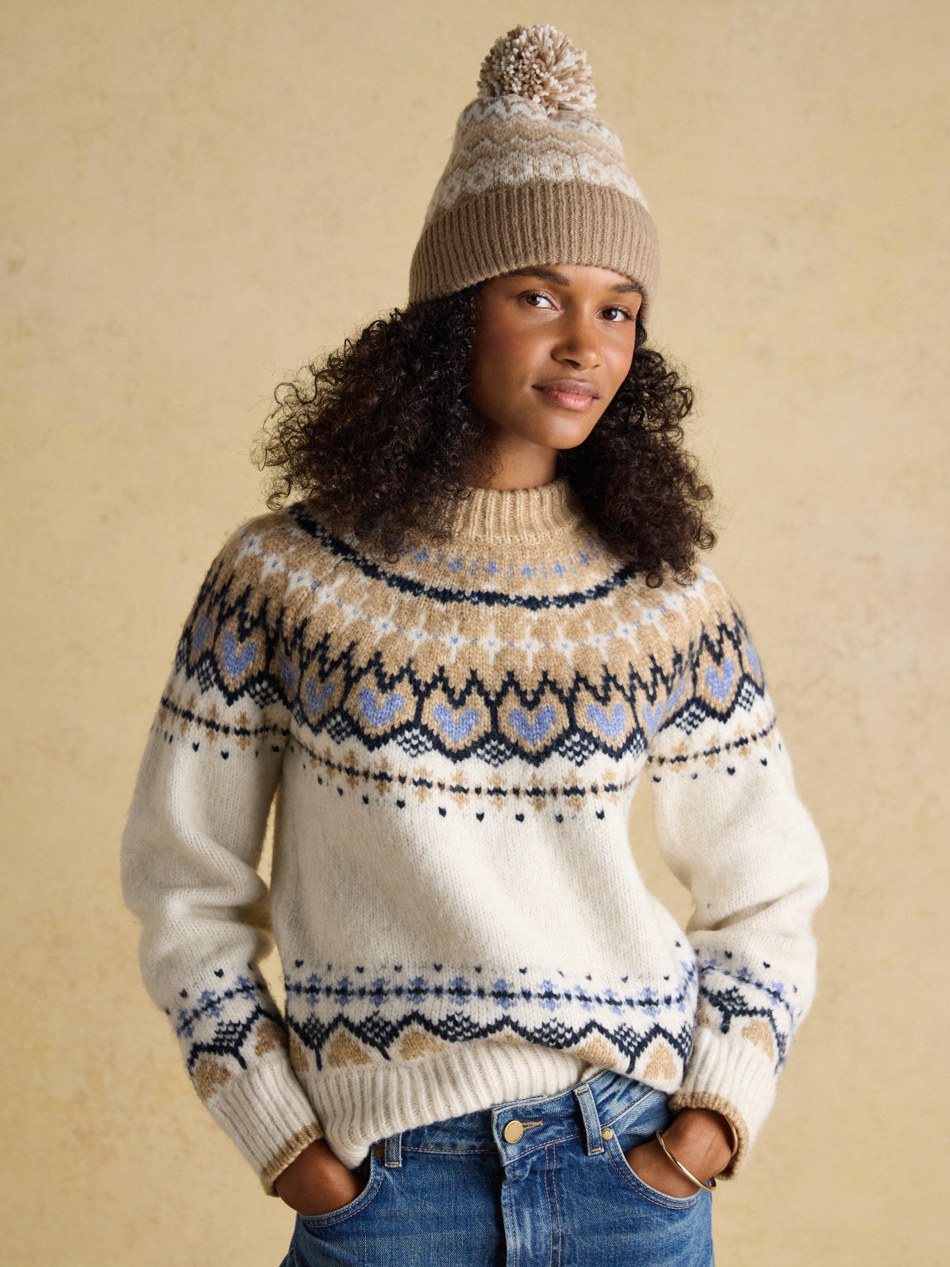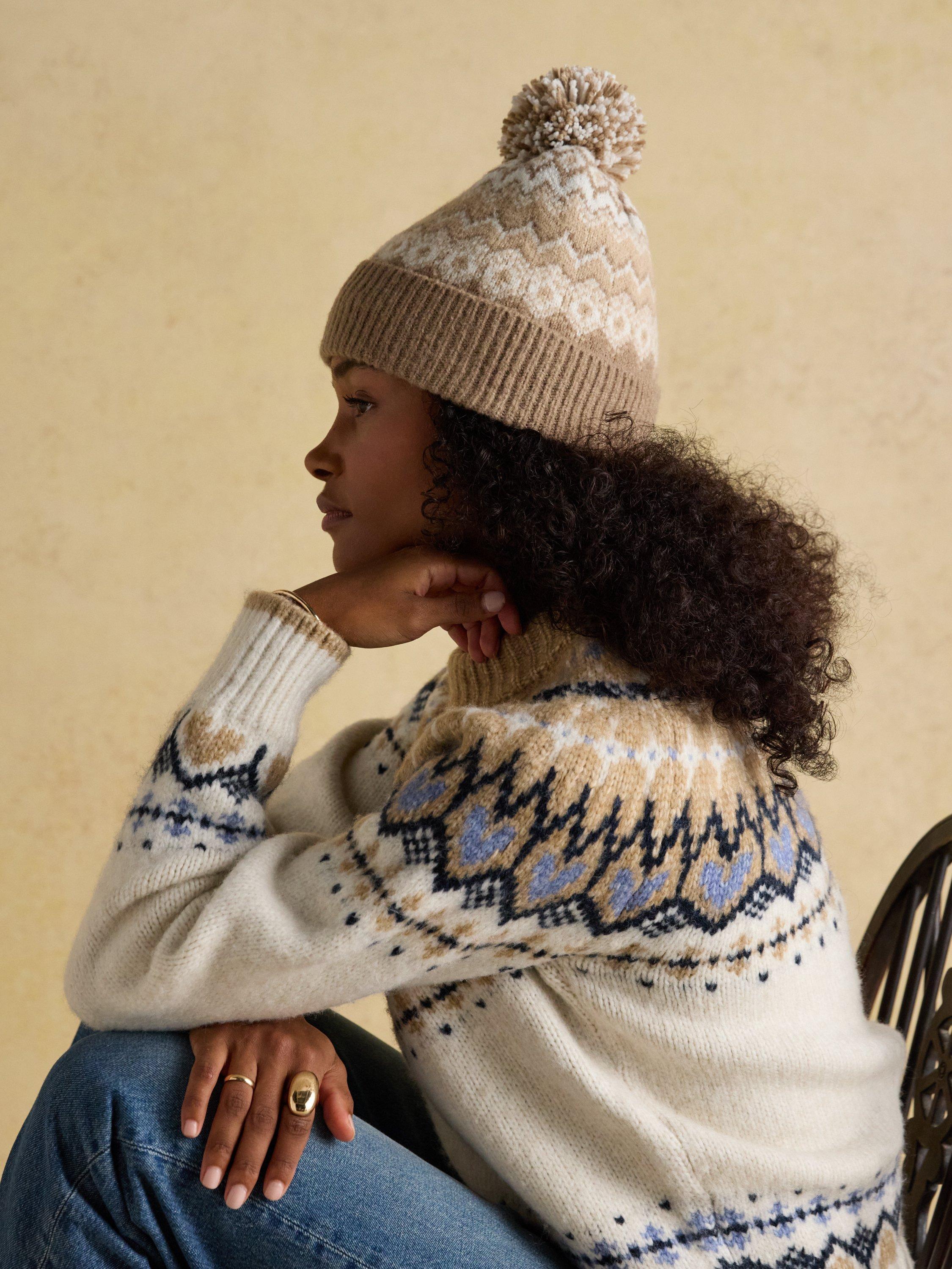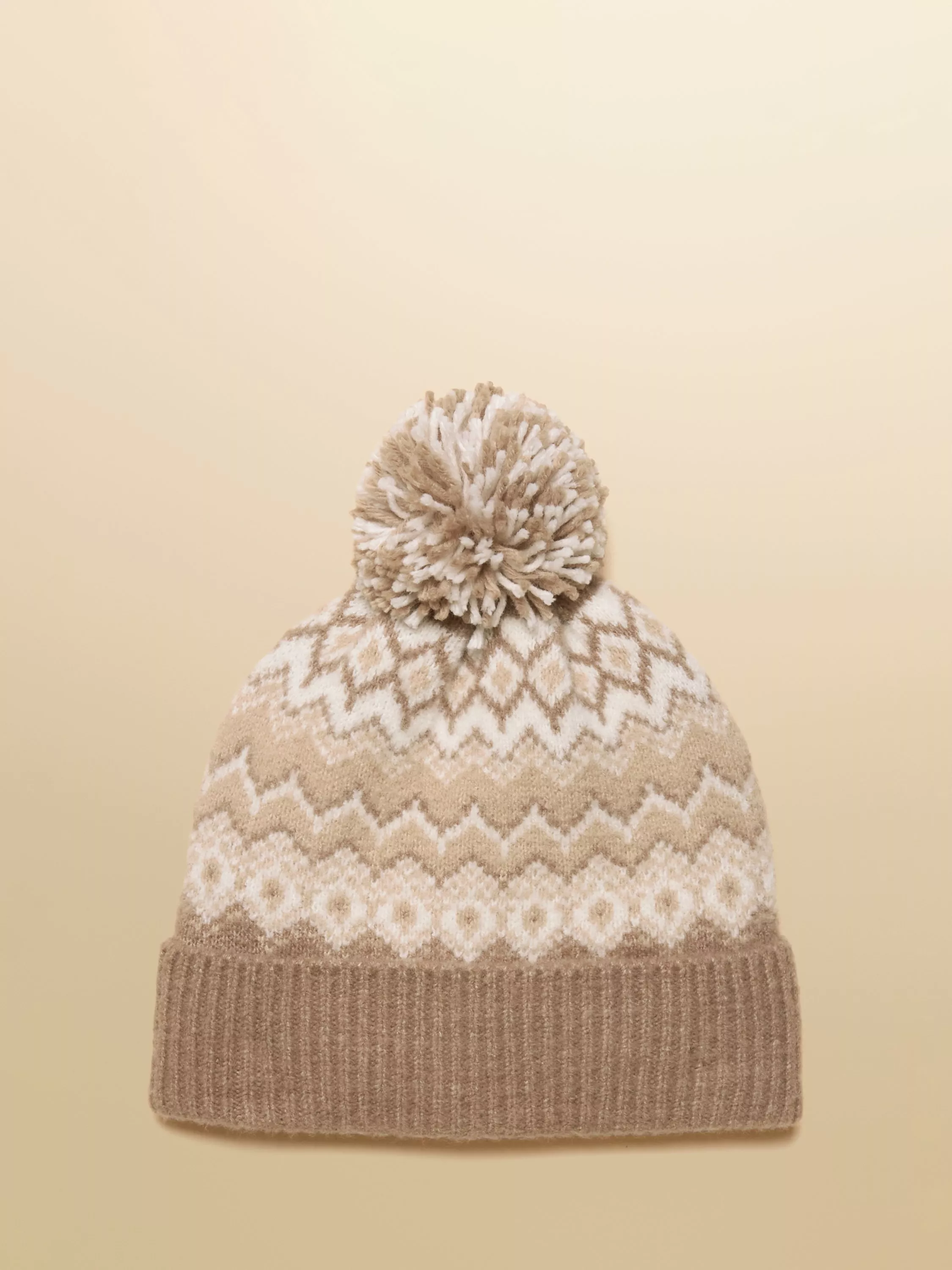 Introduce warmth into your wardrobe with the Kara bobble hat. A practical accessory that will look good too, it's the ultimate cold-weather style. It features a FairIsle pattern, a ribbed turnback cuff, a super soft lining, and is finished with a pom pom detail to the top.