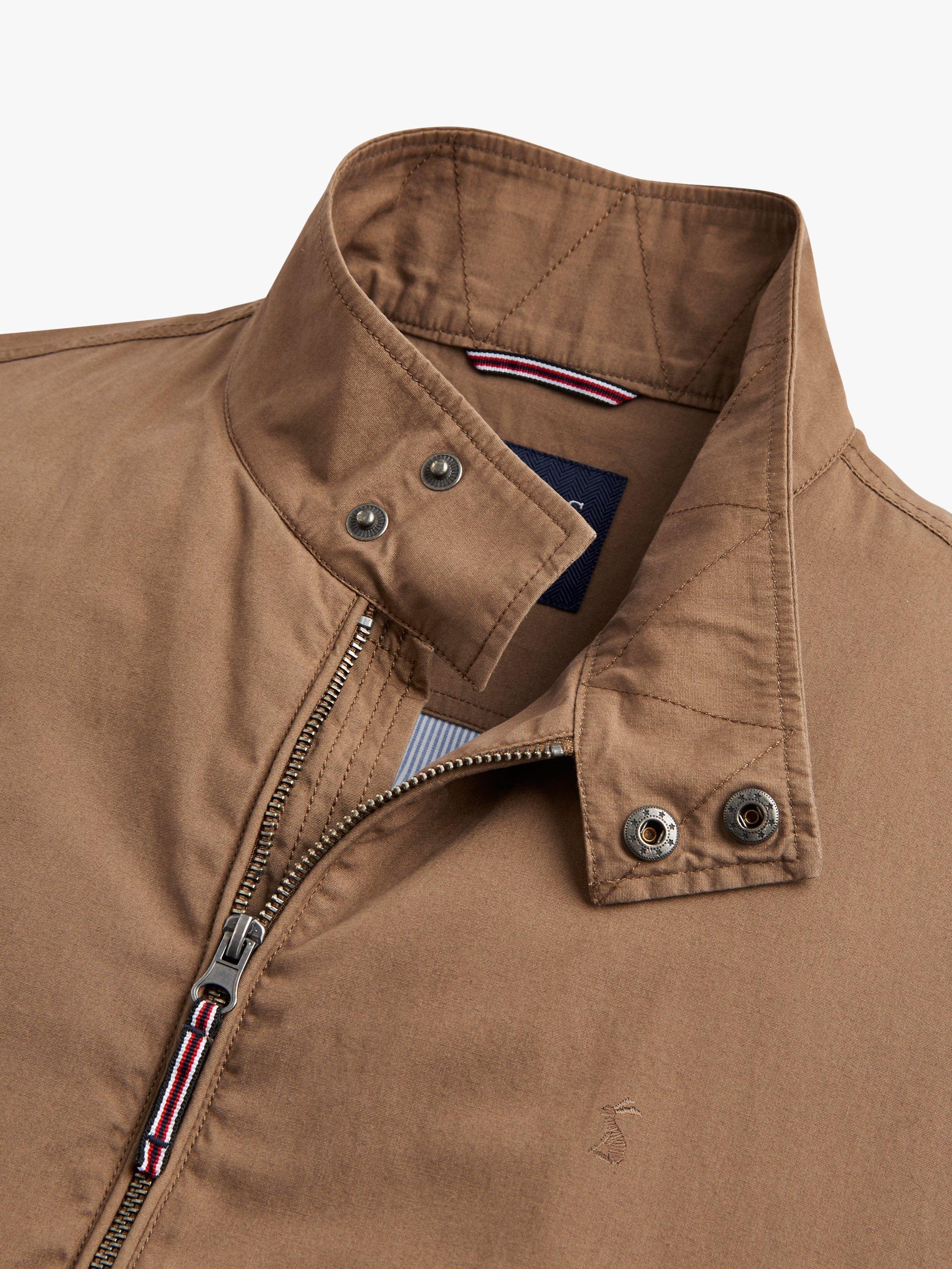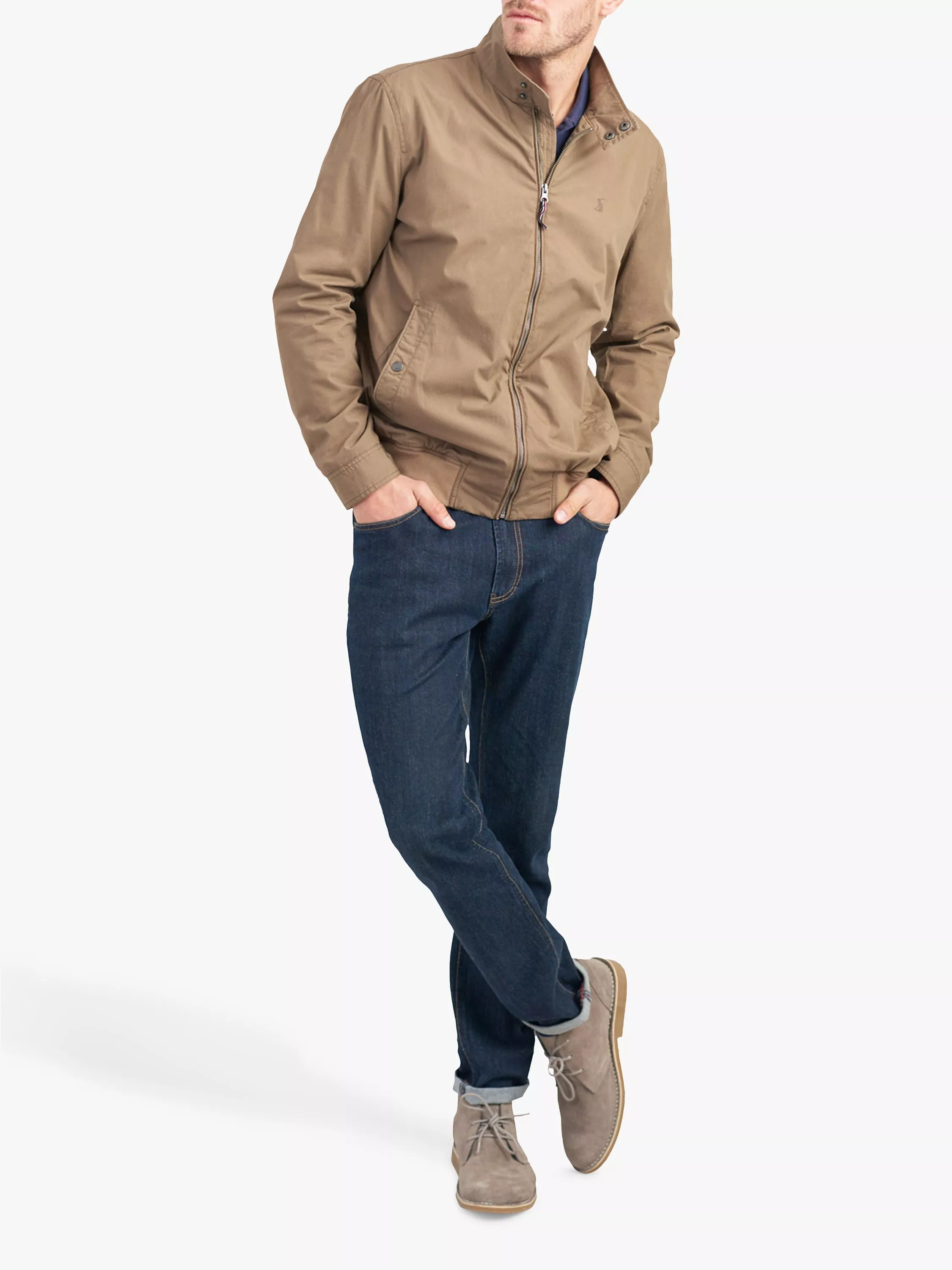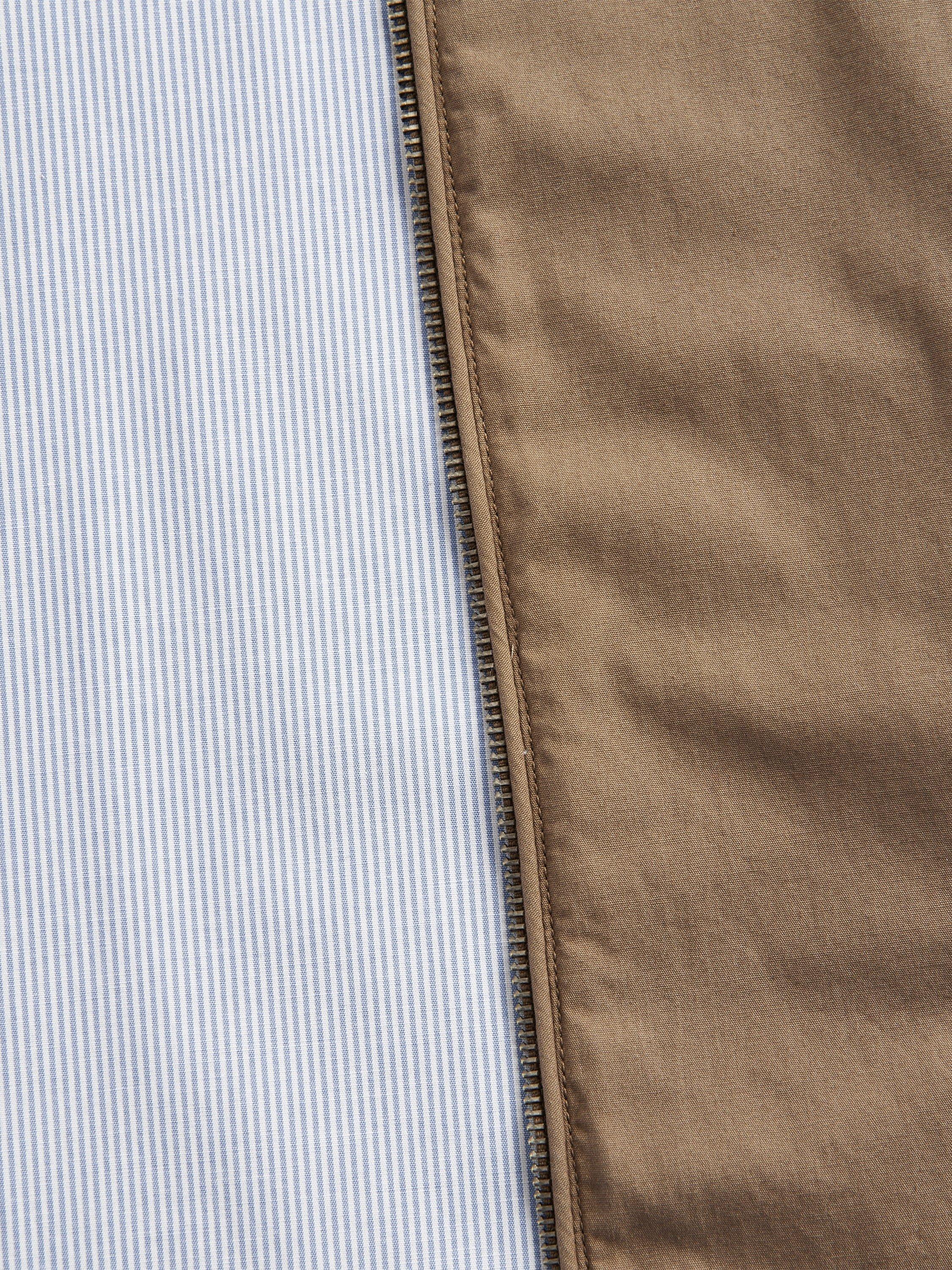 This Harrington style layer is crafted from soft pure peached cotton twill, offering a comfortable and lightweight option. It features an inside pocket, adjustable cuffs, a striped cotton Oxford lining and elasticated rib hem for a fitted structure.