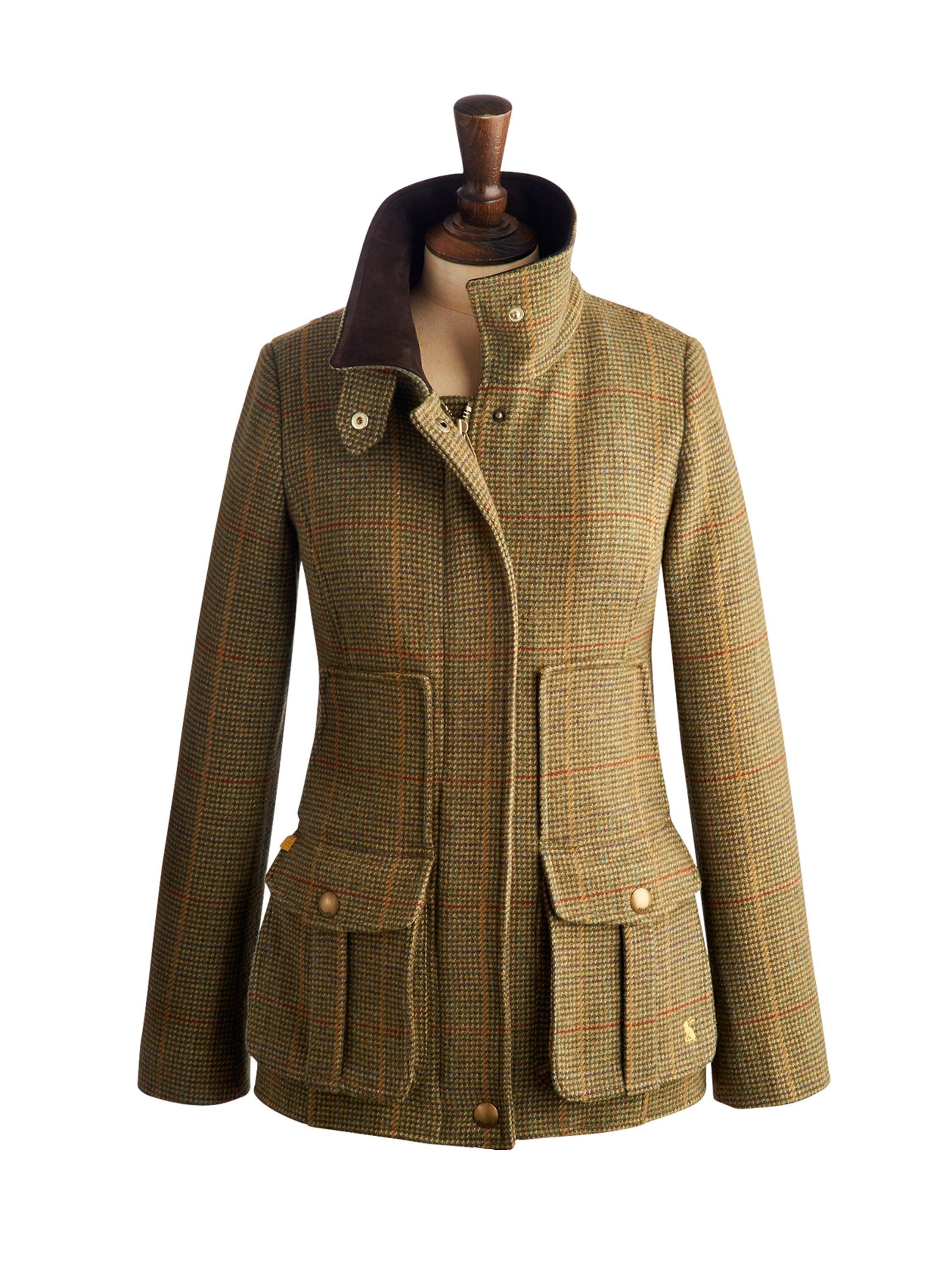 Ooze country charm in this wool-rich field jacket by Joules. Cut for a boxy fit, the elegant check style is smart yet practical. The jacket features large front patch pockets, tab fasten collar and button cuff.