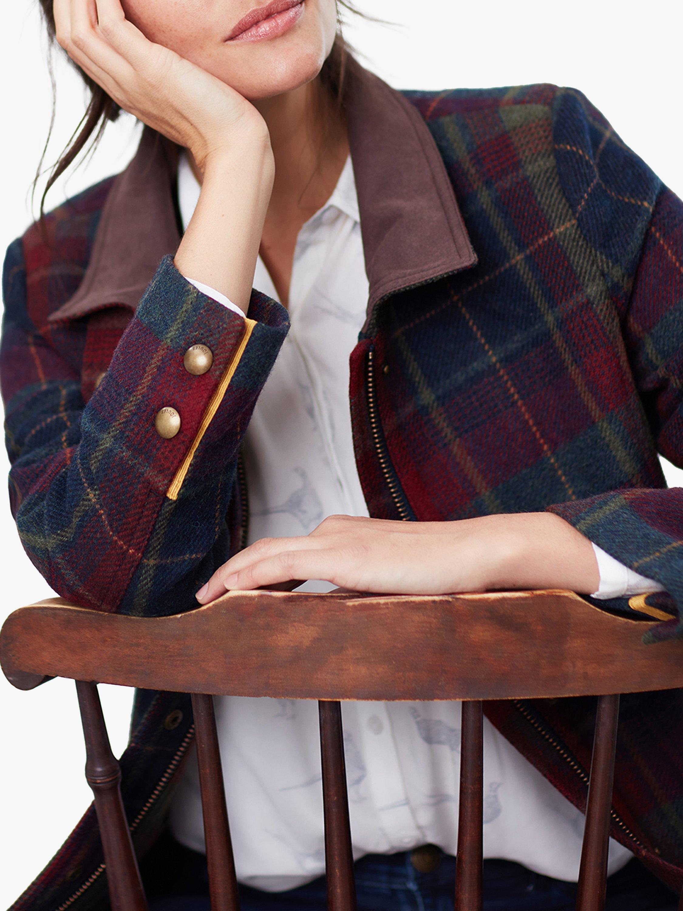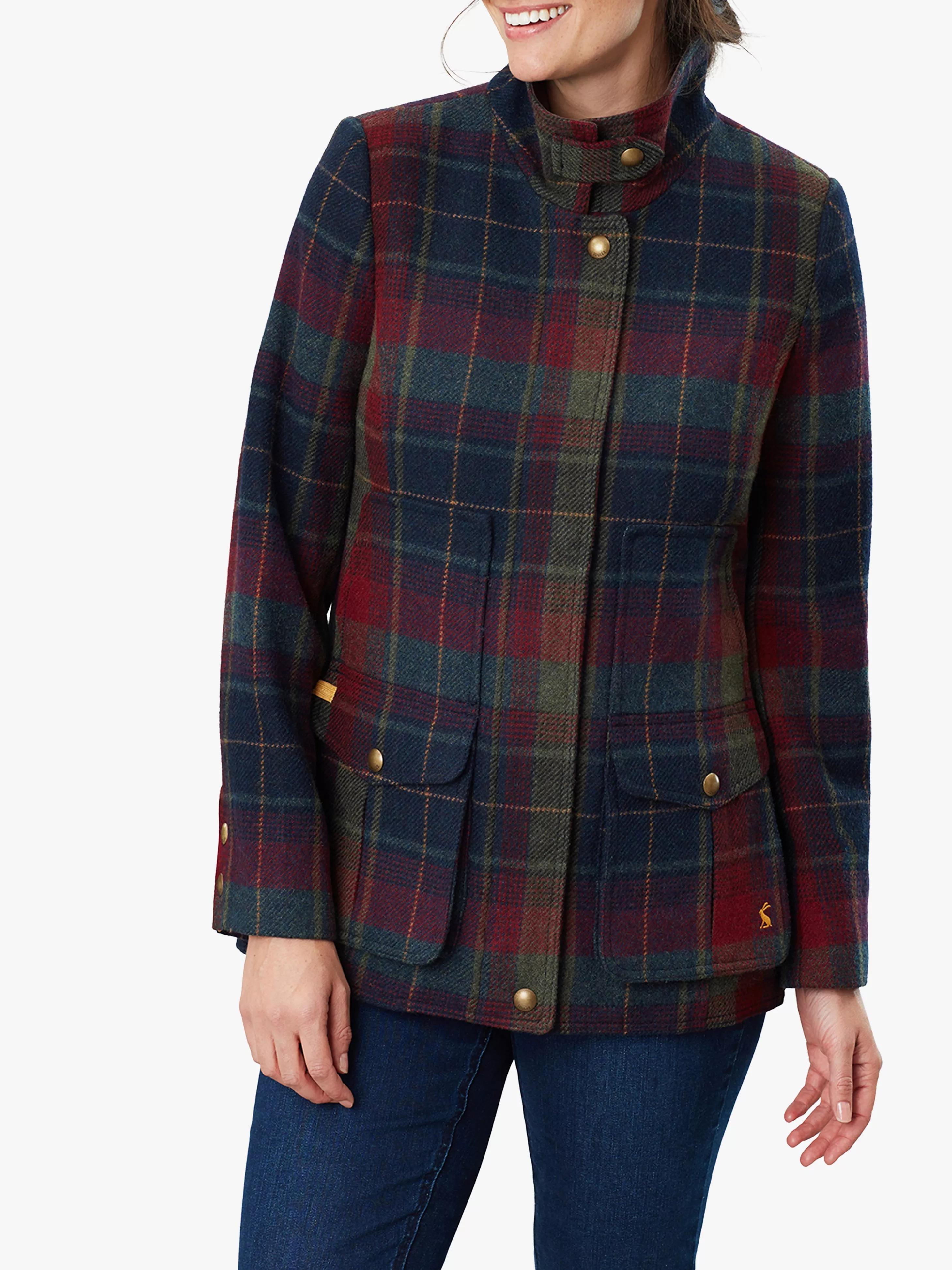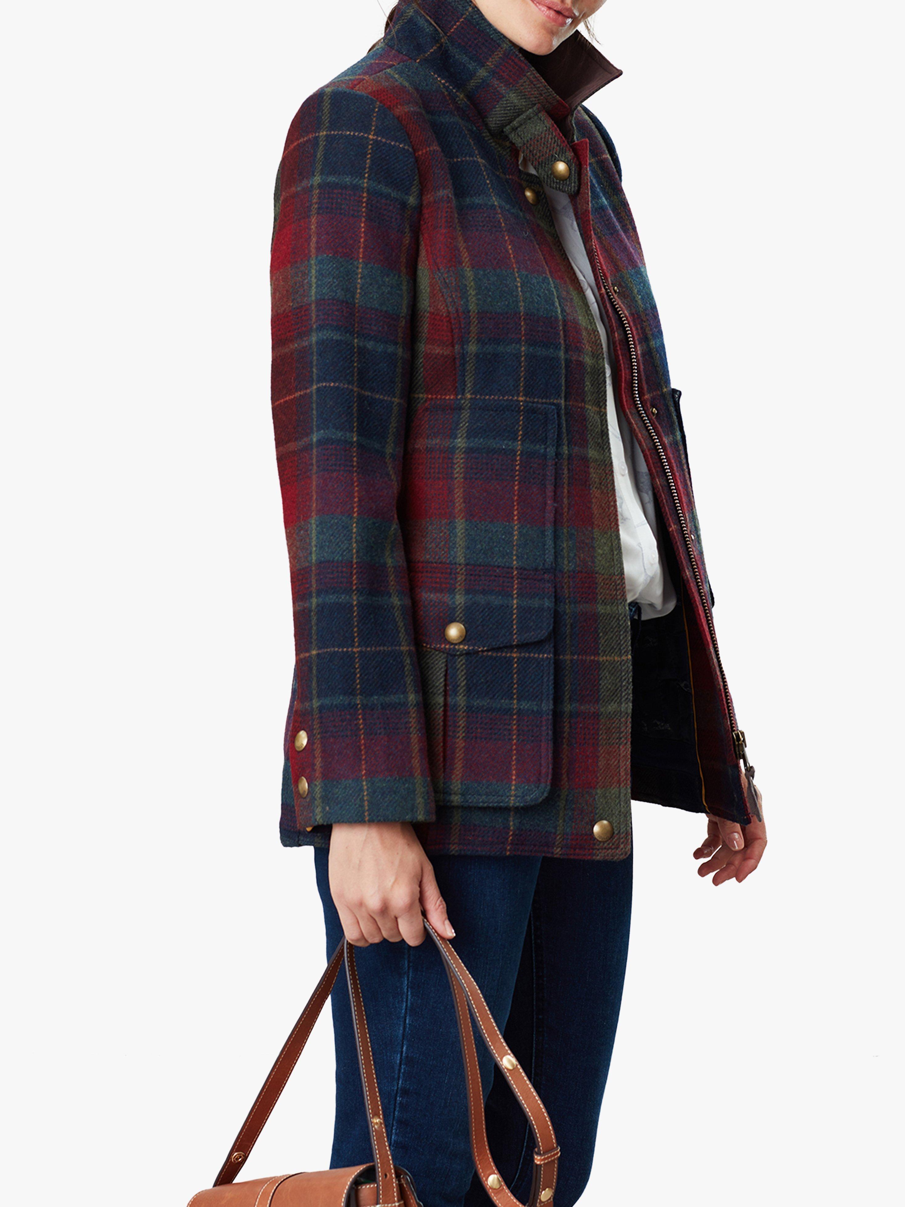 Update your outerwear collection with this Tweed Fieldcoat from Joules. Featuring bucket pockets with buttoned flaps, side angle pockets, a studded zip pull, and a stand-up collar to keep you warm, this jacket is sure to serve as an excellent layering piece.