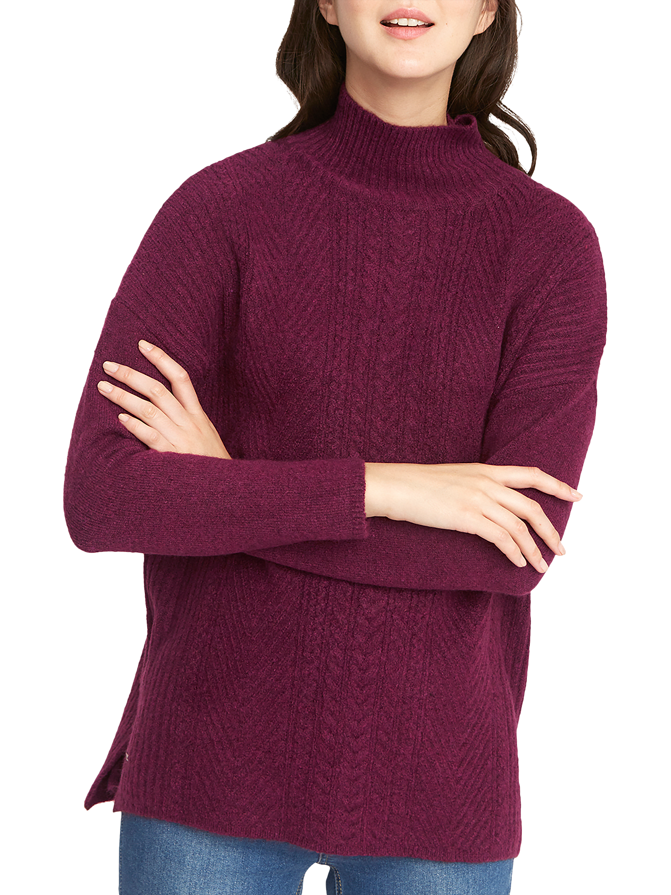 Made from a super-soft fabric blend with wool for added warmth, this jumper boasts a classic cable knit design with a funnel neck to keep you toasty all day. The relaxed fit and split at the sides give it a modern edge.