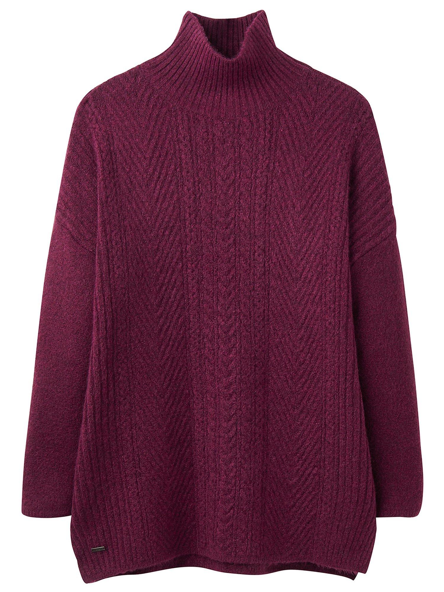 Snuggle up on chilly days with this Funnel Neck Cable Knit Jumper from Joules.