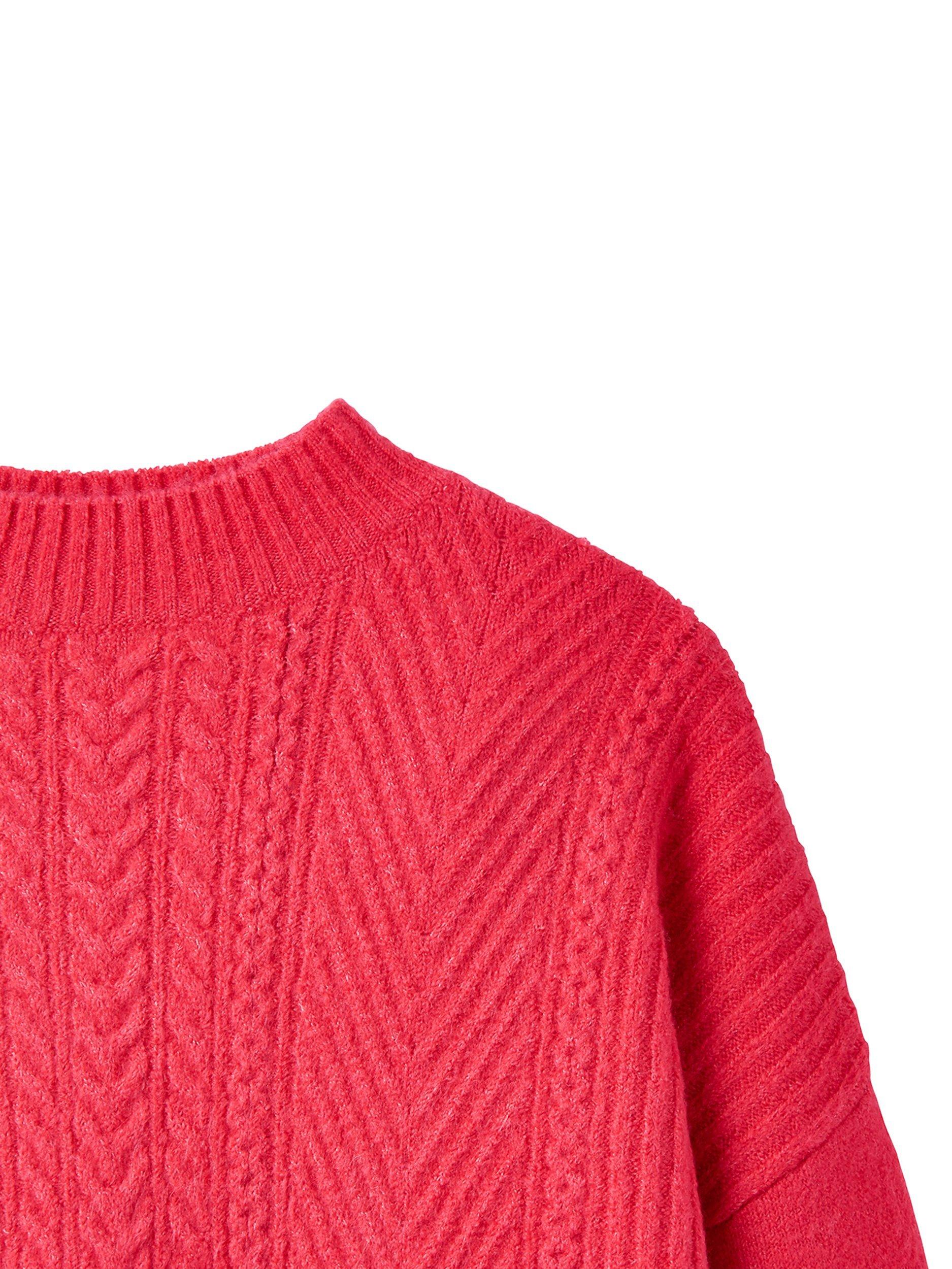 Made from a super-soft fabric blend with wool for added warmth, this jumper boasts a classic cable knit design with a funnel neck to keep you toasty all day. The relaxed fit and split at the sides give it a modern edge.