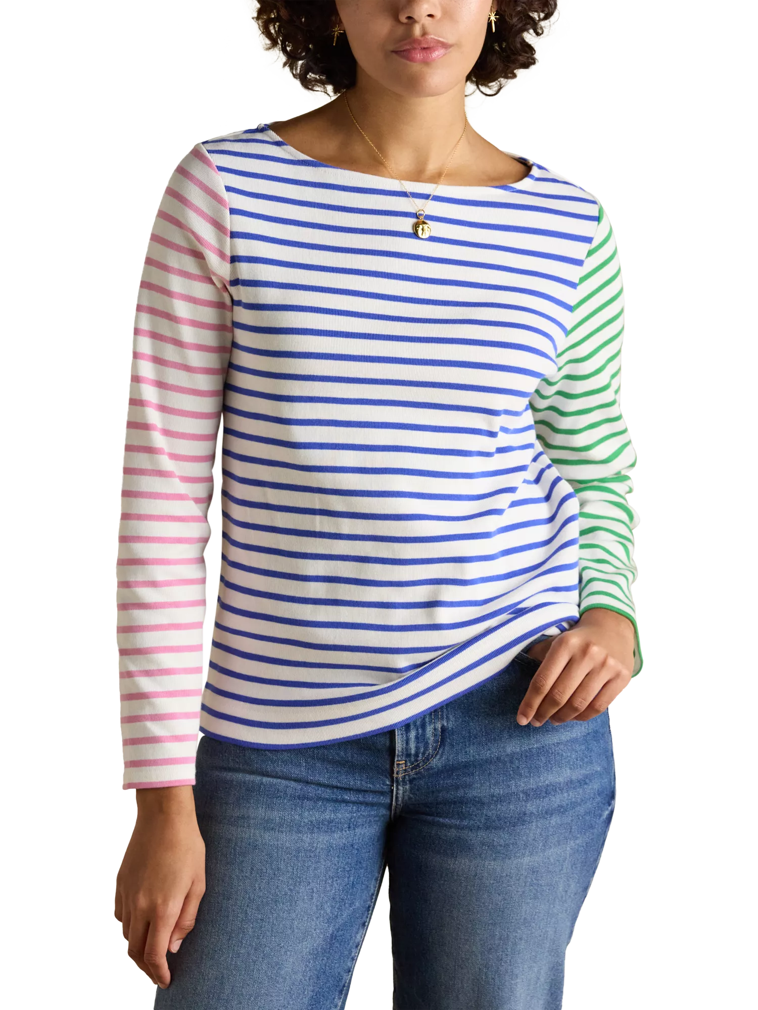 An essential jersey top by Joules, made from cotton for comfortable wear. With a boat neck and long sleeves, it's designed with neat stripes. A great piece for everyday.