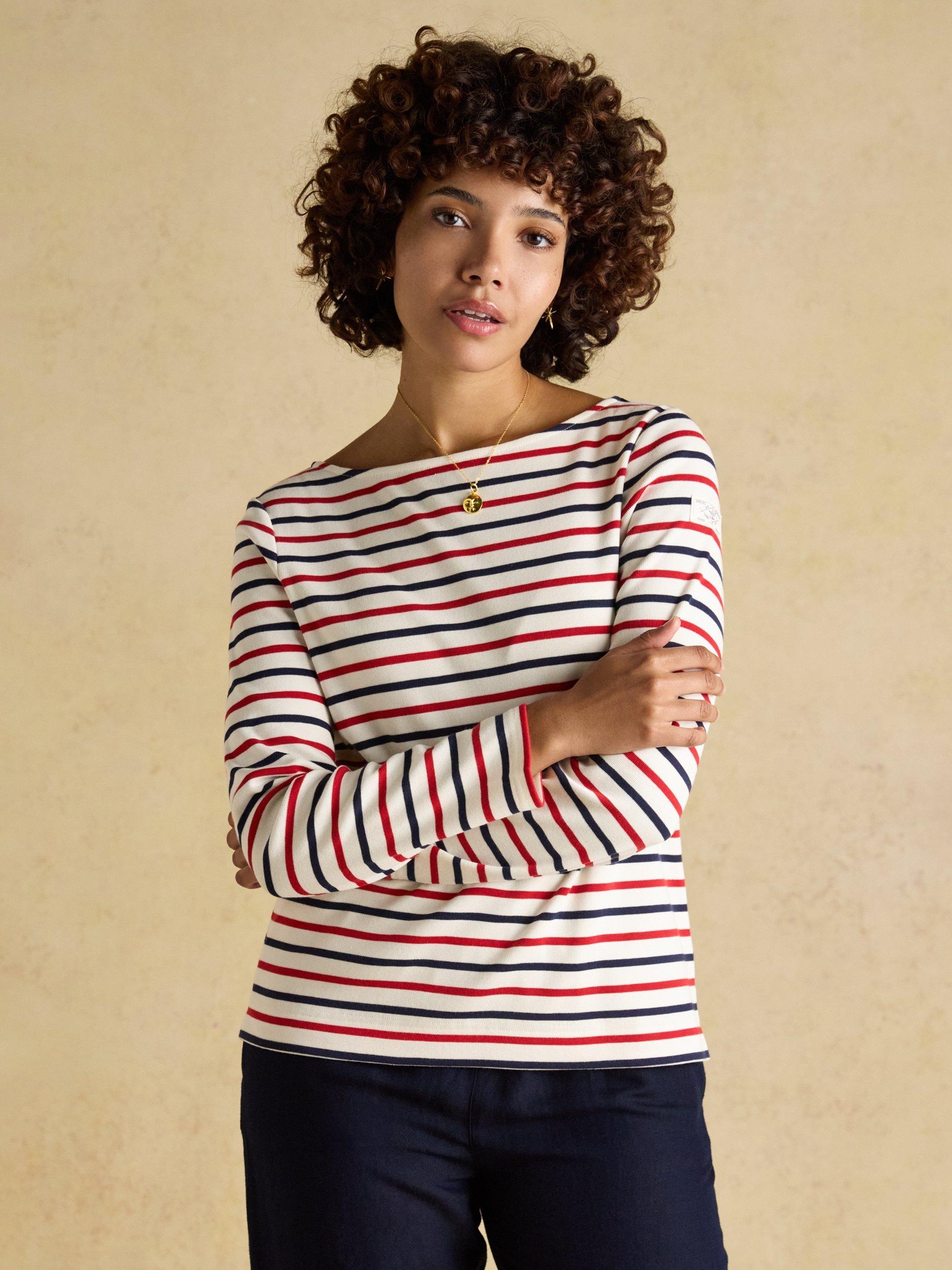 The classic relaxed fit Harbour embodies a wealth of heritage. The striped Breton shirt is a statement piece that’s evolved over time. Once worn by sailors in Brittany, favoured by creatives and loved by style icons. Today it continues to be a legendary style. So, what's new? The fabric is now a heavier-weight cotton jersey that feels supremely soft to the touch and it has a wider boat neck. It is completed with a Joules Mariner's Grade badge on the sleeve that gives it a nautical nod and is another mark of its quality. Its versatility makes it perfect for building multiple looks around.