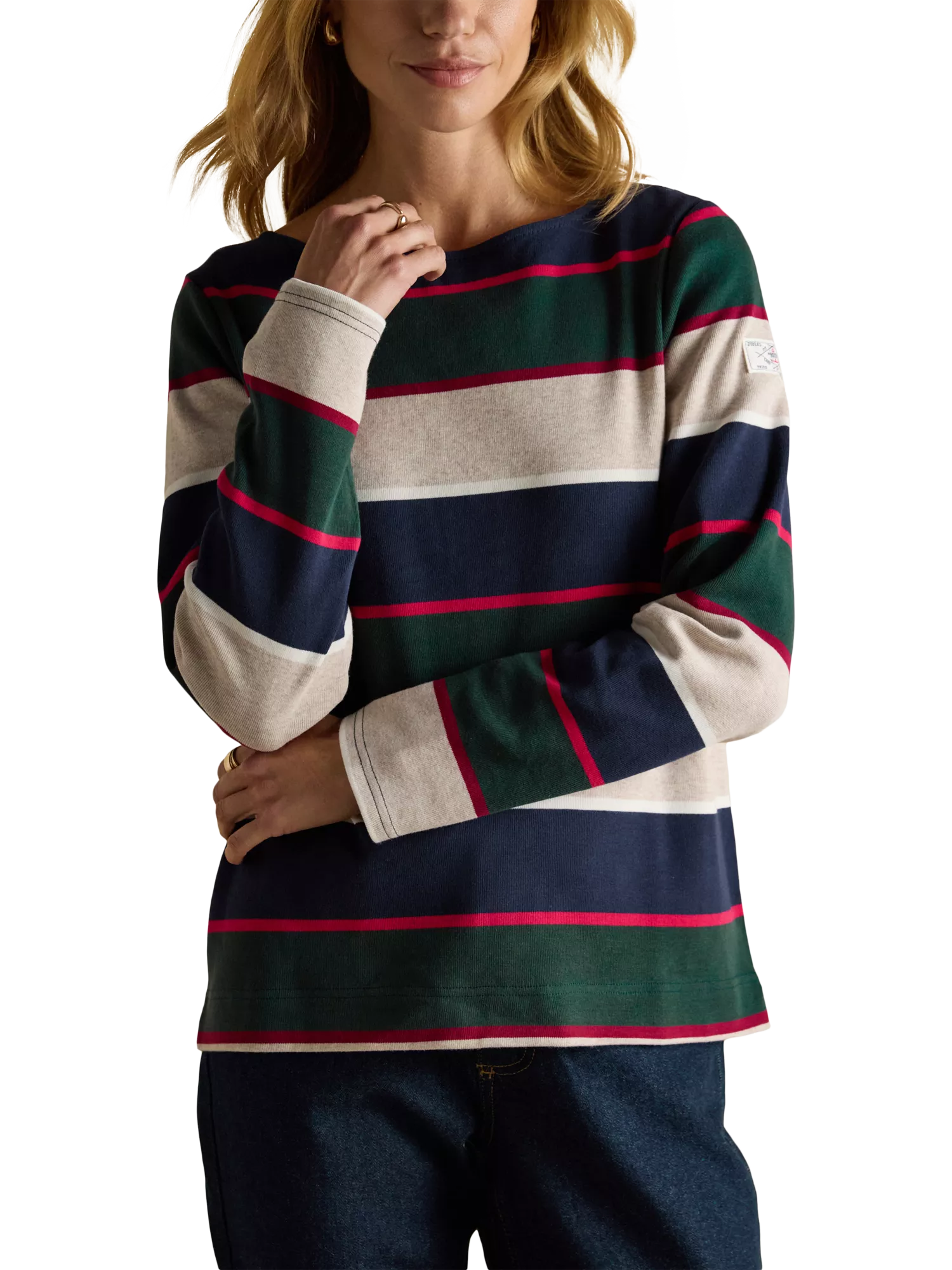 The Harbour top is an iconic style that is unmatched in its fit, fabric and finish. Classic stripes add a timeless touch and make it a piece that can move from one season to the next. The heavyweight cotton fabric is of premium quality that's built to last and has a fine ribbed texture that adds slight stretch through the arms and body. Designed to make you feel (and look) great, it has a flattering boat neckline and an effortless, relaxed fit. A Joules Mariner's Grade badge to the sleeve gives it a nautical nod and is another mark of its quality. Its versatility makes it perfect for building multiple looks around.