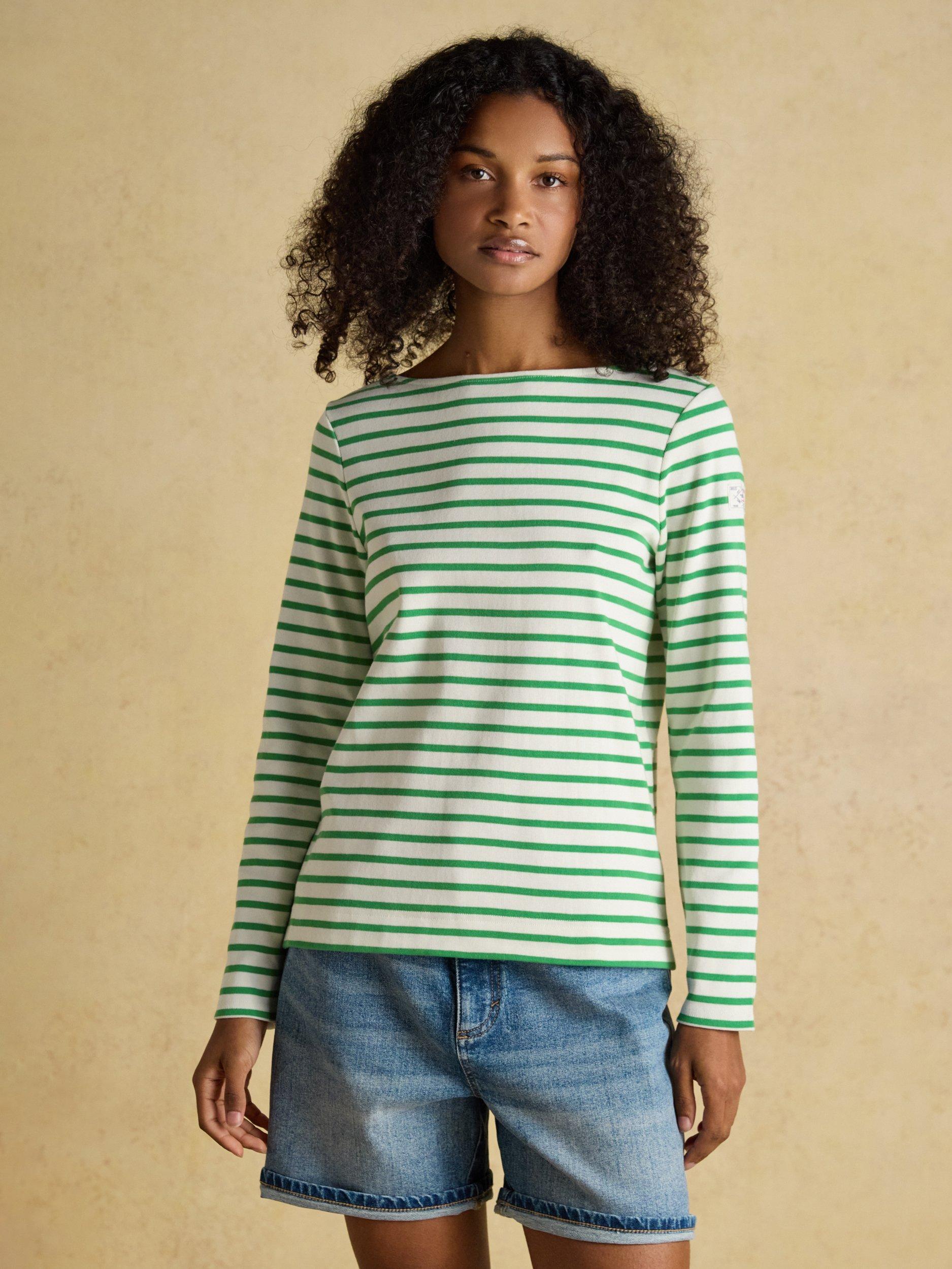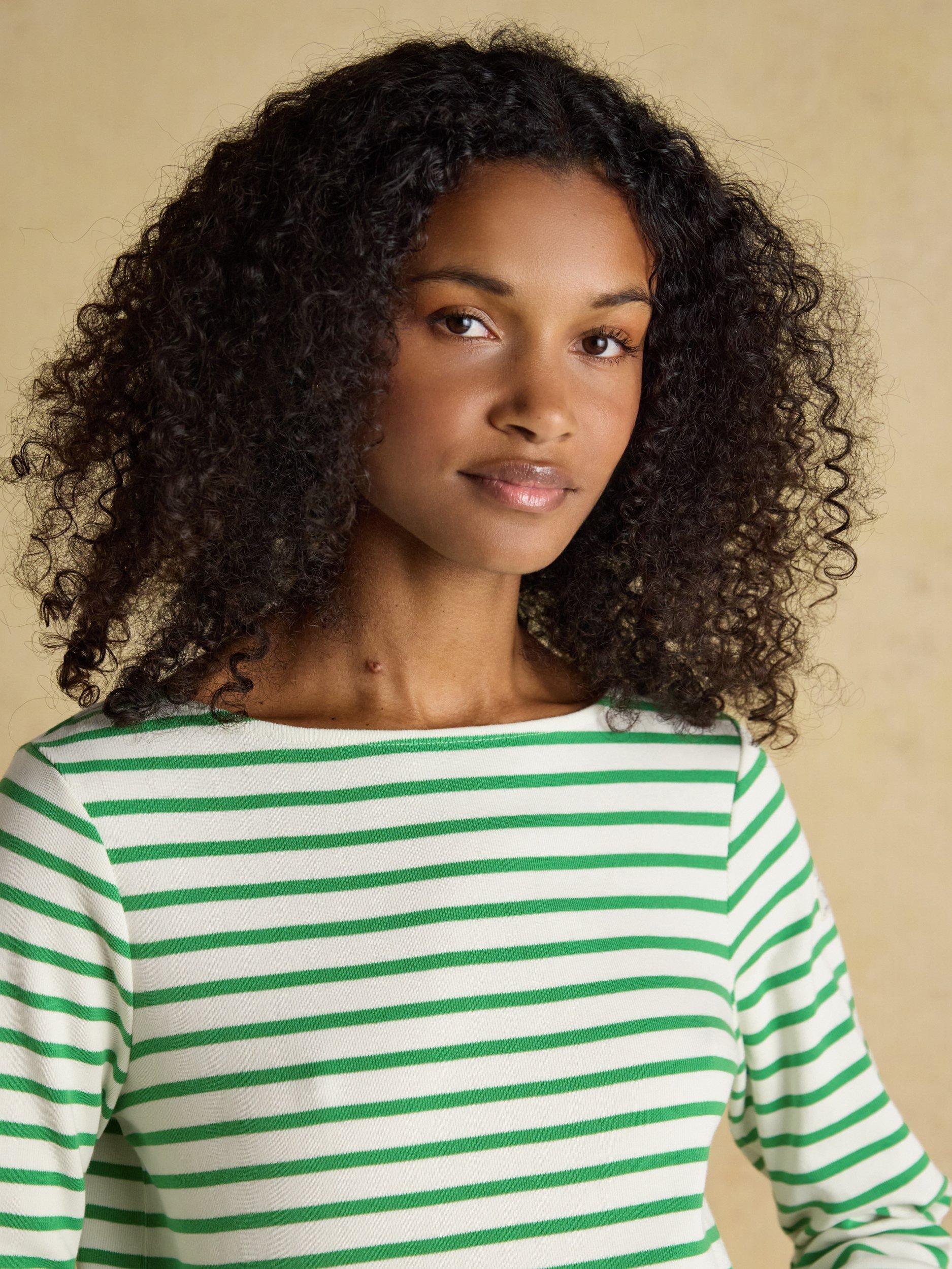 The classic relaxed fit Harbour embodies a wealth of heritage. Always on a mission to enhance their pieces, Joules have updated the fabric and elevated the fit to create a better-than-ever Harbour you can truly depend on. The striped Breton shirt is a statement piece that’s evolved over time. Once worn by sailors in Brittany, favoured by creatives and loved by style icons. Today it continues to be a legendary style. So, what's new? The fabric is now a heavier-weight cotton jersey that feels supremely soft to the touch and it has a wider boat neck. It is completed with a Joules Mariner's Grade badge on the sleeve that gives it a nautical nod and is another mark of its quality.
