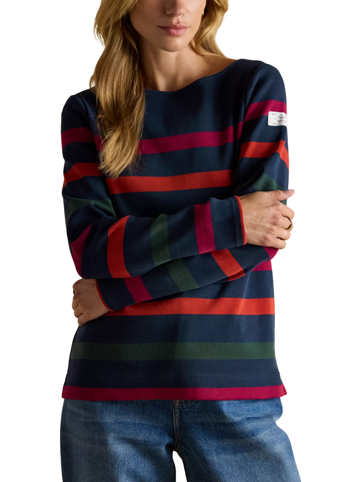 The Harbour top is an iconic style that is unmatched in its fit, fabric and finish. Classic stripes add a timeless touch and make it a piece that can move from one season to the next. The heavyweight cotton fabric is of premium quality that's built to last and has a fine ribbed texture that adds slight stretch through the arms and body. Designed to make you feel (and look) great, it has a flattering boat neckline and an effortless, relaxed fit. A Joules Mariner's Grade badge to the sleeve gives it a nautical nod and is another mark of its quality. Its versatility makes it perfect for building multiple looks around.