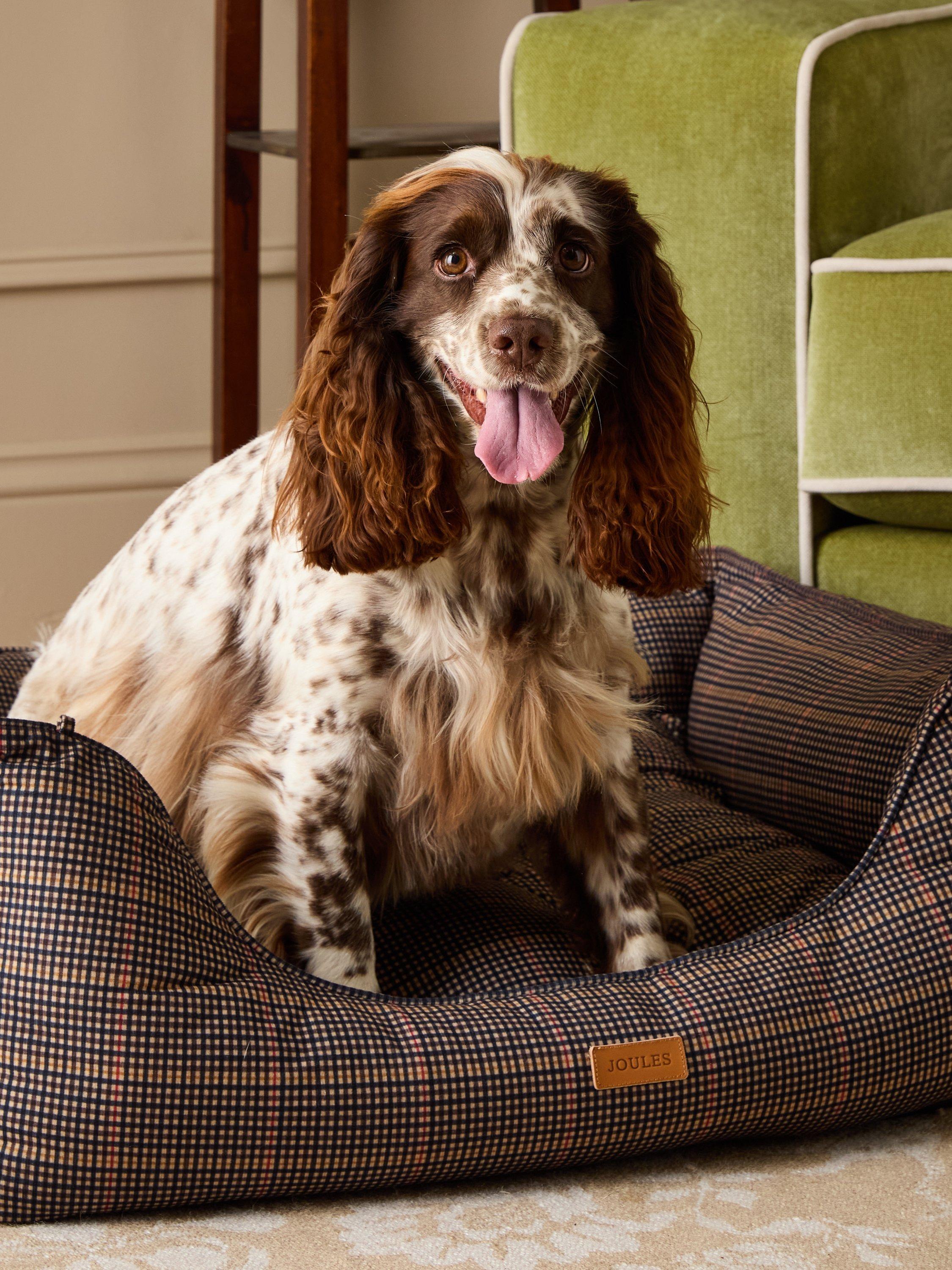 Let sleeping dogs lie in this heritage-inspired printed dog bed. This box bed is designed with your dog's comfort in mind. Featuring thickly padded sides on all sides, this bed will provide warmth and comfort to all four legged friends. Furthermore this bed has a reversible inner cushion, one side is the same hardwearing canvas as the rest of the bed, whilst the other side is a cosy soft Brown plush. With a non-slip base to prevent the bed from skidding whilst your pet wiggles, your furry friend is sure to get a great nights (or morning, or even afternoon) sleep.