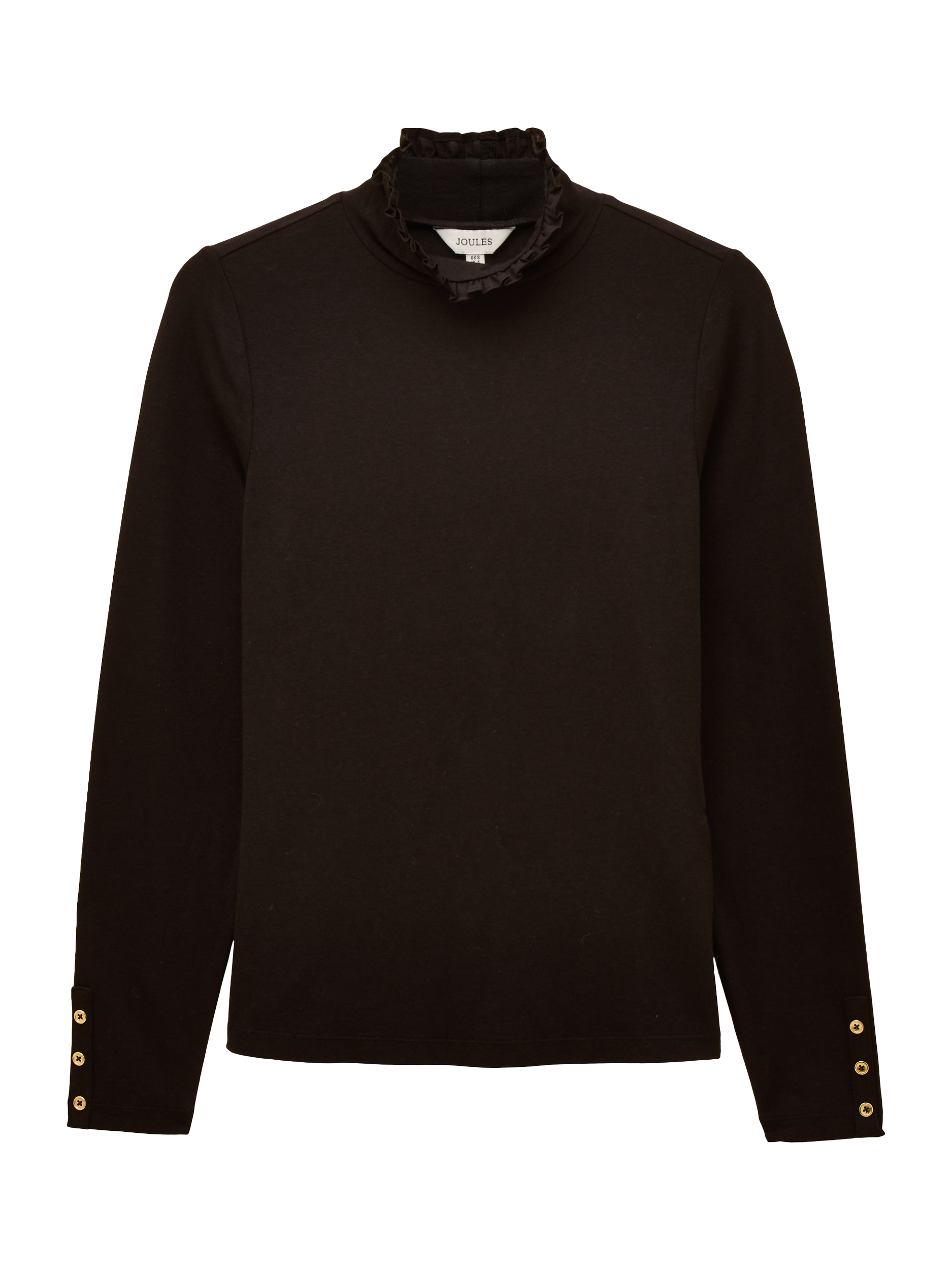 With a slim fit that hugs the body, the Amy jersey roll neck is the perfect base layer to build your outfits around. The long sleeves feature gold-toned accent buttons and the neck is trimmed with a woven frill.
