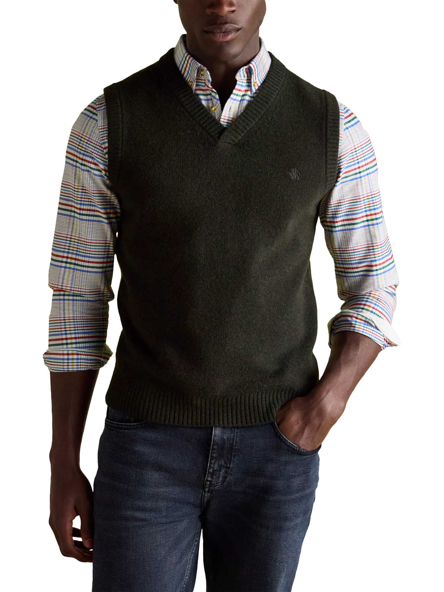 The Highland tank is a smart layering piece that would look perfect over a shirt and under a jacket. Crafted from a wool-rich fabric that's supremely soft, it's designed with a v neck, no sleeves and ribbed trims, making it an ideal alternative to the classic pullover.
