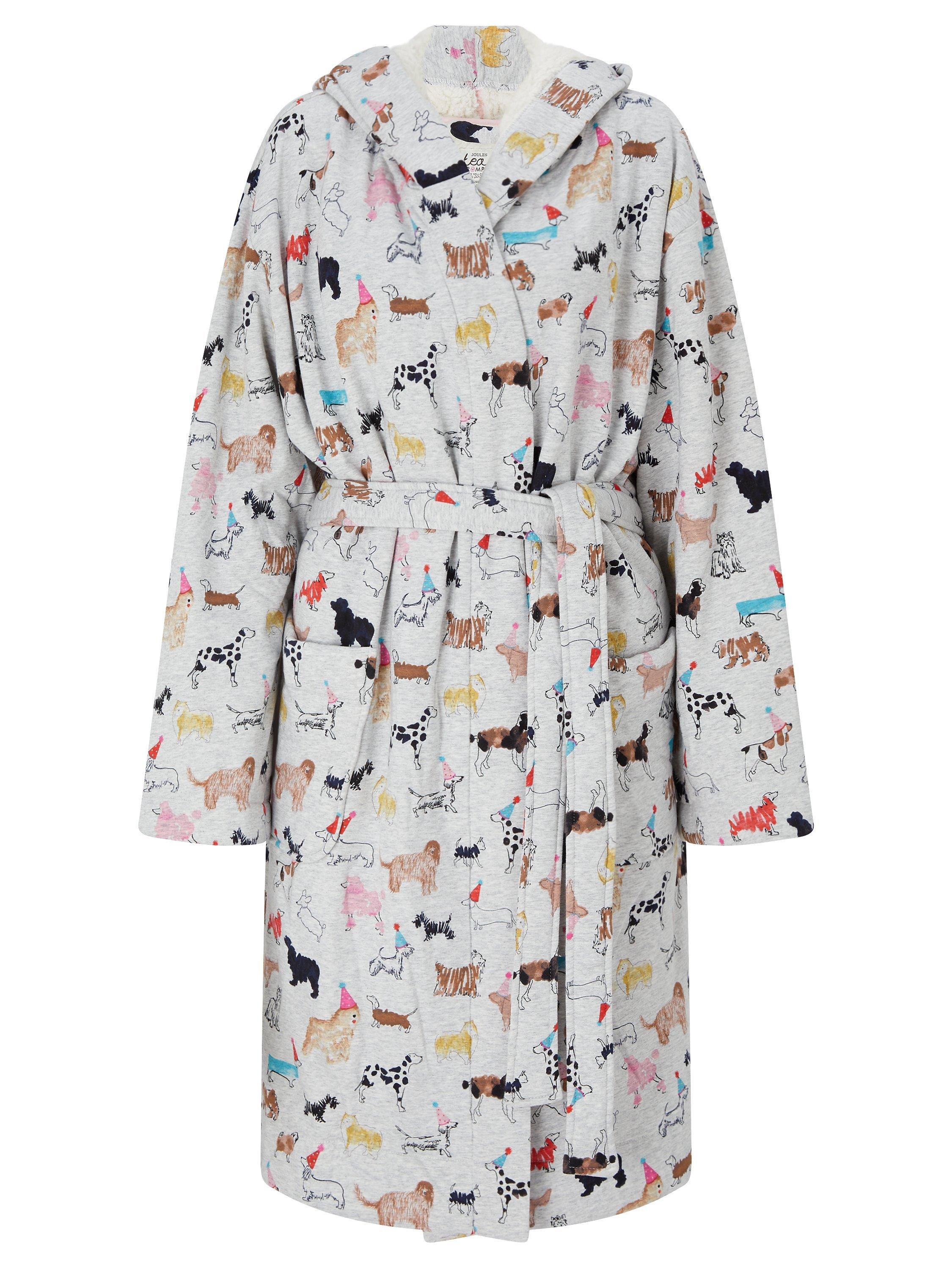 JoulesIdlewhile Party Dog Fleece Lined Dressing Gown, Grey/Multi