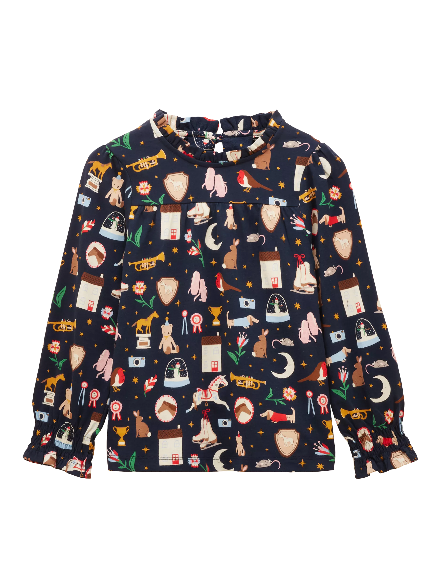 This is the perfect piece to add into your little girl's wardrobe. The Flutter top is crafted from 100% cotton, and features a beautiful hand-drawn print that's scattered across the entire design. The sleeves are airy and long with smocking at the cuffs and it follows a classic neckline that frames the style. To finish, it's adorned with feminine frill trims and fastens at the back with a keyhole button.