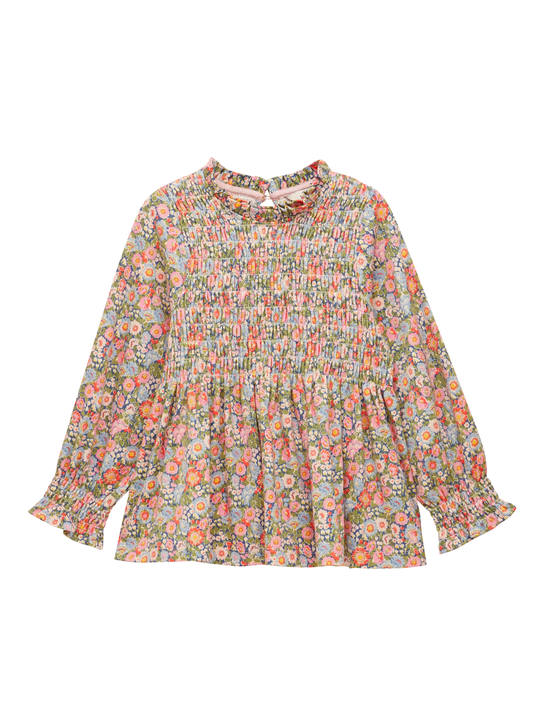 Long sleeve ditsy print jersey top, designed with a crew neck, shirred detail on the chest, and elasticated cuffs. Crafted from 100% breathable cotton.