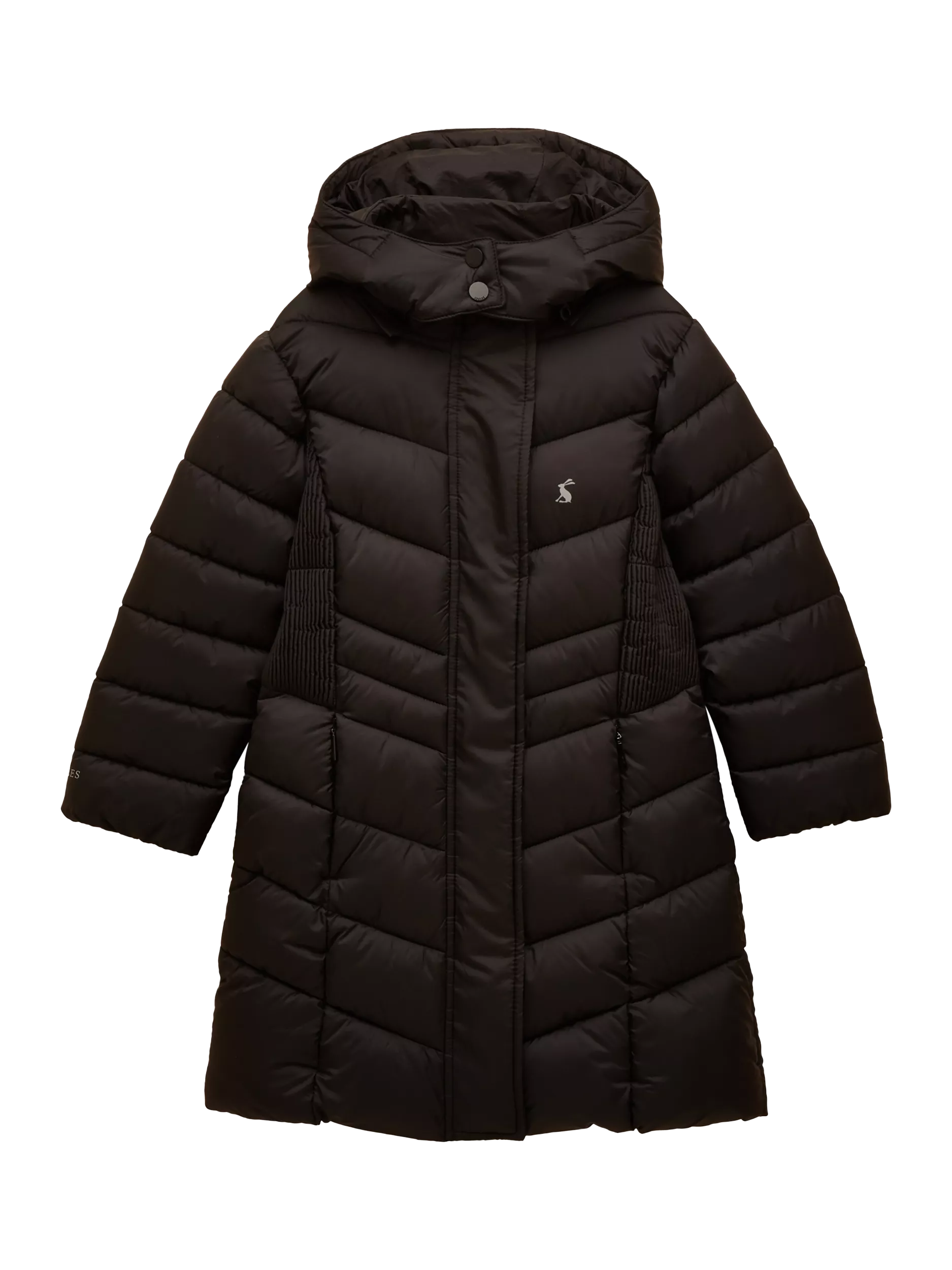 This is Joules' well-loved women's Pembury coat, in a smaller size for your little one. It's crafted from a showerproof fabric to a longline profile, featuring warm padding, shirred side panels, a zip-off hood and reflective branded detailing. This piece is the perfect protective layer they'll wear all the time, for school, a trip to the park or playing in the garden.