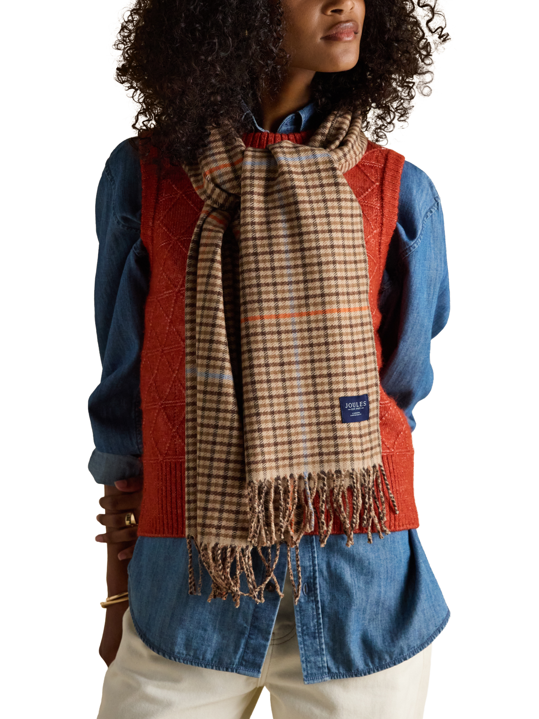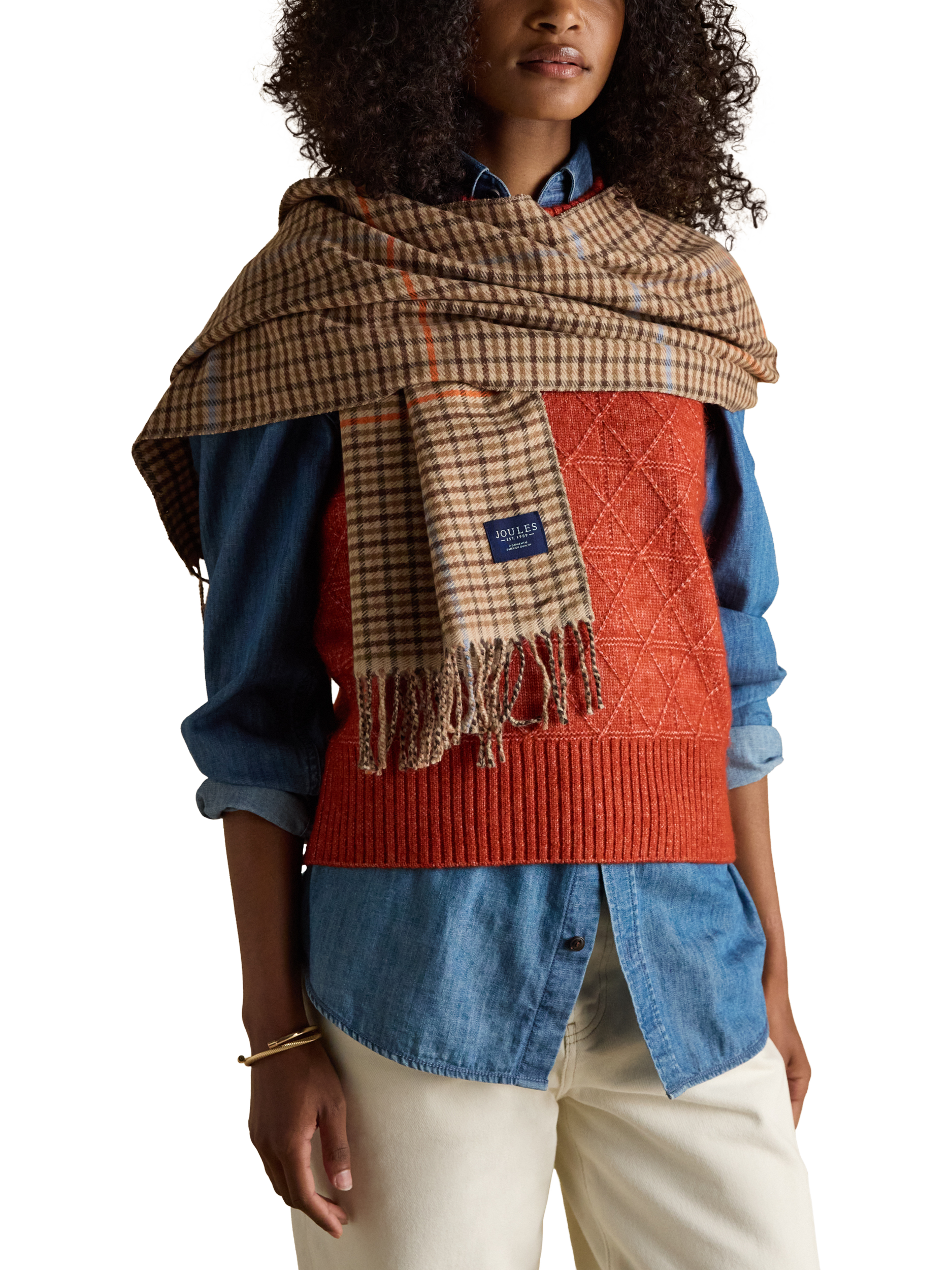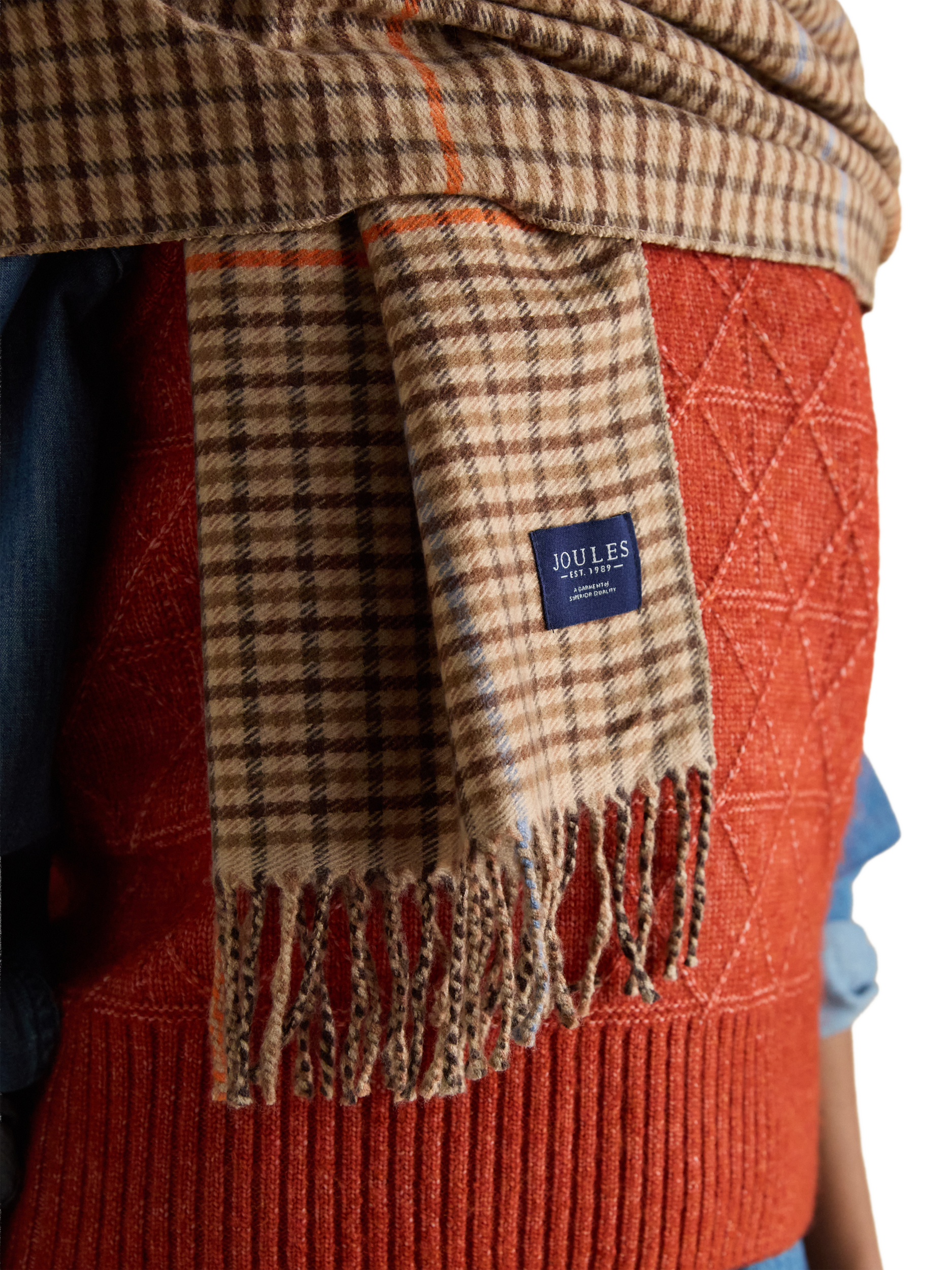 The perfect accessory to complete your ensemble, this scarf from Joules pays testament to British heritage with its timeless check print.