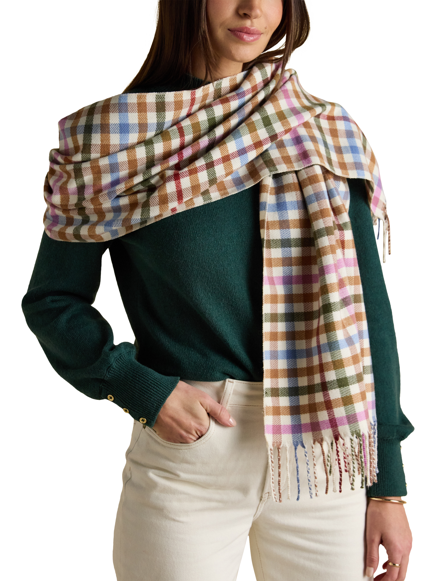 The Langtree scarf is a much-loved style back for another season. In a new line-up of checks, this essential cold-weather accessory is loved for its soft-against-the-skin feel, endless styling options and traditional tasselled detailing.