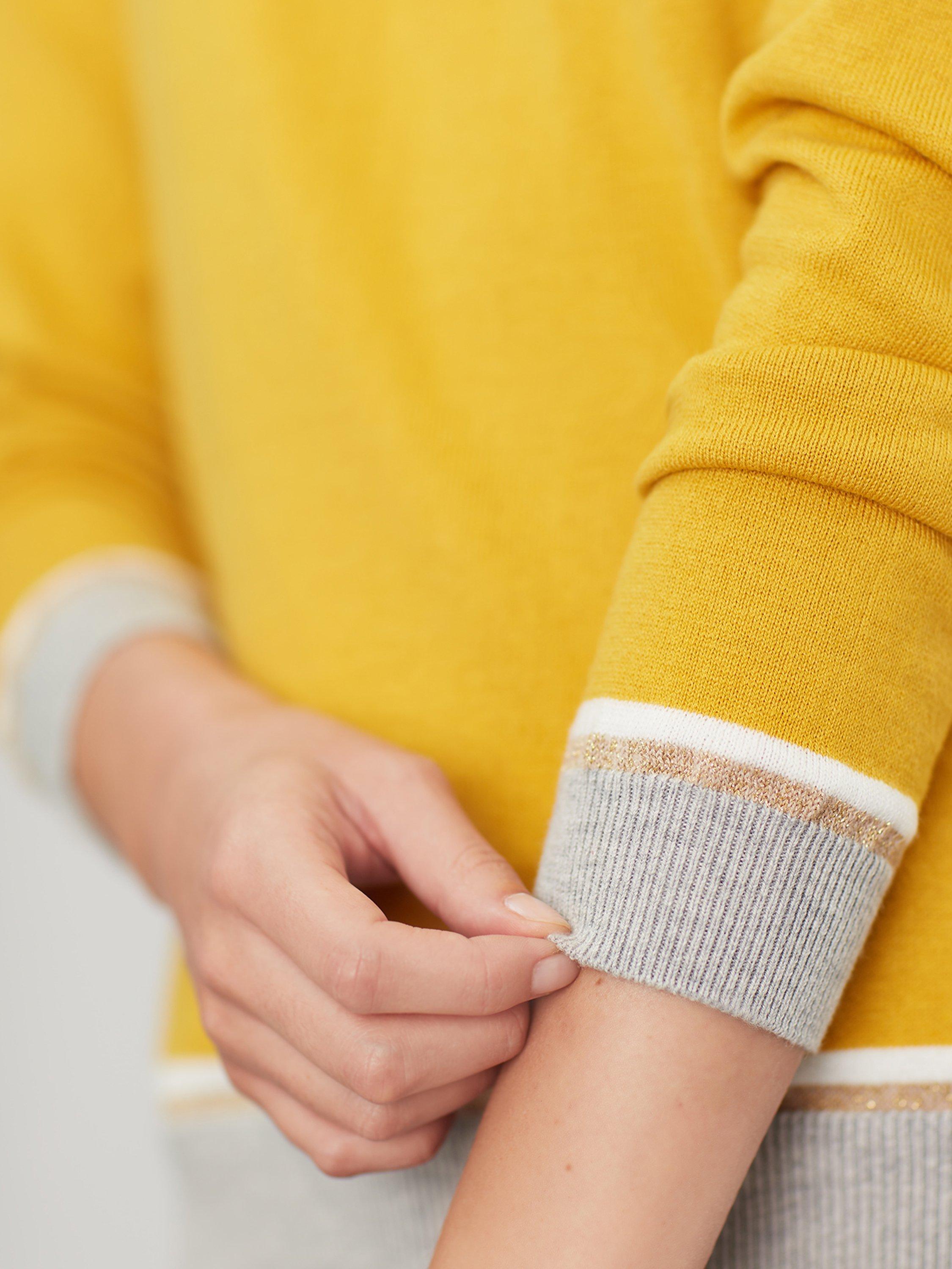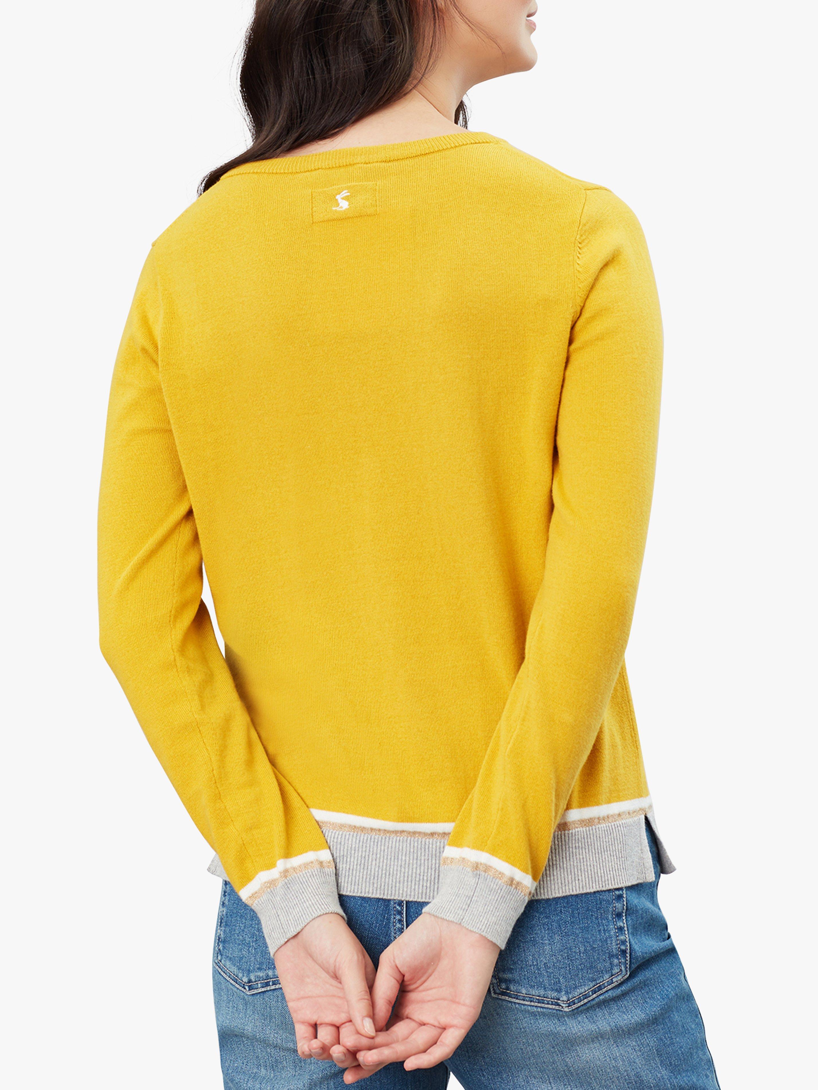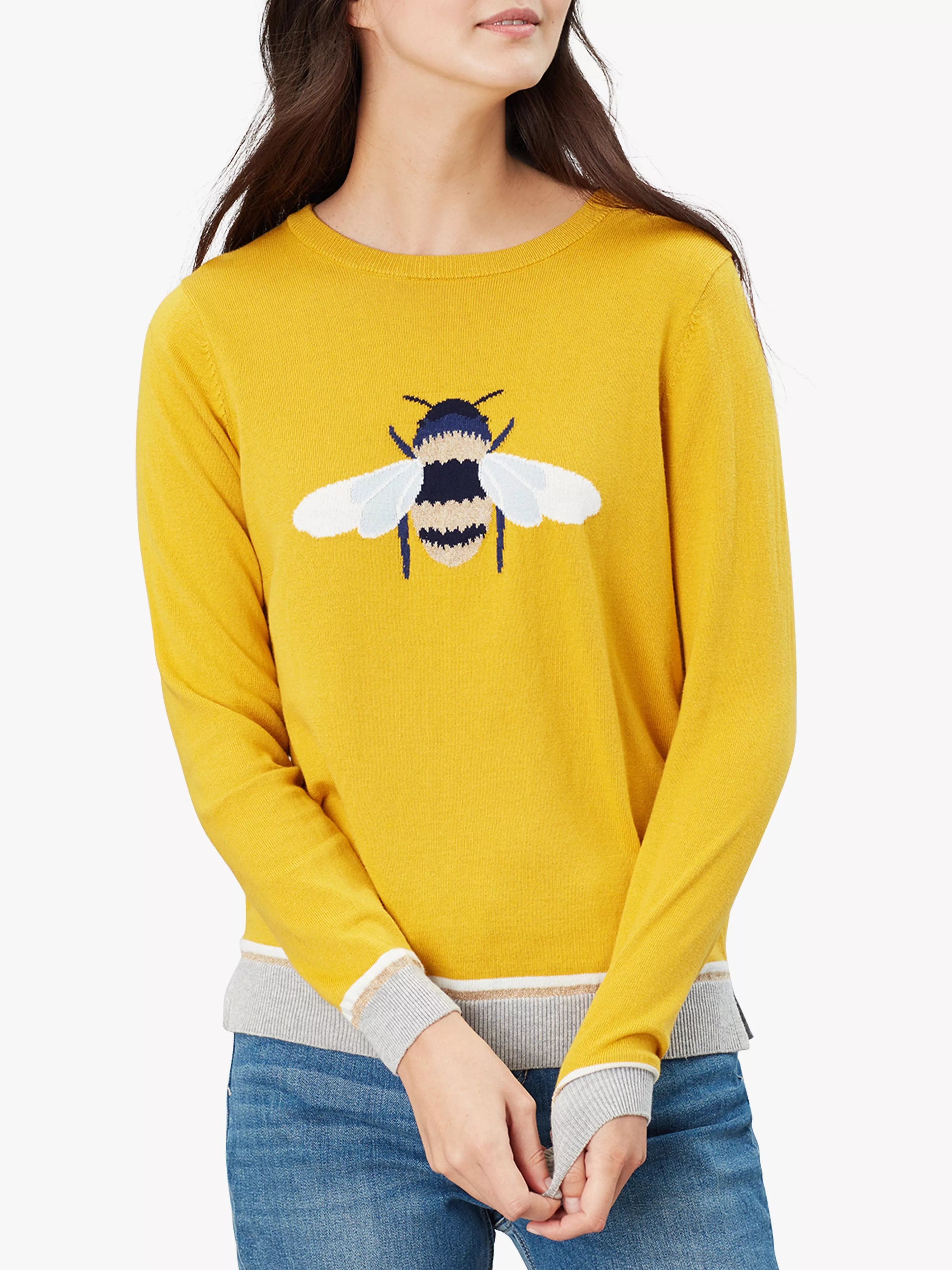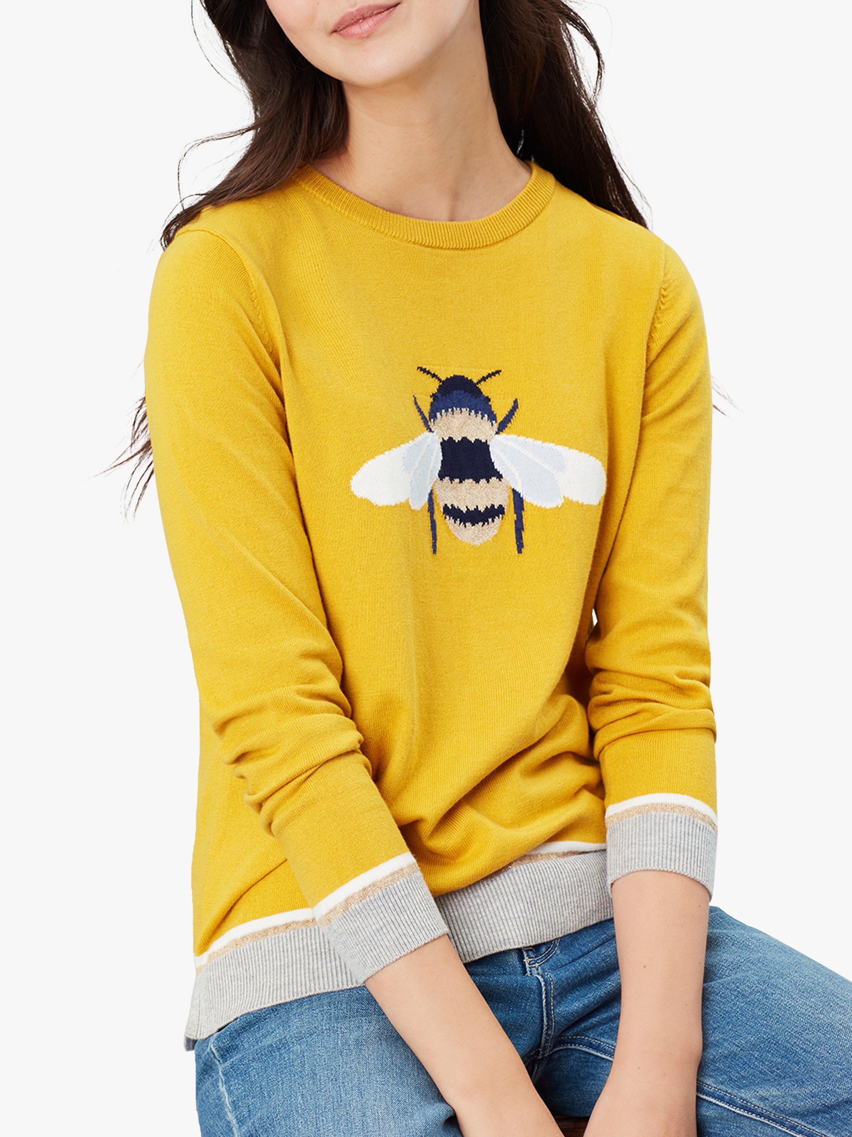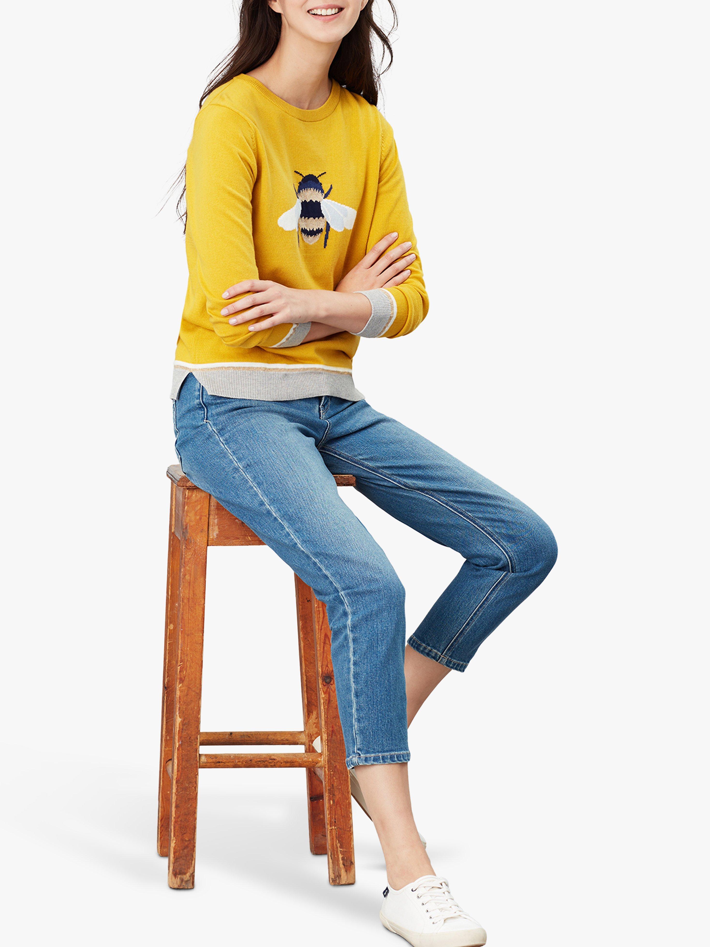 New designs on a favourite Joules Miranda jumper add a playful touch to your casual wardrobe. With a slimmer-fitting crew-neck, it is completed with a bright bee adorning the front alongside a contrasting hem and cuffs. Pair with your go-to denim for an everyday appropriate look.