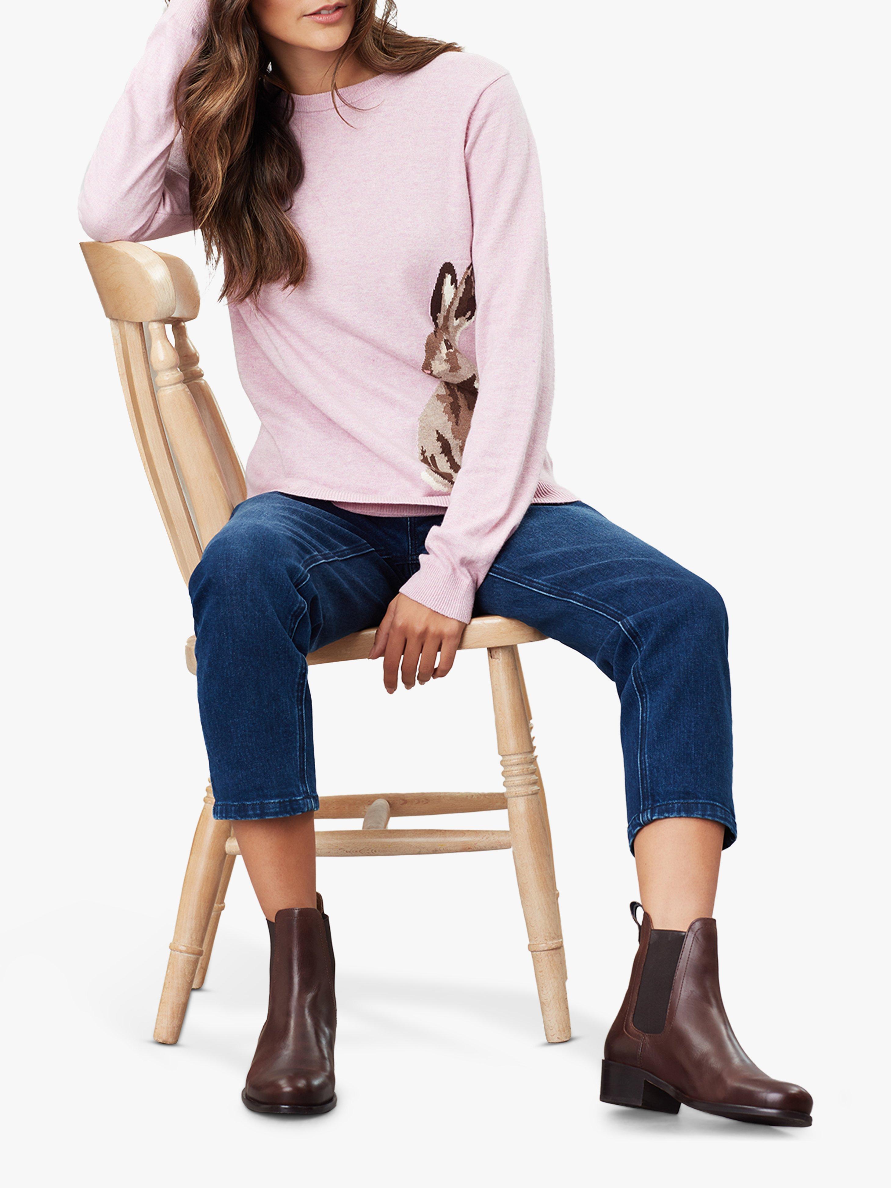 New designs on a favourite Joules Miranda jumper add a playful touch to your casual wardrobe. With a slimmer-fitting crew-neck, it is completed with a cute hare adorning the front. Pair with your favourite denim for an everyday appropriate look.