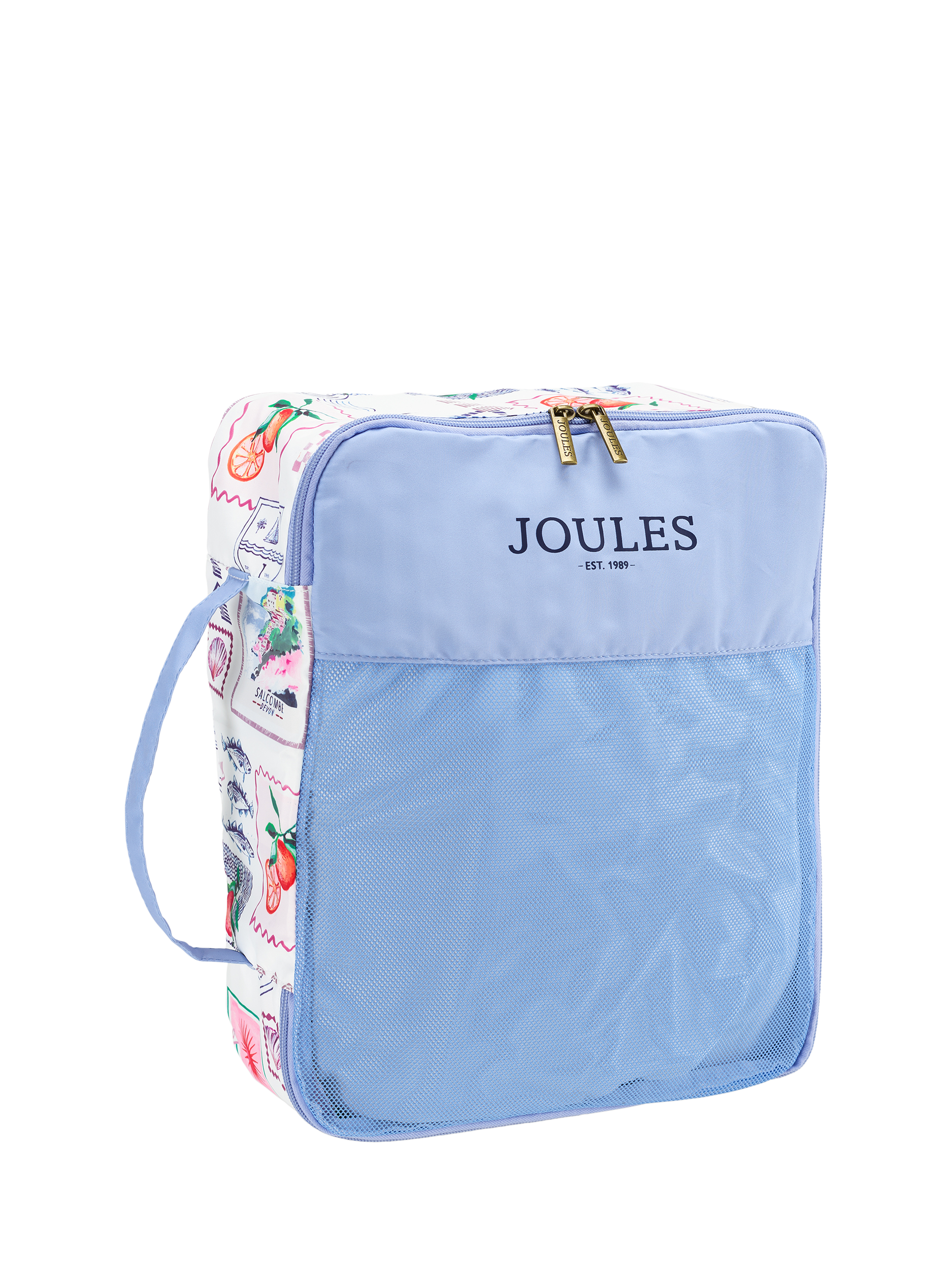 Stay organised and stylish on your next adventure with the Joules packing cube set in the Postcard print. This four-piece set of fabric storage bags has been designed to fit perfectly inside your luggage.