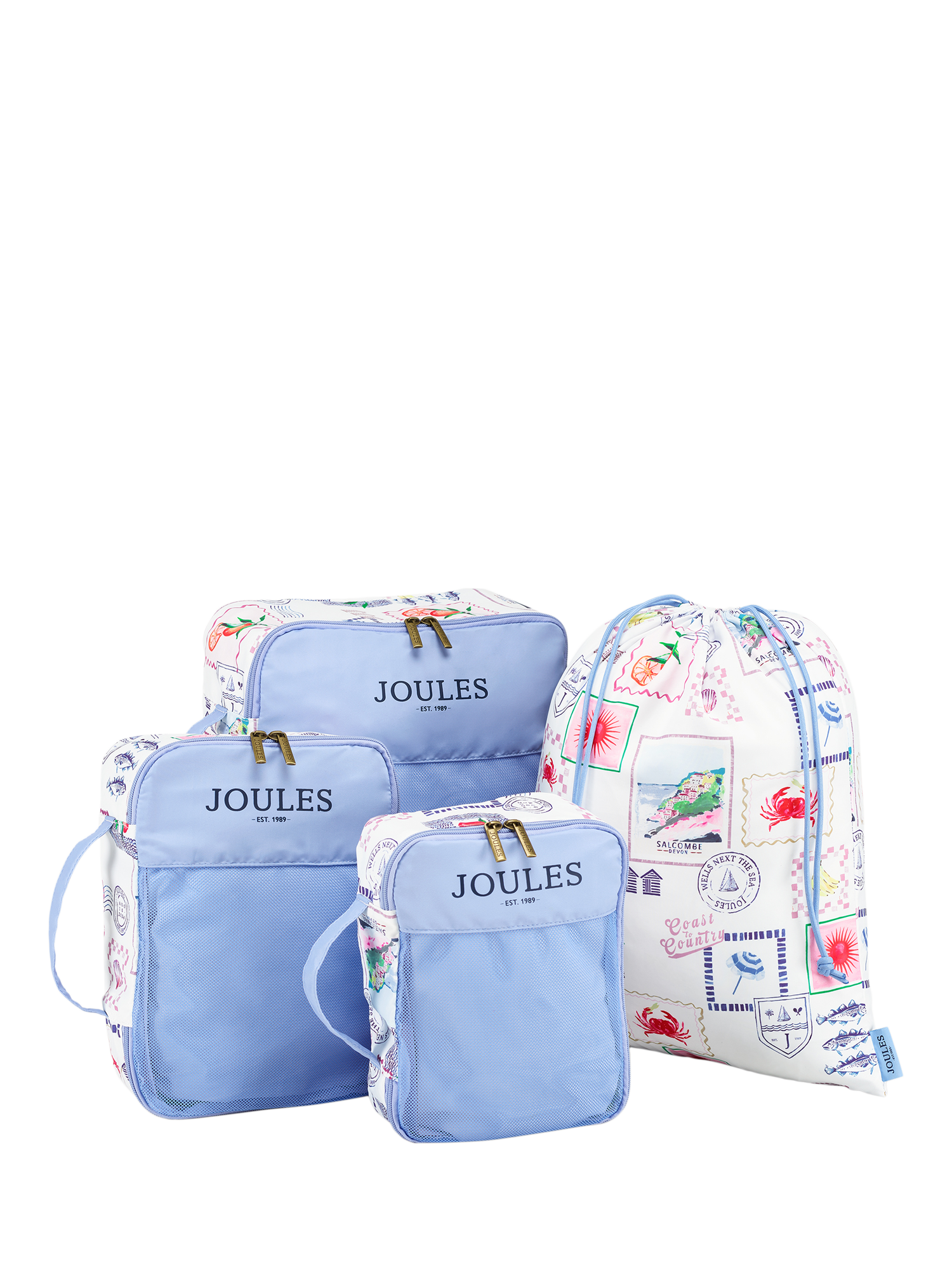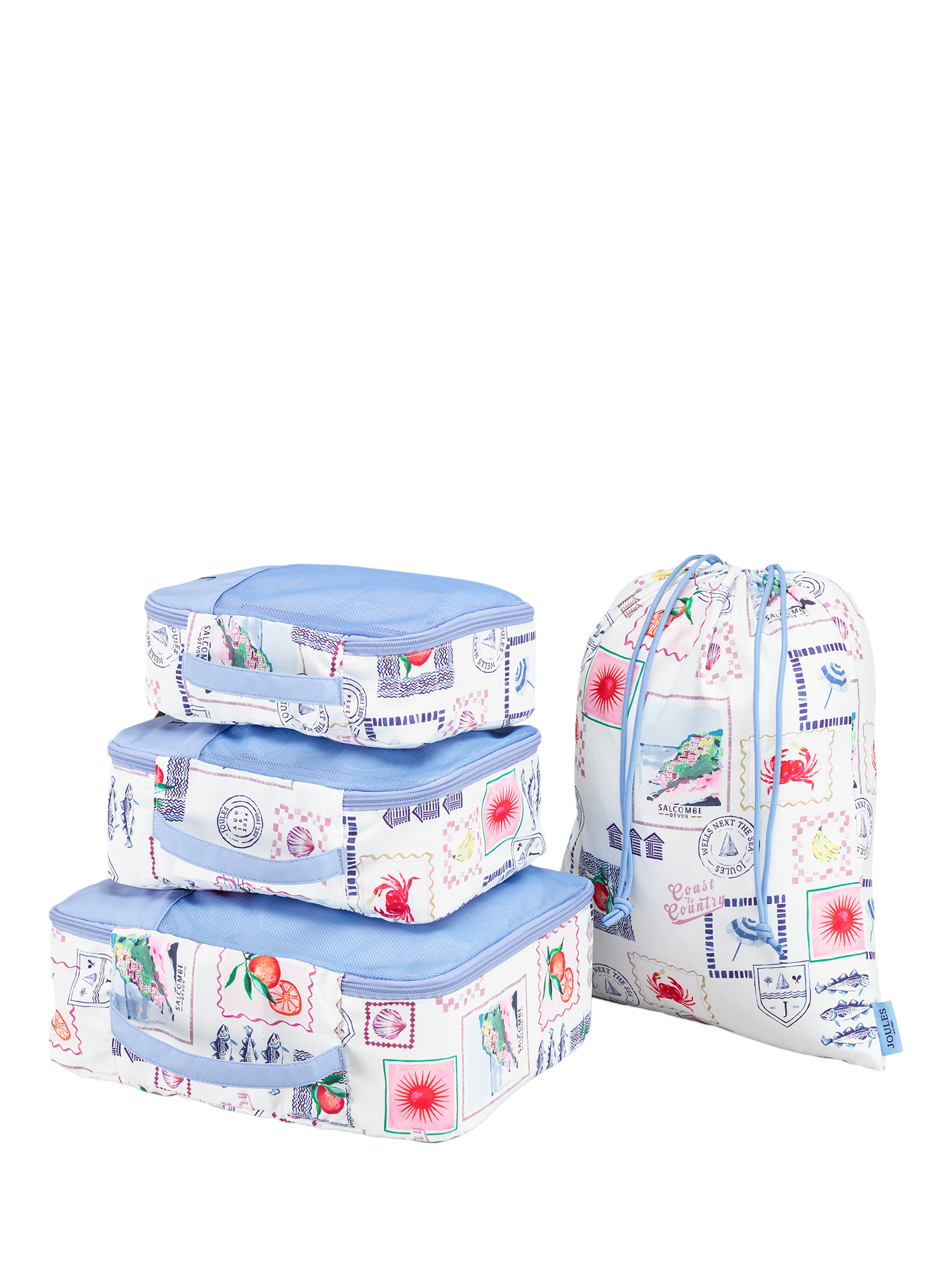JoulesPostcard Print Fabric Packing Cubes Set, 4 Piece