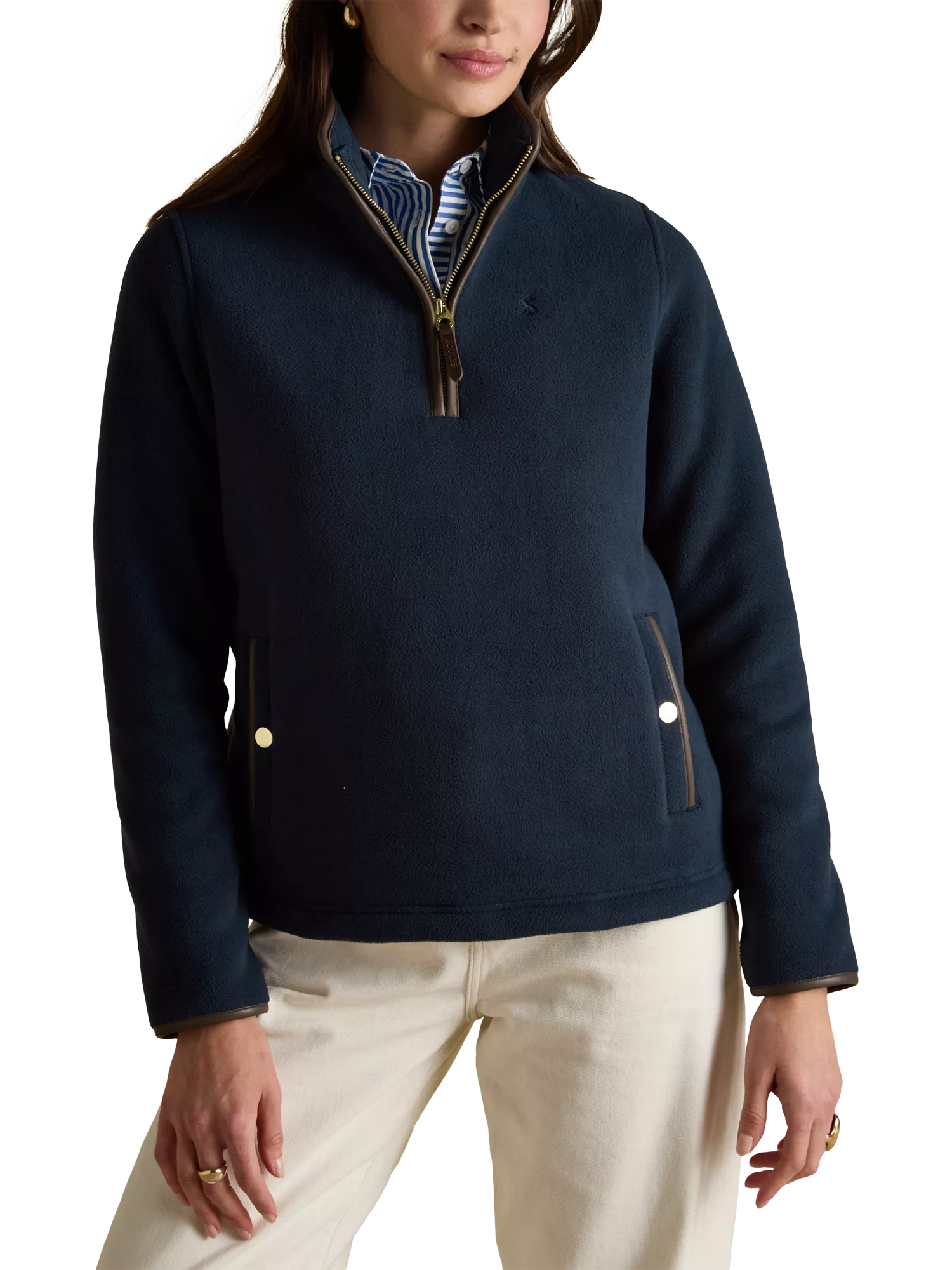 A quarter zip fleece with a contrasting cord collar and trims that elevate the look. Large front pockets are practical for small items and keeping your hands warm and cosy.