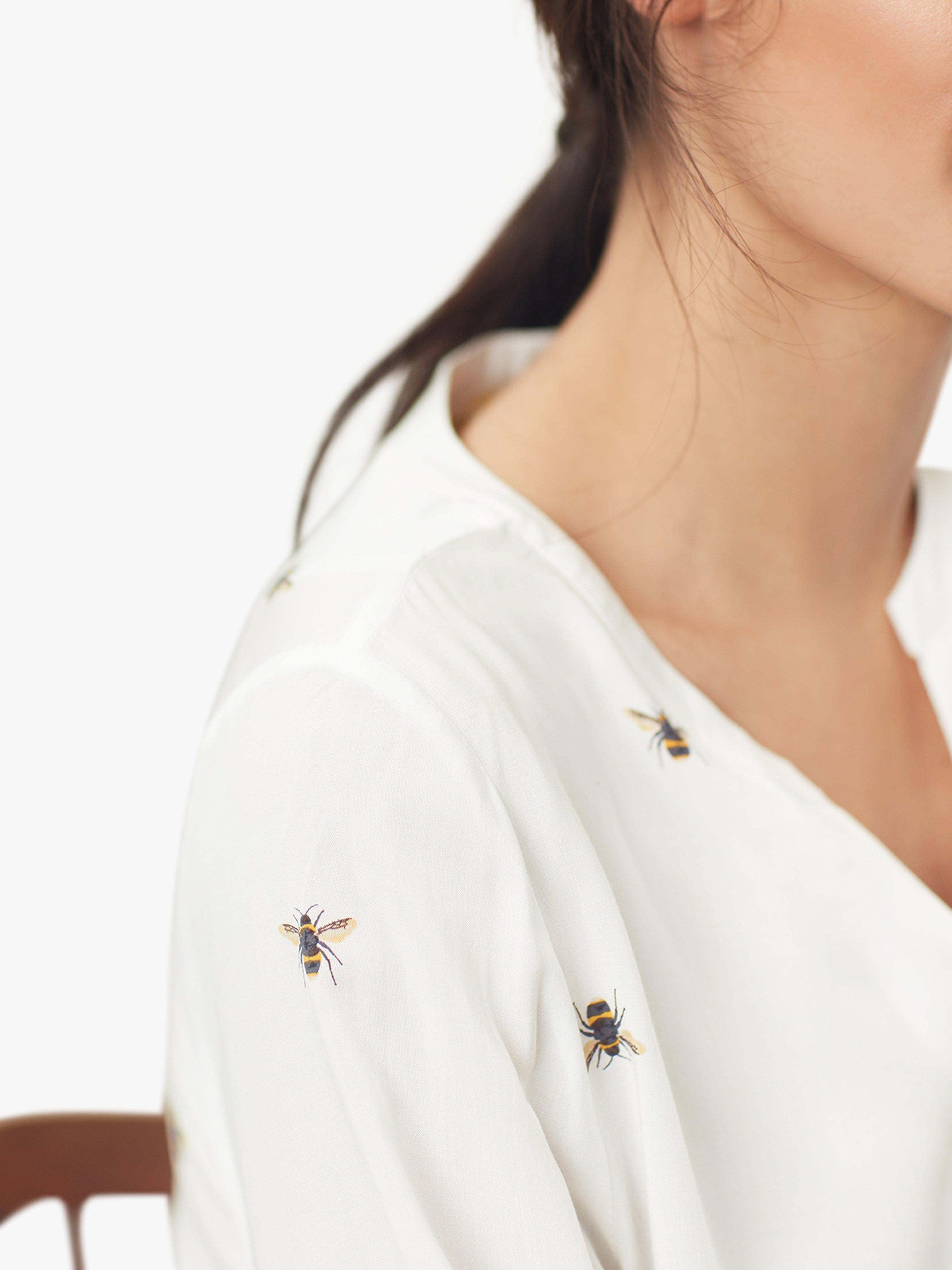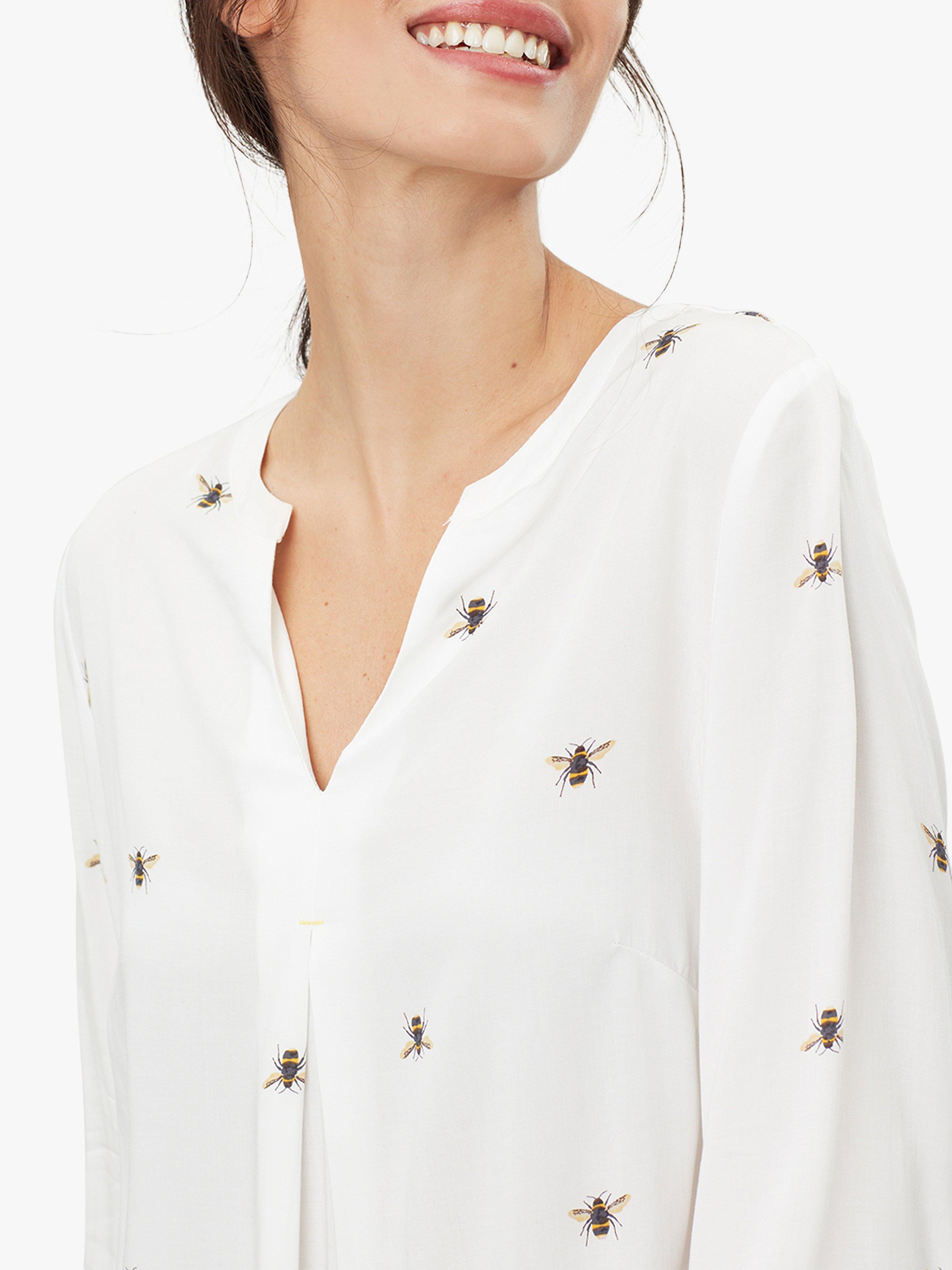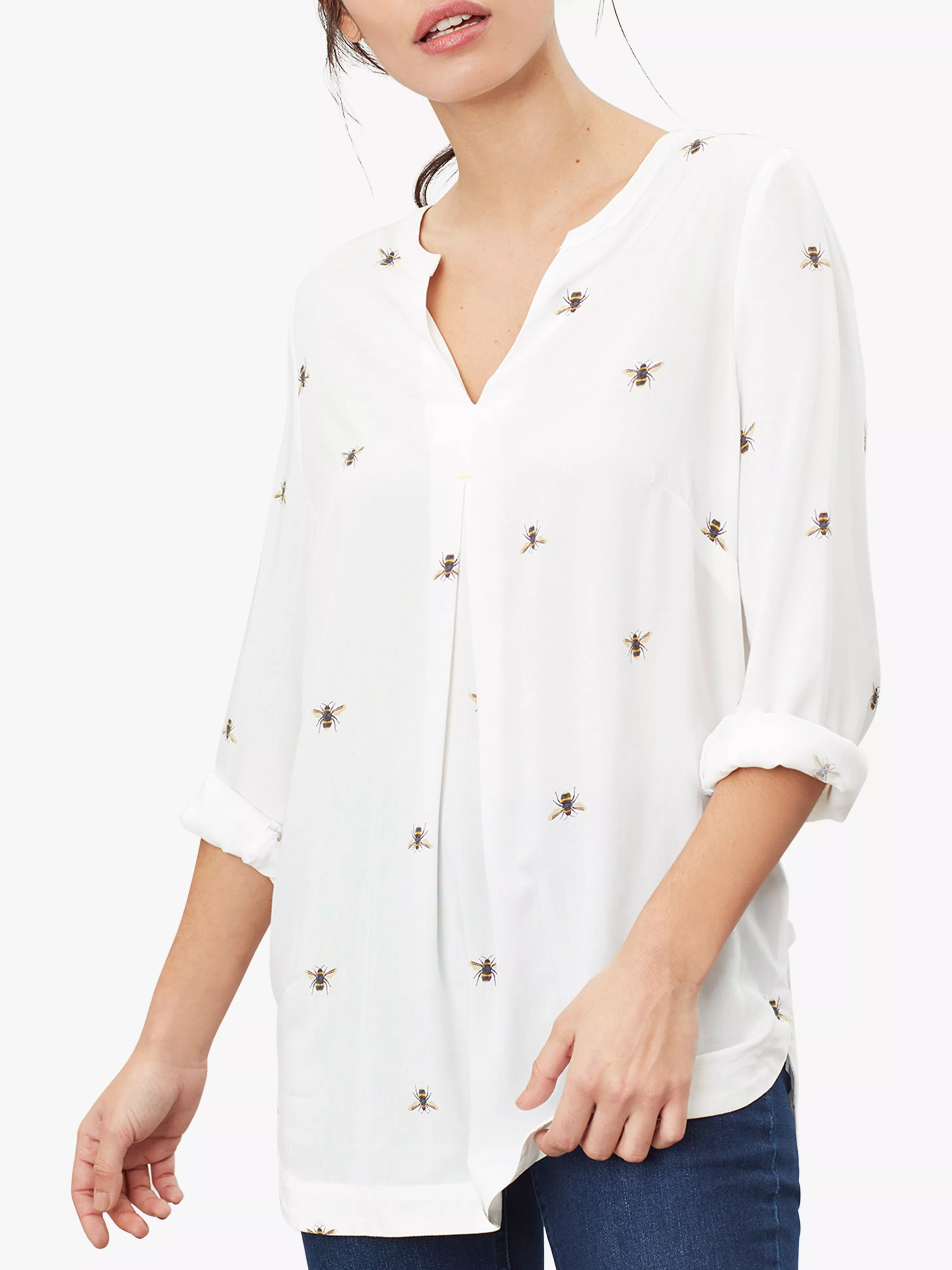 Soft, lightweight and versatile, the draping fabric of this easy-to-wear pop-over shirt will make sure comfortable, laidback style is never far away. Finished with a curved hem and crisp box pleats to the back, this bee blouse will have you all a buzz.