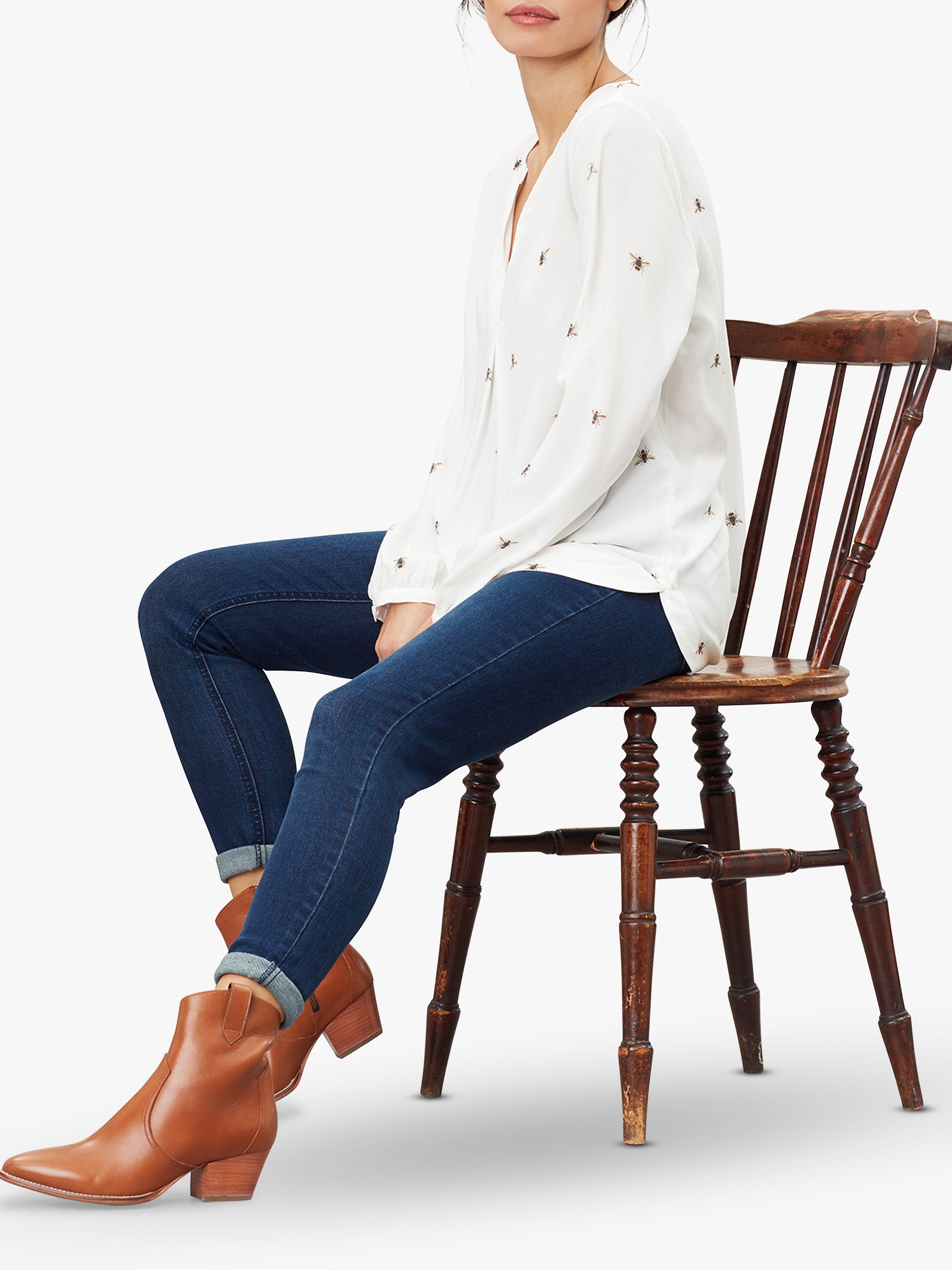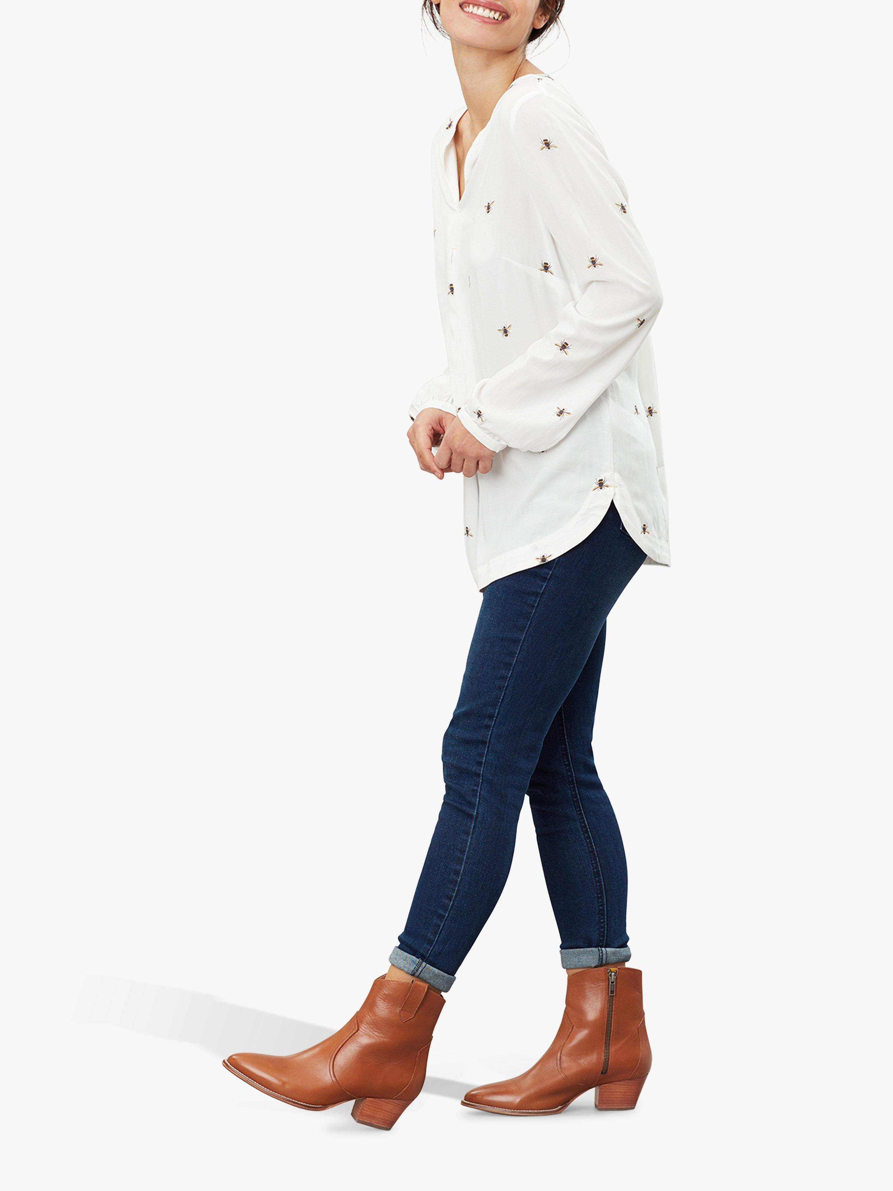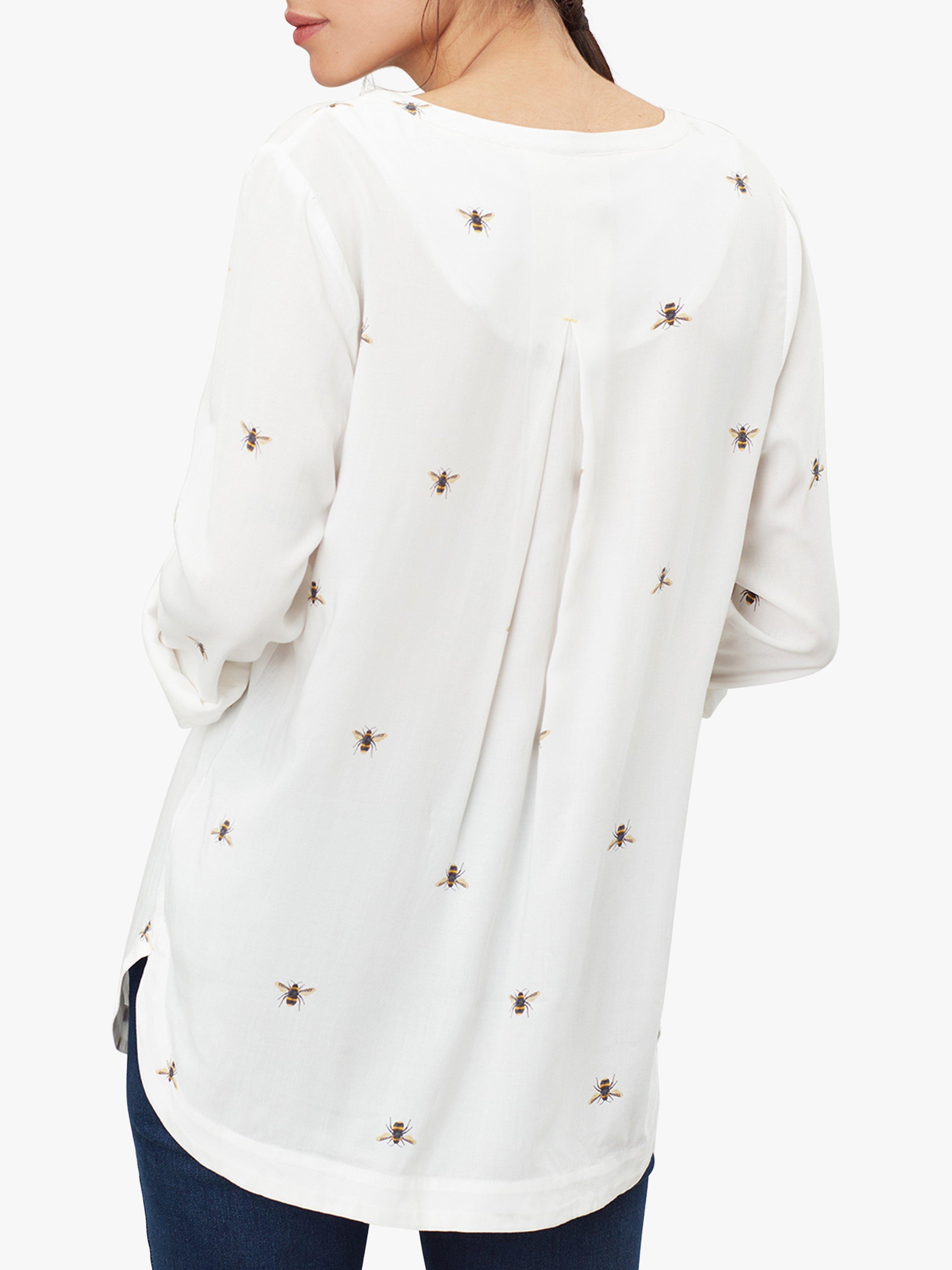 Soft, lightweight and versatile, the draping fabric of this easy-to-wear pop-over shirt will make sure comfortable, laidback style is never far away. Finished with a curved hem and crisp box pleats to the back, this bee blouse will have you all a buzz.